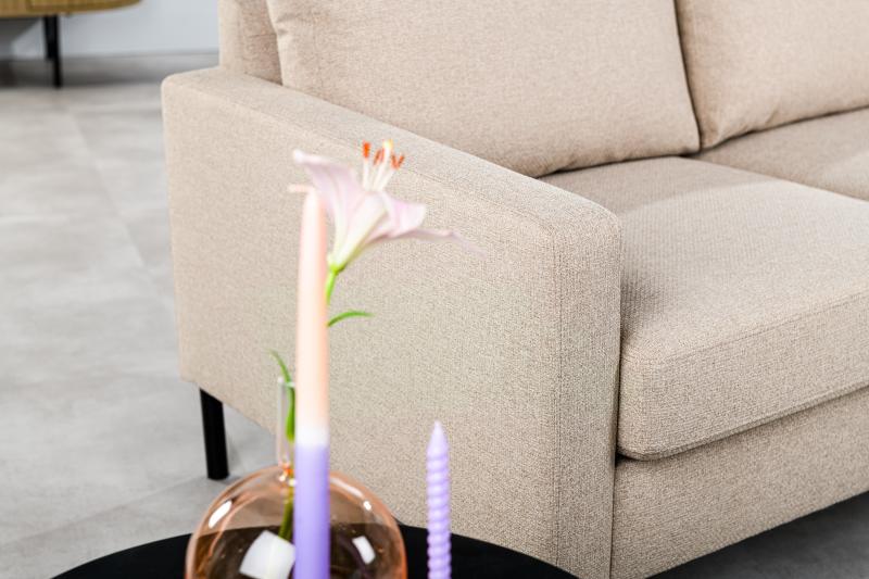 Met zijn elegante beige kleur past deze bank naadloos in elk interieur, terwijl de duurzame polyester stof niet alleen comfortabel aanvoelt, maar ook bestand is tegen intensief gebruik. De Martindale score van 45.000-55.000 garandeert dat deze bank jarenlang zijn schoonheid behoudt.
