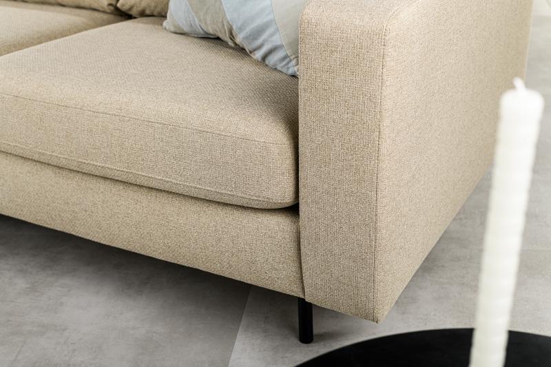 Met zijn moderne ontwerp en veelzijdige kleur past deze bank perfect in elke woonkamer. De zachte beige stof, gemaakt van 100% polyester, is niet alleen slijtvast en duurzaam, maar voelt ook heerlijk zacht aan. De rechte lijnen en strakke afwerking zorgen voor een eigentijdse uitstraling die jarenlang meegaat.