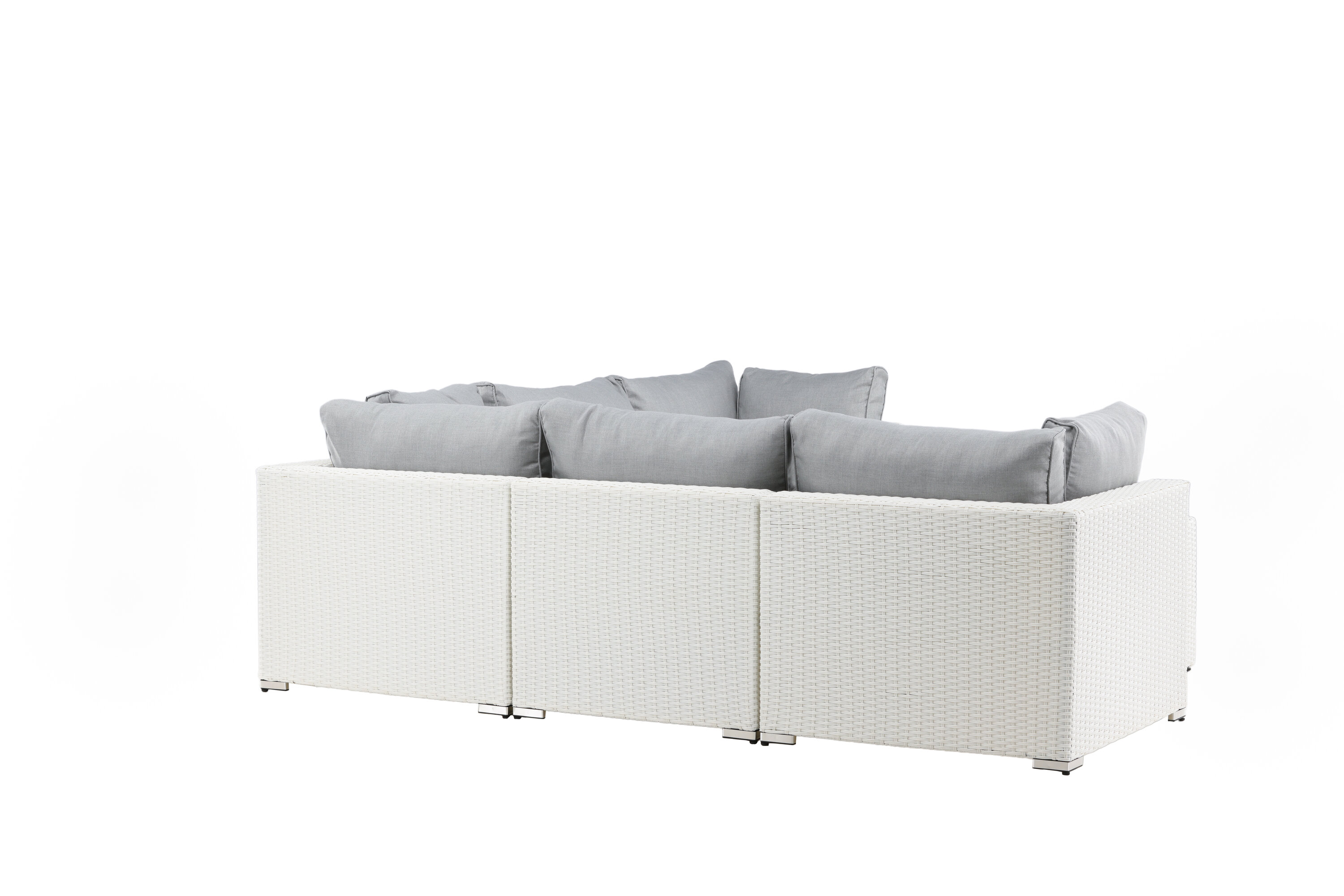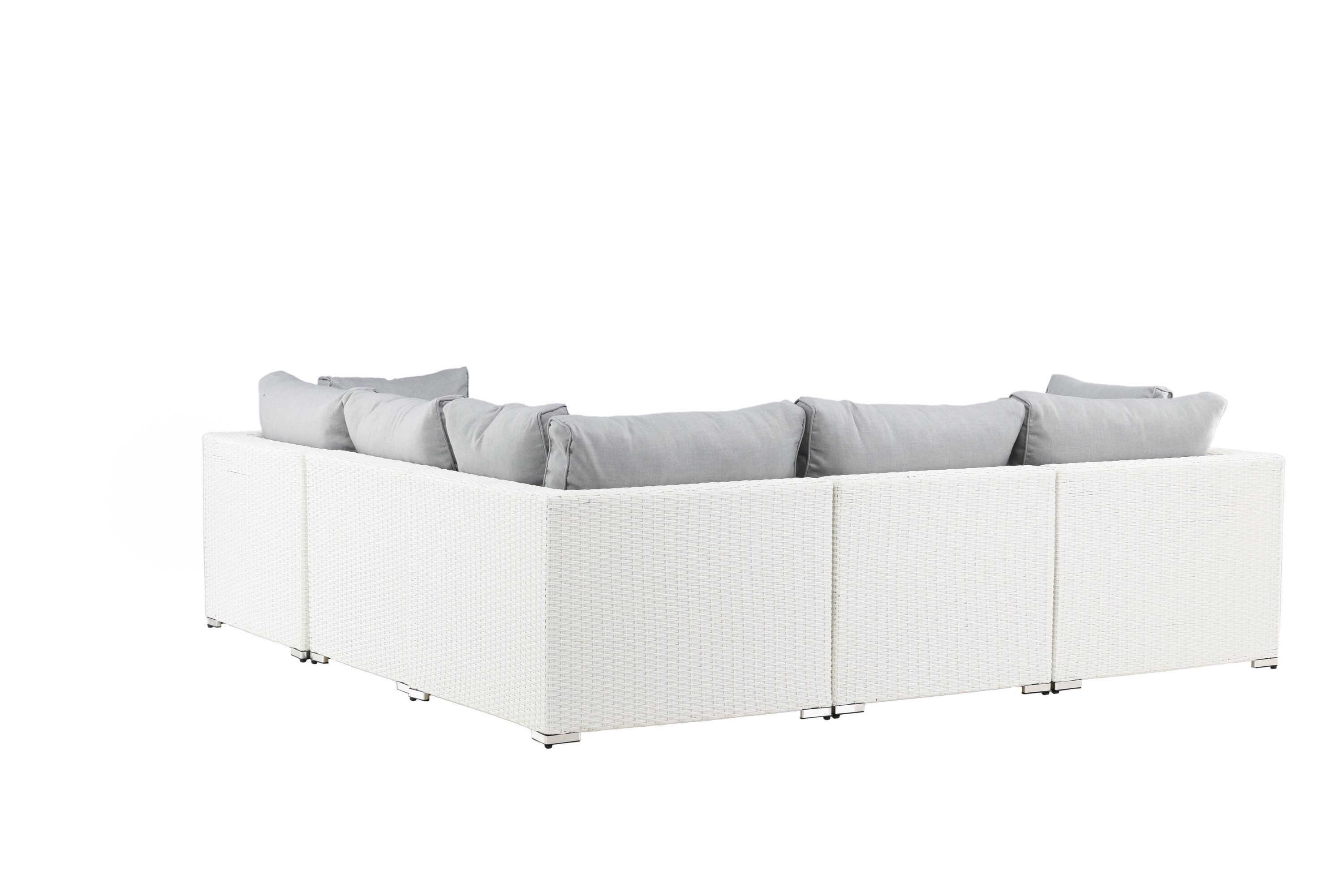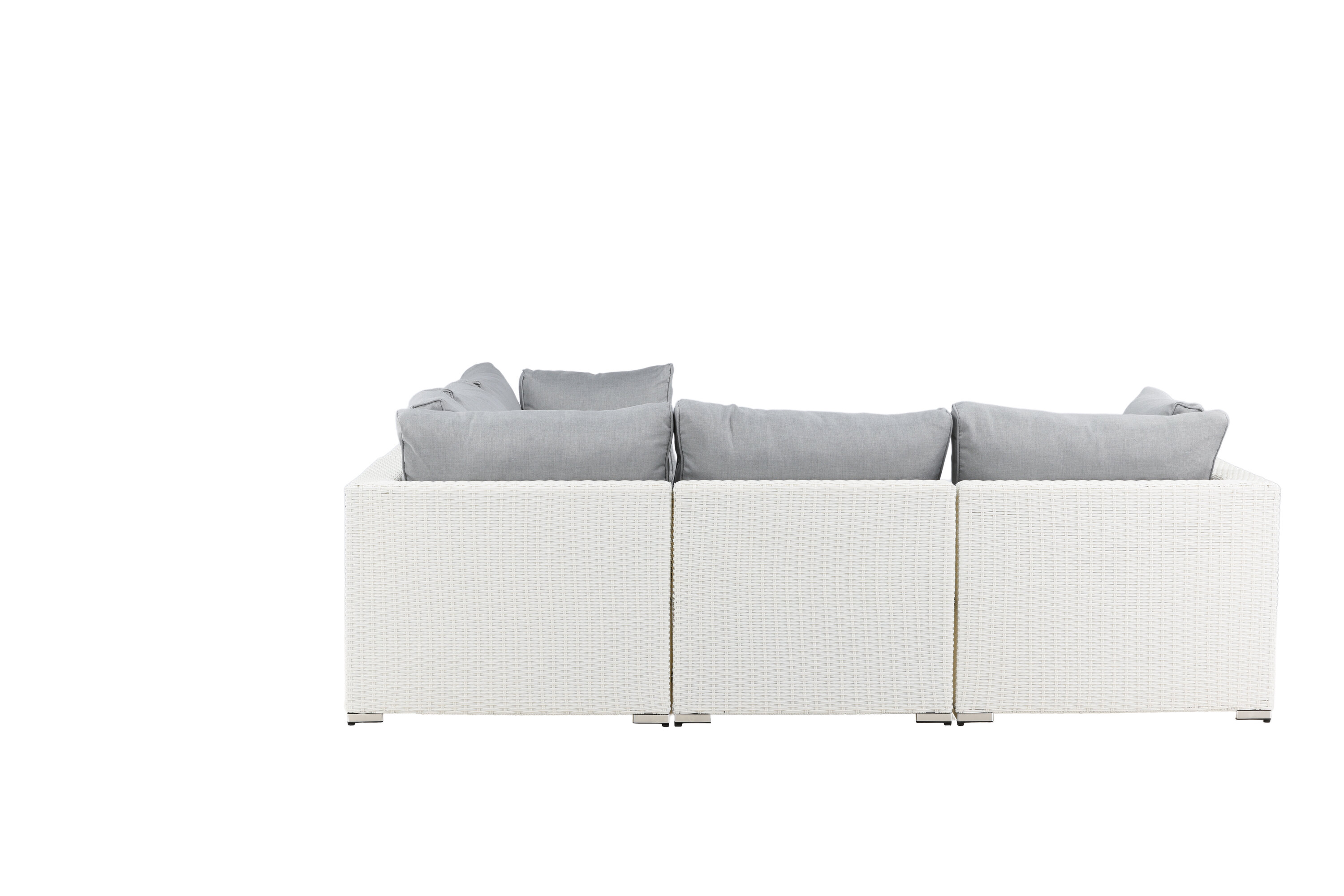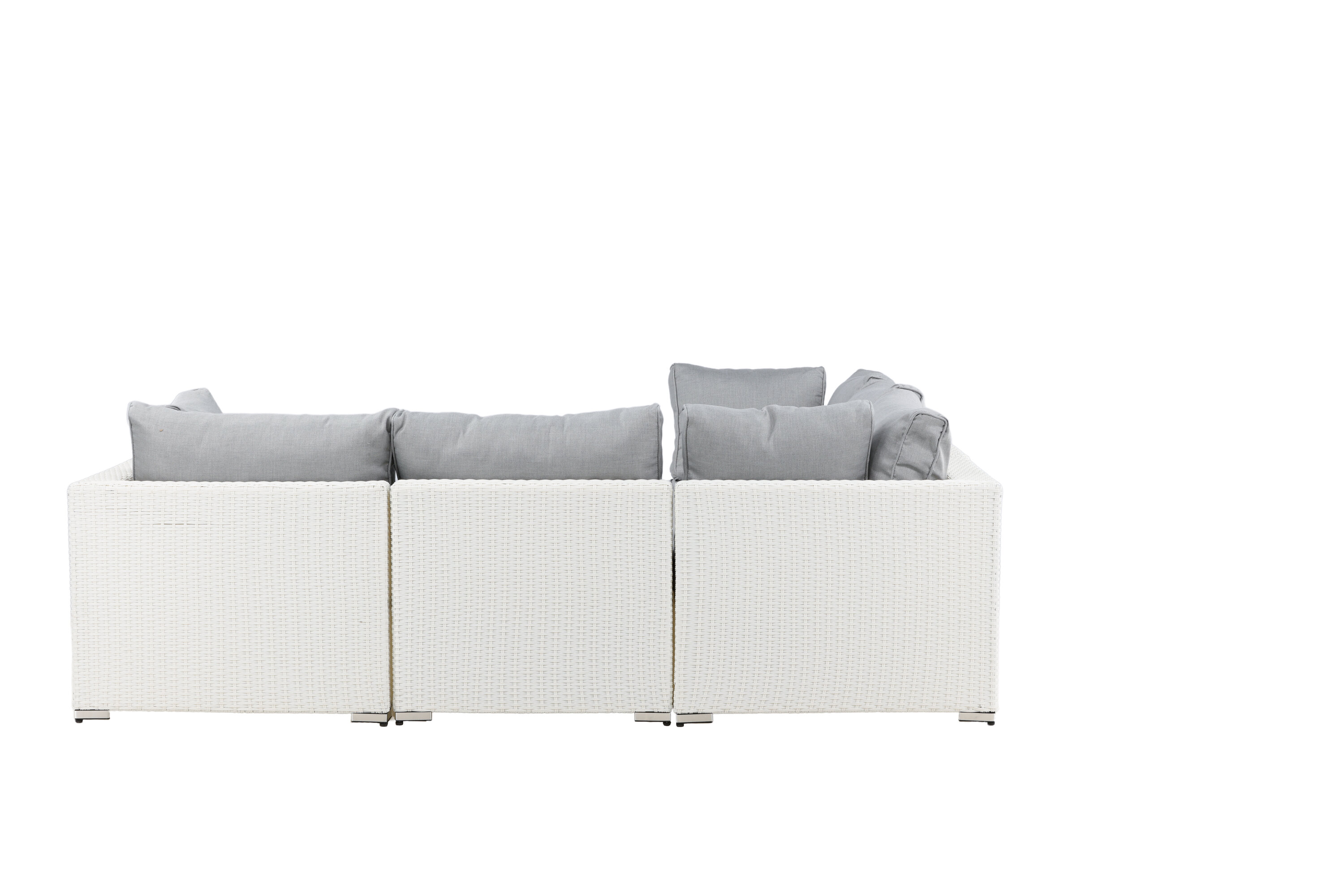Amazon Sofa Group impresses with its modern design that focuses on good comfort to your patio or terrace. The sofa group consists of a corner sofa in modular form with four seats and a corner part that is easy to build together to suit your needs. Soft dark gray soft cushions are included as well as a matching, lower coffee table with a glass table top. Made of a metal frame and white artificial rattan - two durable materials that are excellent for outdoor use! Get ready for an outstanding nightlife this summer. Care advice: Konstrite is a plastic material that is perfect for our Scandinavian climate. The material is UV-resistant and can withstand weather and wind. The fact that it is UV-resistant means that the furniture does not fade, however, we always recommend storing the furniture under a furniture protection or otherwise dry and cool-to extend the service life.