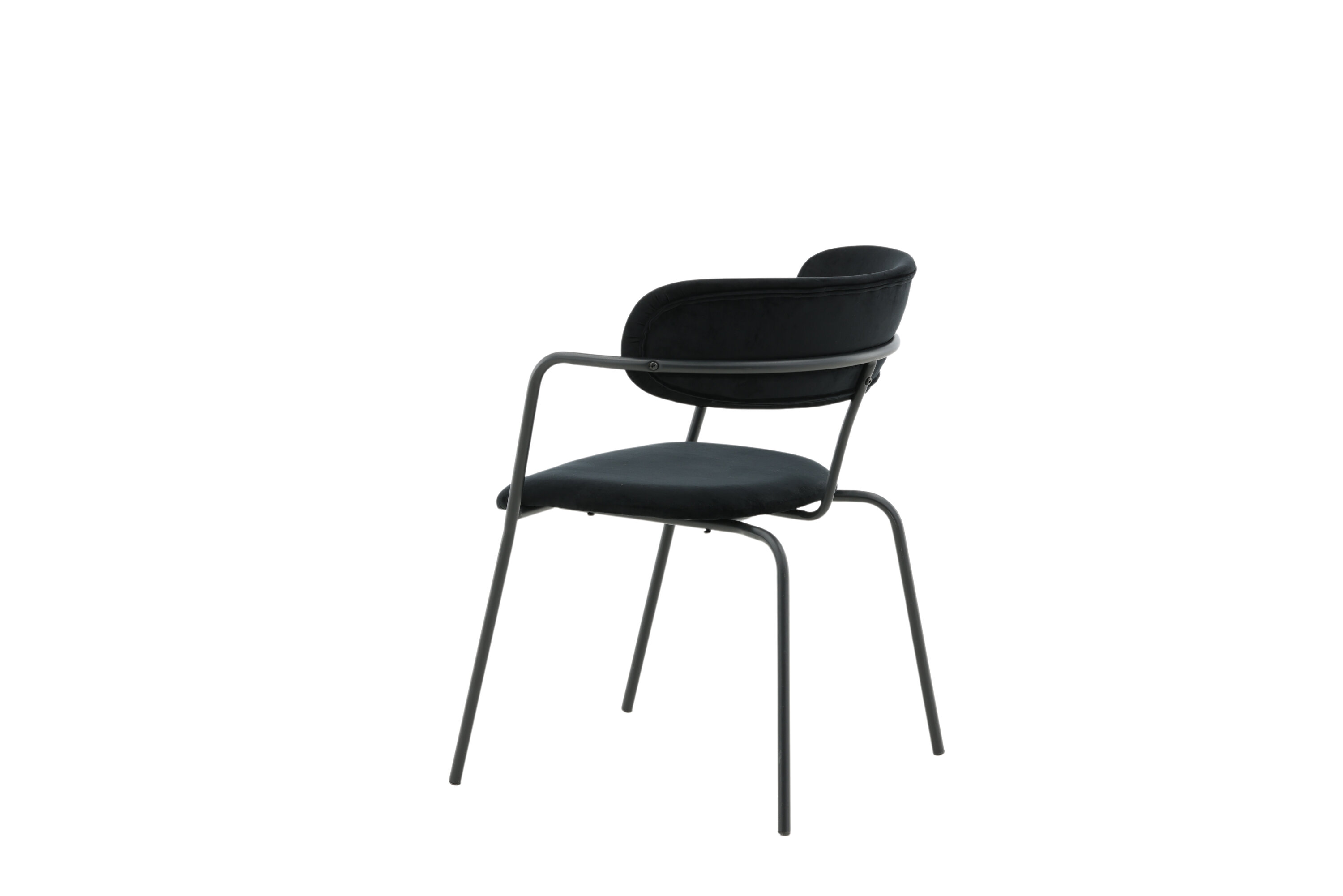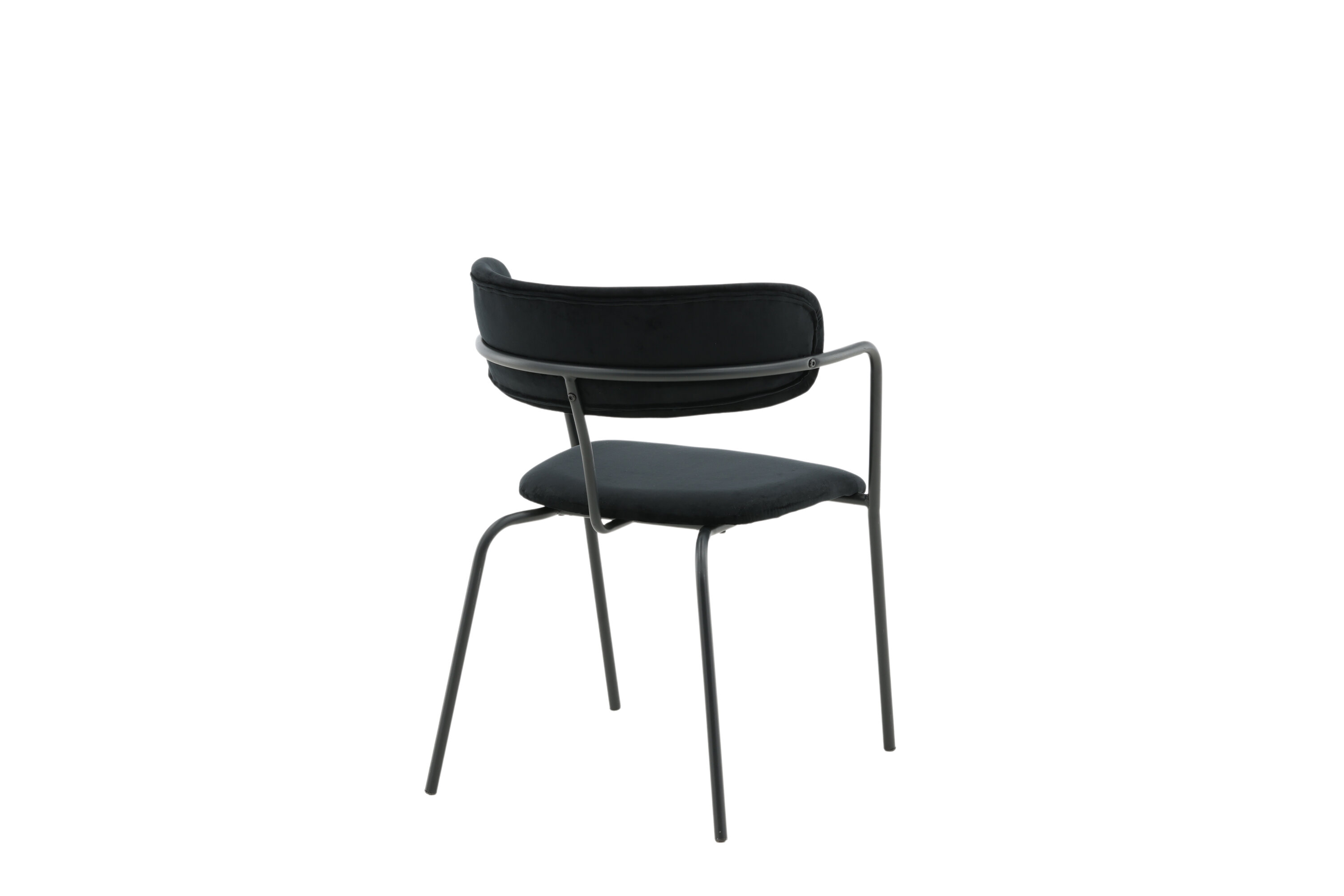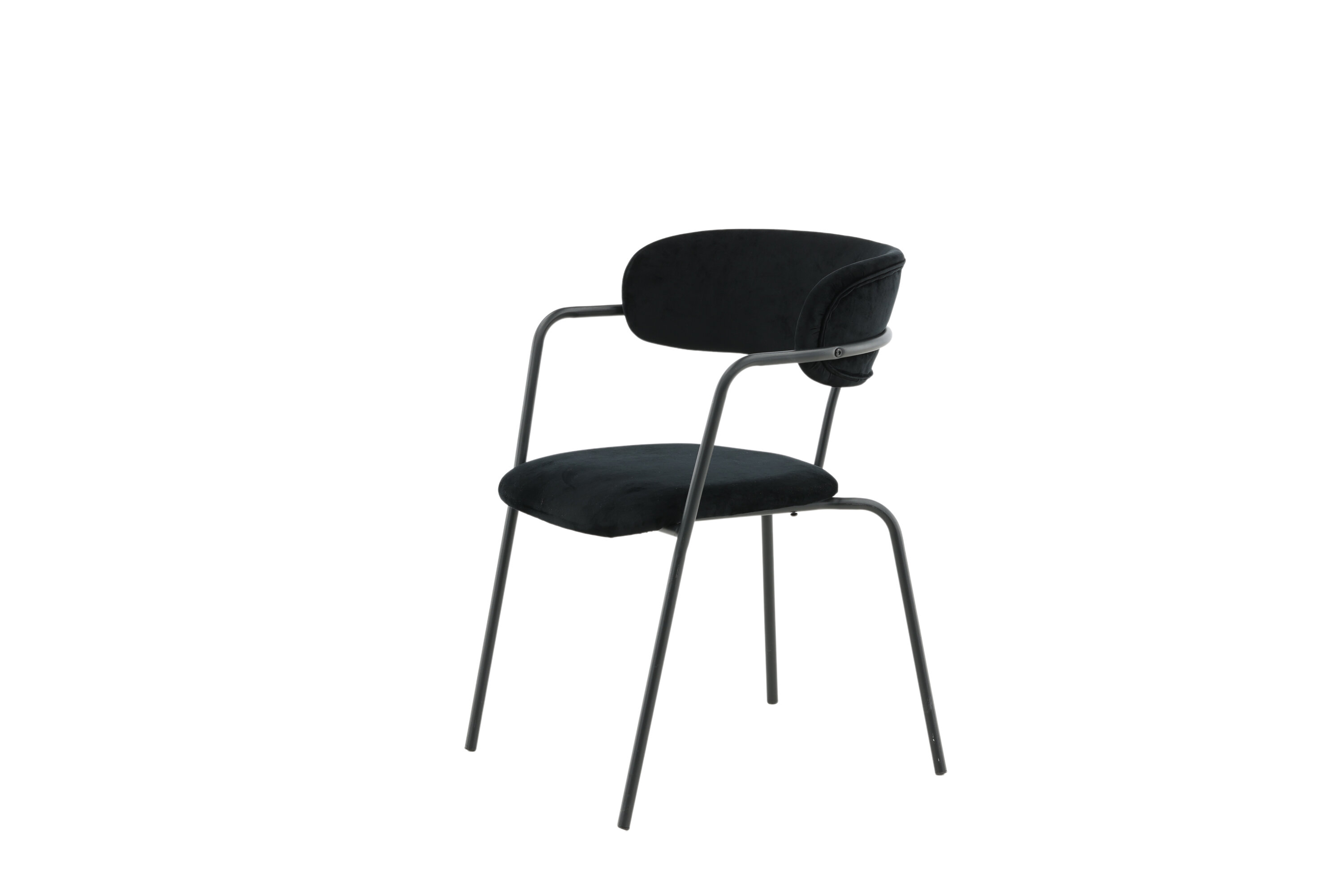 Stylish, practical and timeless - a dining chair with everyone right simply! Arrow has a minimalist design with frame, legs and integrated armrests in black powder coated metal. The back is lightly rounded in the same material as the seat, stopped black velvet fabric. As comfortable as stylish, these chairs will surely make a success in the heart of the home! Lighter assembly is required. Care advice: Use textile spray to impregnate the textile before you start using it, it will also make any dirt and stains easier to remove in the future. Remove stains right away, do not rub but tried to suck up gently with a cloth.