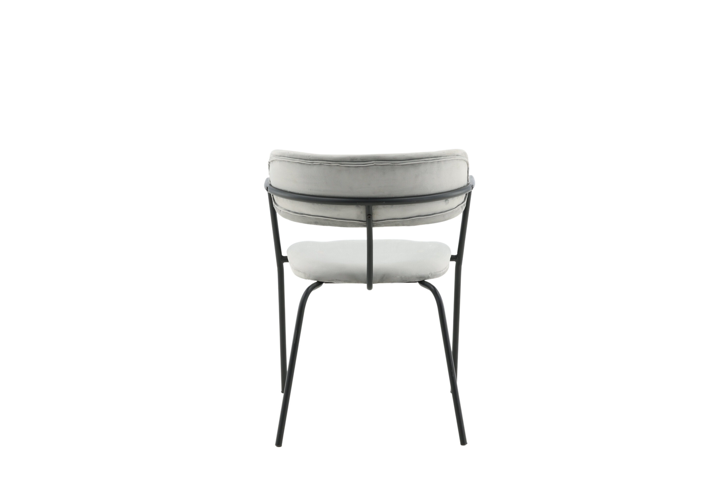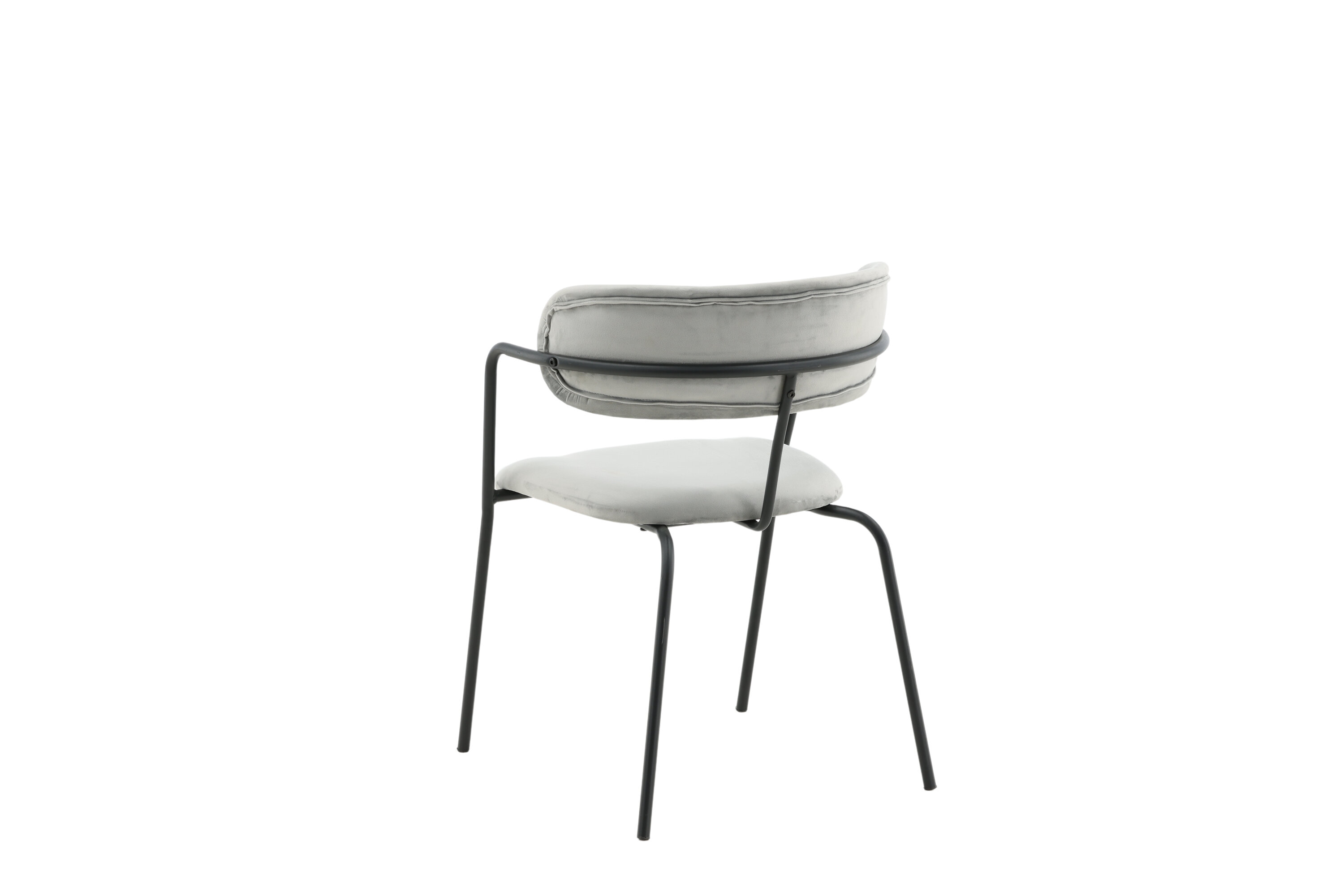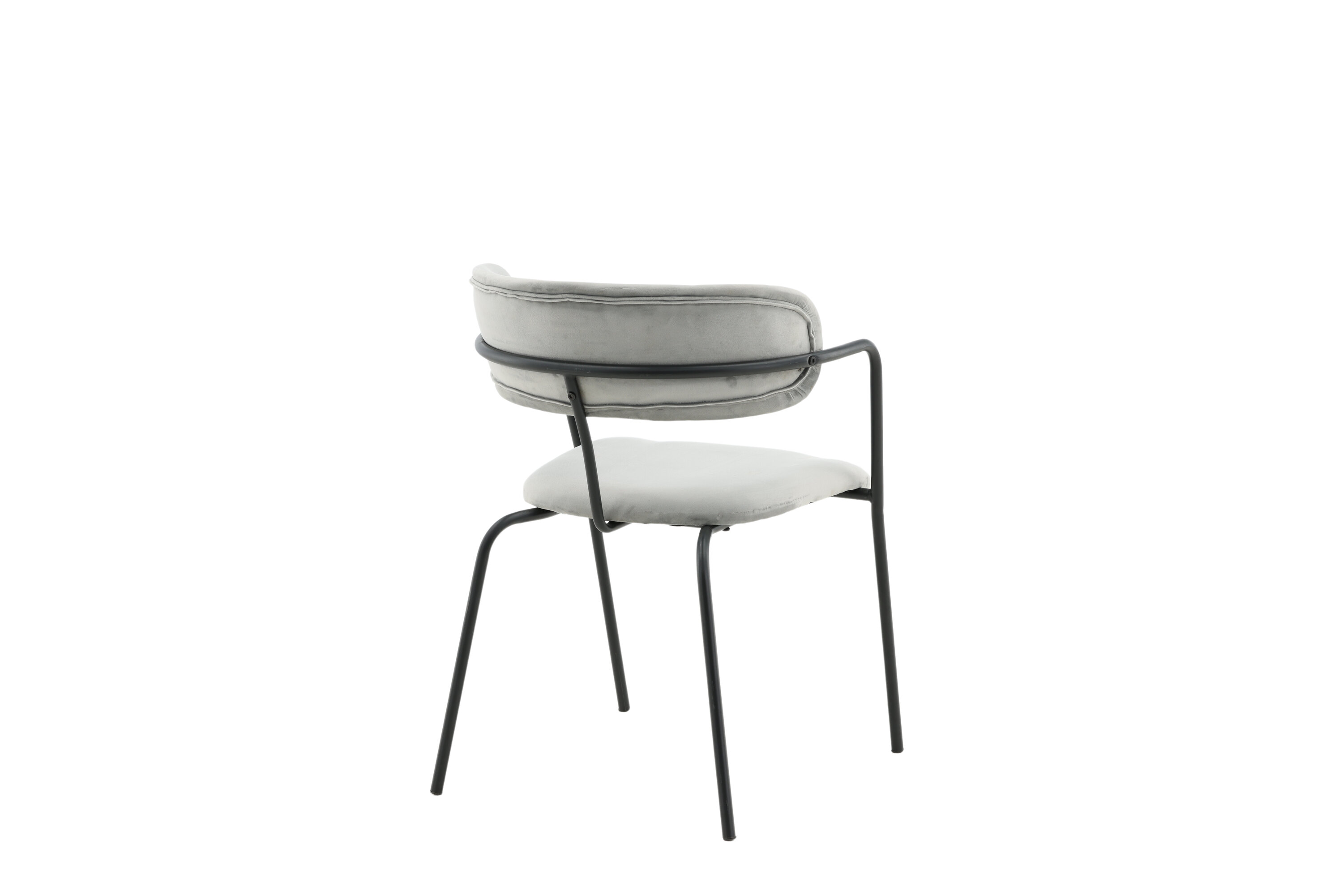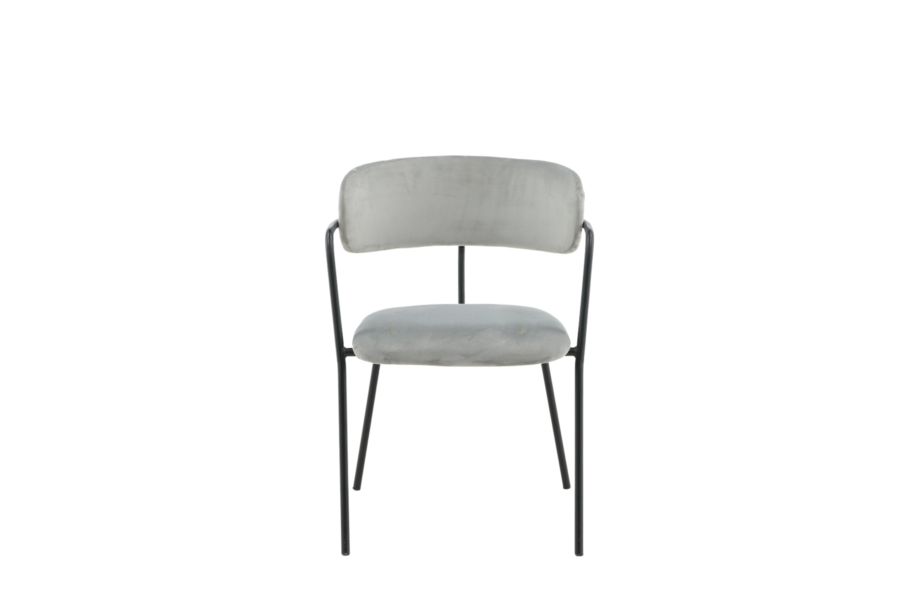As comfortable as it is eye-catching! This stylish dining chair from the Arrow series features a modern frame with legs and integrated armrests in black powder-coated metal. The backrest is gently rounded in the same material as the seat, in padded gray velvet fabric. Create a pleasant focal point in the heart of your home! Some assembly required. Care instructions: Use fabric spray to impregnate the fabric before using it, which will also make it easier to remove any dirt and stains in the future. Remove stains immediately, do not rub, but try to gently soak up with a cloth.