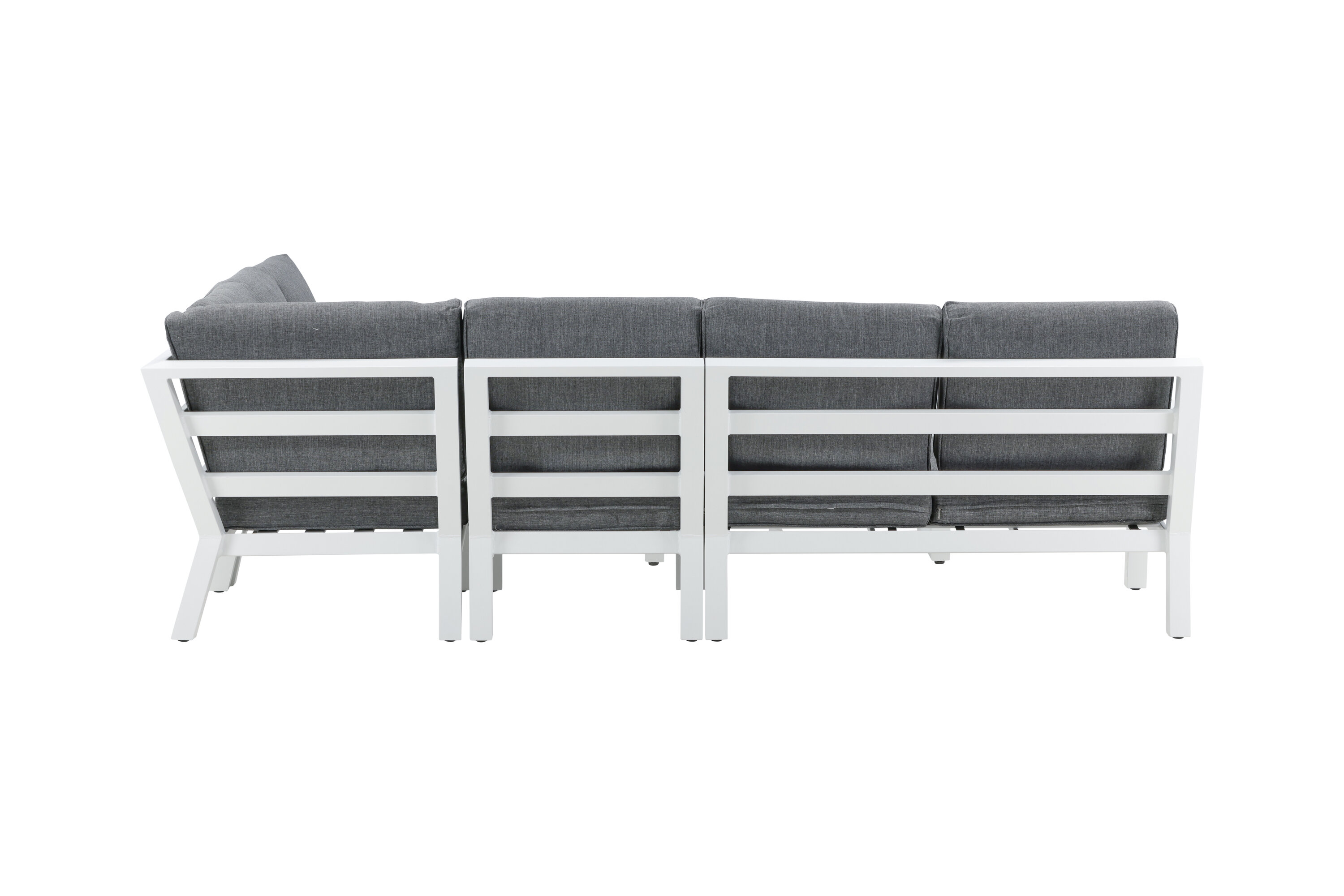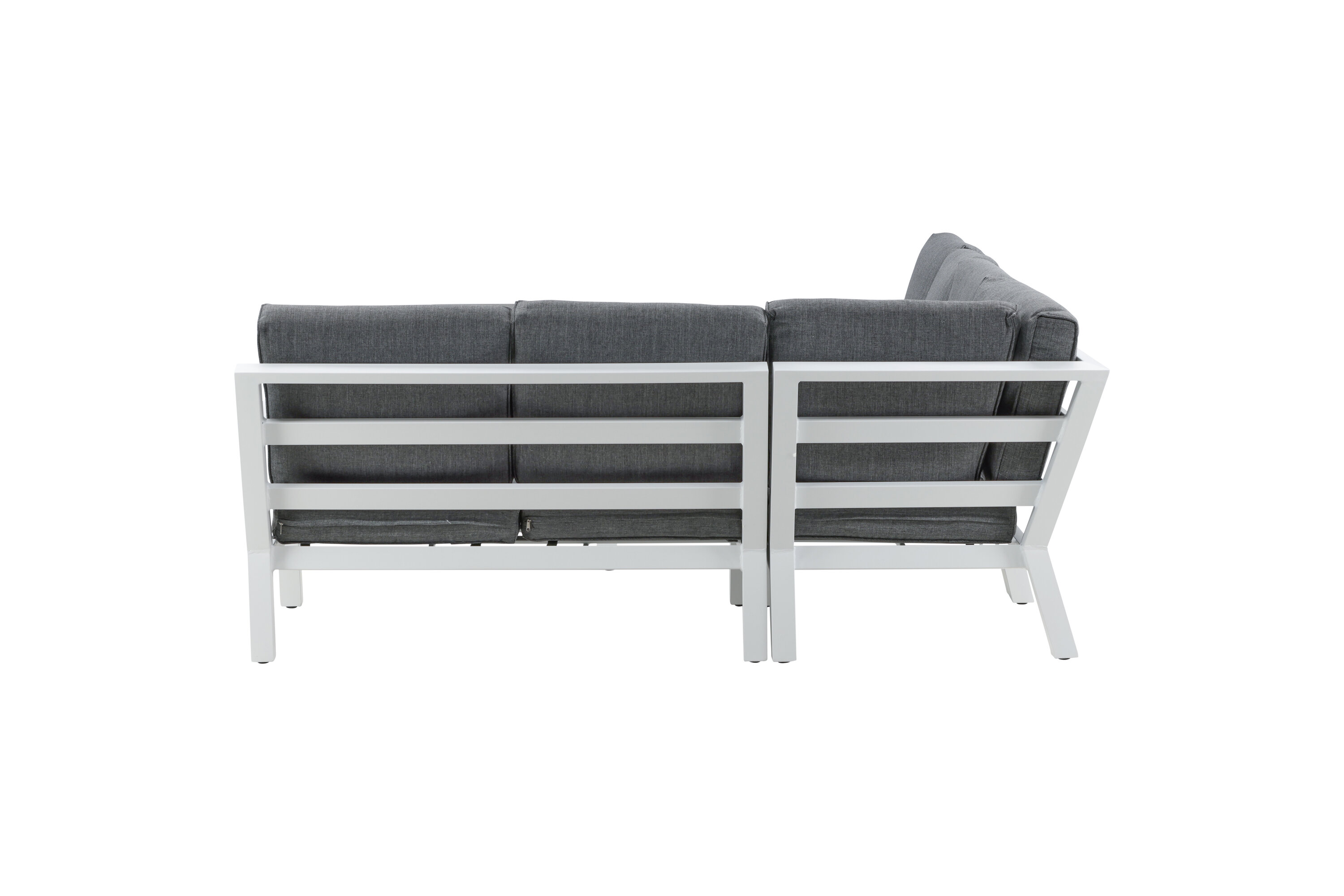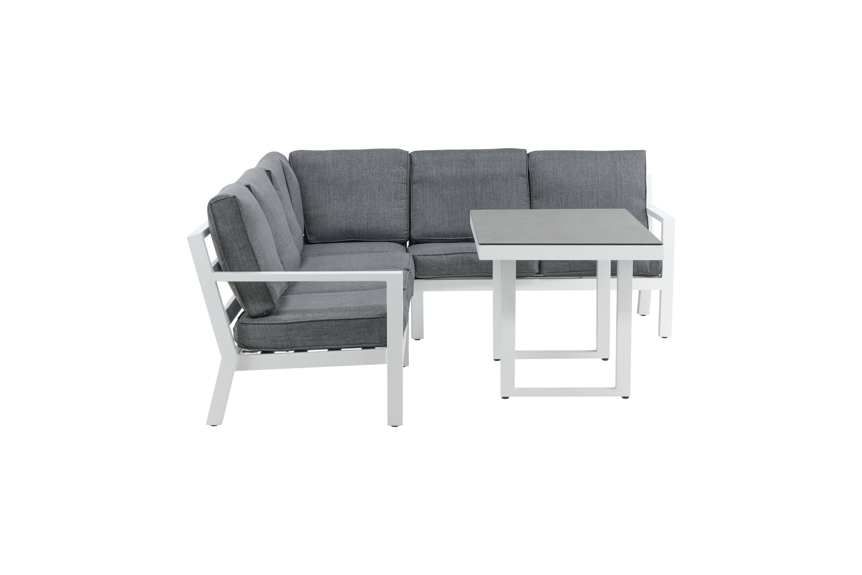 Create a charming centerpiece to gather family and friends around the patio this summer! Barcelona sofa group is a nice and stylish group in white aluminum with associated tables that match with a glass top plate. Durable cushions in black color are included. Table Dimensions: 140x75x68.5 cm. Sofa Dimensions: 267x254 cm. SITTING: 254x55x31 cm. No assembly required. Dispose afternoon coffee and enjoy - here you sit comfortably and relax for hours! Care advice: Outdoor furniture in aluminum and stainless steel should be cleaned regularly with water and mild soap. Always rinse thoroughly with plenty of water, which becomes extra important if the furniture is placed at a sea -close distance where salt can be transported through the air. The salt can lead to corrosion that can cause flaking or bubbles in the varnish.
