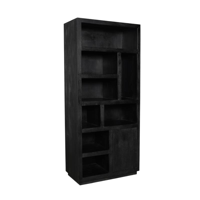 Ontdek Boekenkast Brussel Black, gemaakt van mangohout en afgewerkt met een prachtige black finish. De boekenkast heeft een strak en modern design, waarbij functionaliteit en stijl samenkomen. Met vijf open vakken en twee greeploze deuren, voorzien van een push-to-open systeem, biedt deze kast niet alleen voldoende ruimte voor het tonen van boeken en decoratieve items, maar ook voor het handig opbergen van diverse items.