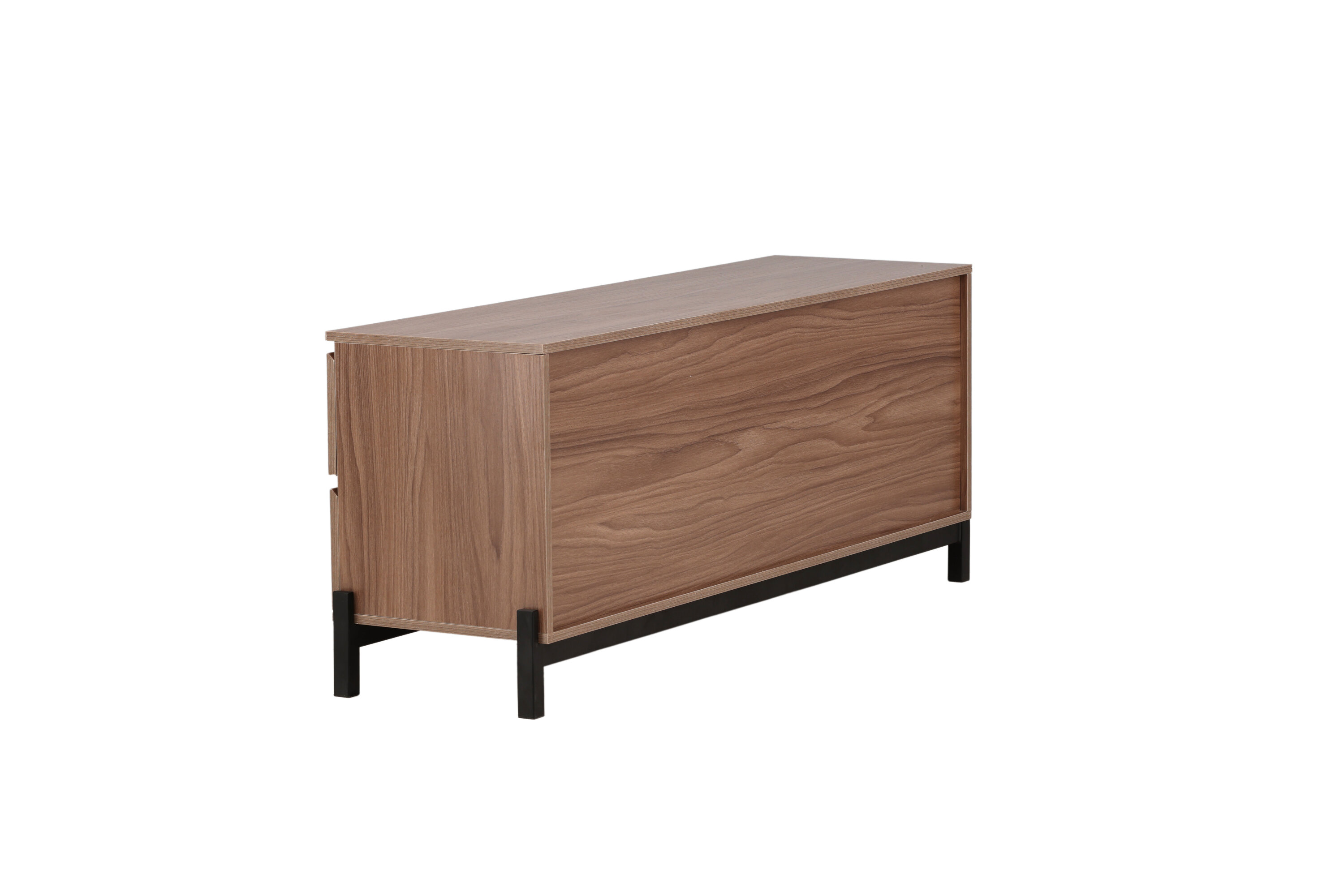 The relief table from the Corpus series is as practical as stylish! The robust design gives a steady impression and the walnut colored color creates a pleasant heat in the home. Made of walnut colored MDF and is lifted by four black legs in decorative design. This office has two left -wing cabinets and two right -adjusted drawers that enable generously with room for hidden storage. Use as a side table or TV bench - here you can fit with a lot!