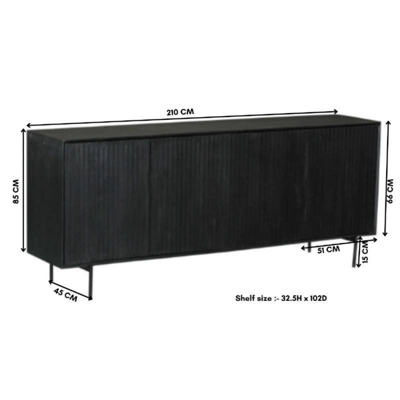 Dressoir 'Madison' is gemaakt van mangohout. Het metalen frame is afgewerkt met een zwarte lak. Dit model is voorzien van vier deuren. De deuren zijn voorzien van een verticaal lattenpatroon en is afgewerkt met een zwarte lak.