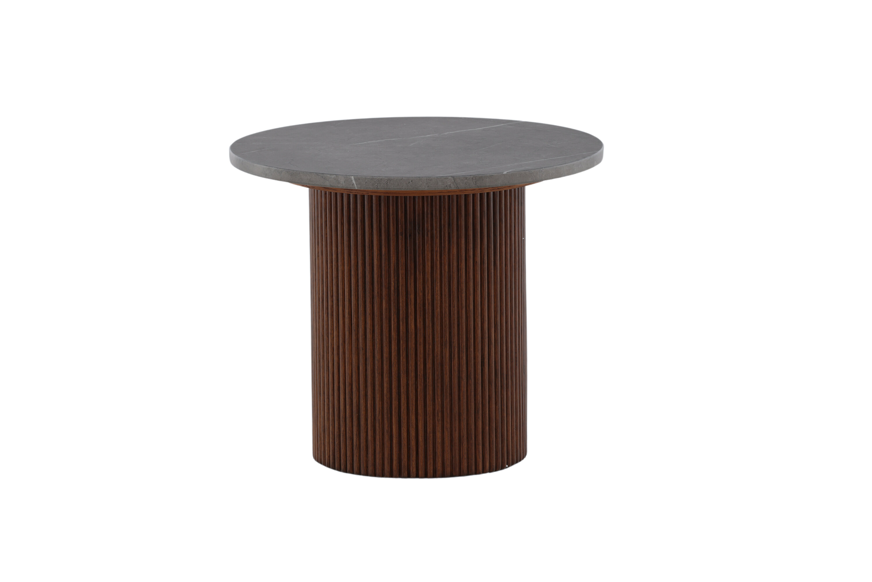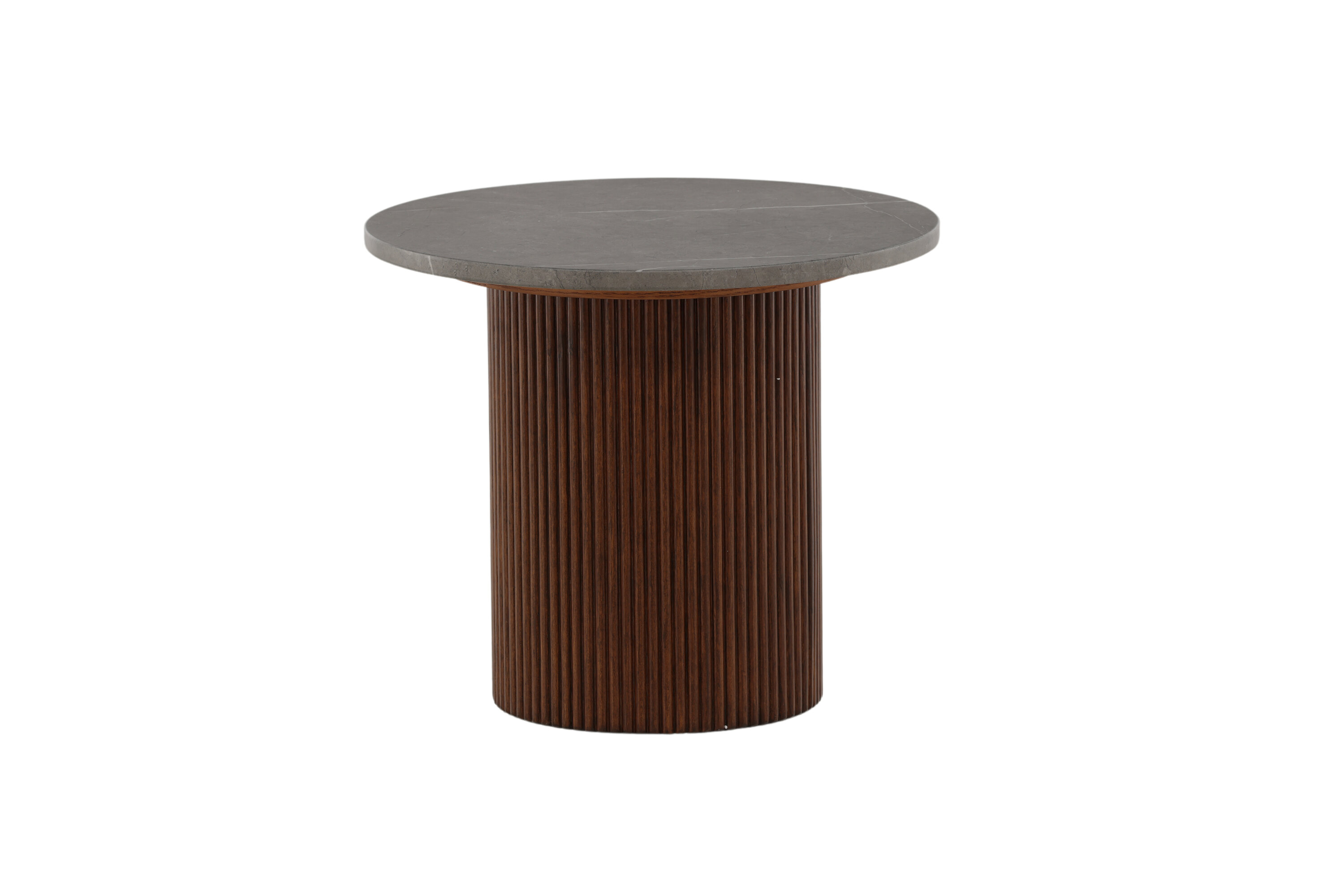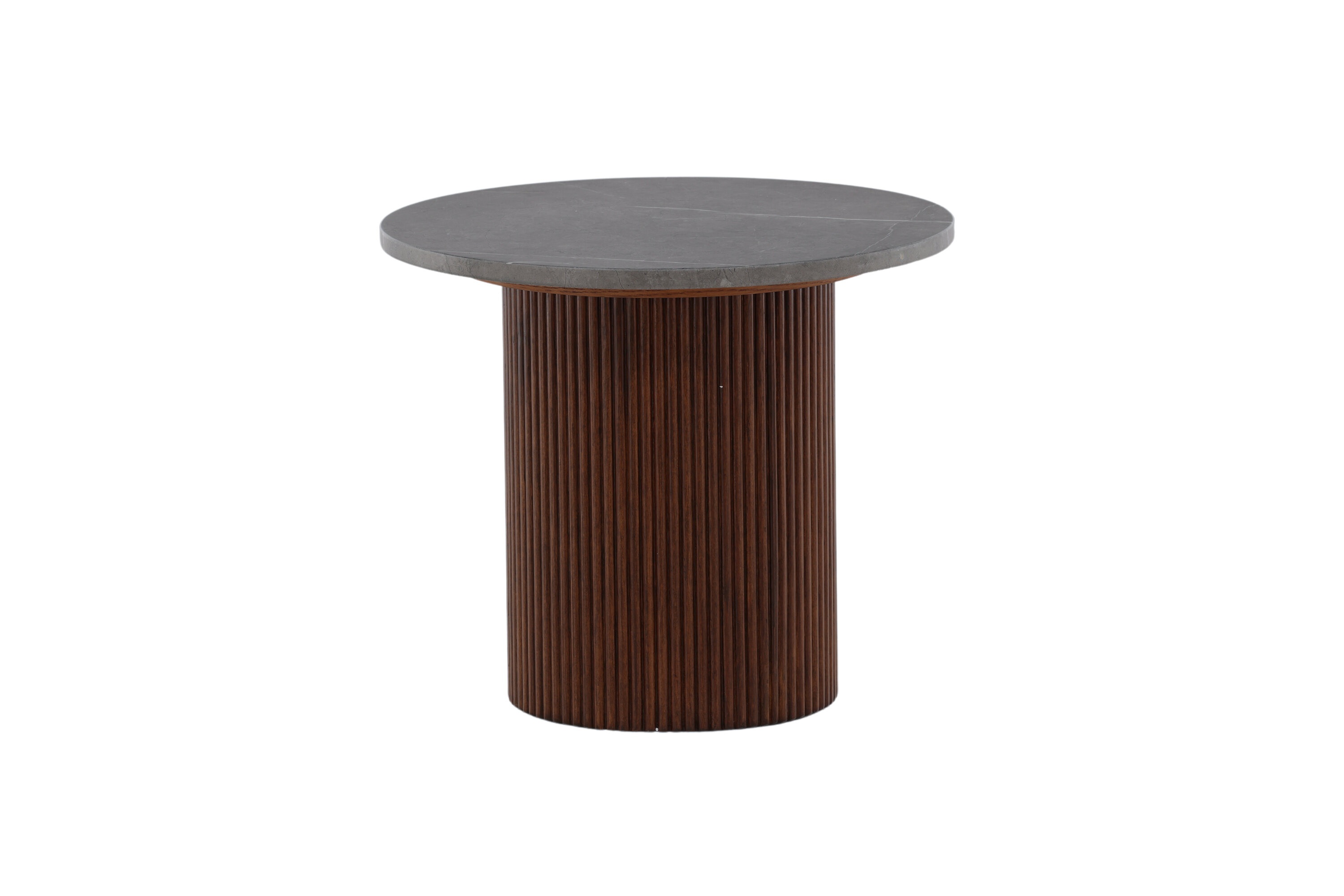 Härön side table has a unique design with delicious combination of MDF and ash! This side table belongs to the Vind collection and has a cylinder -shaped frame in ribbed, dark brown wood and a round table top in grey MDF which gives a wonderful life to the eye. Use as a side table, relief surface or pedestal - you decide in your home!
