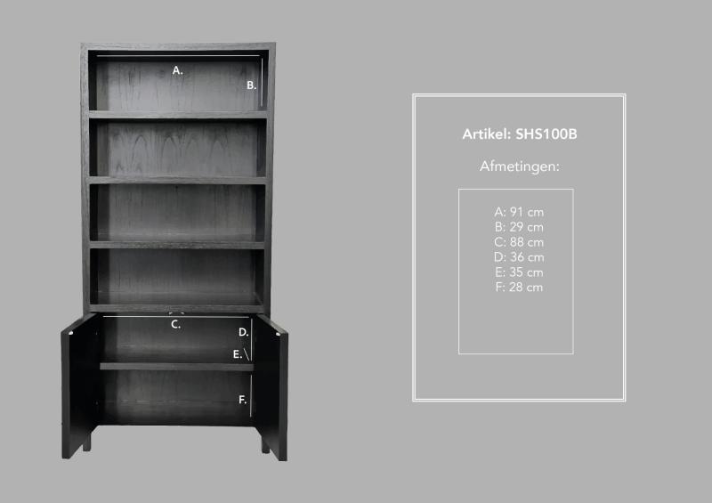 Het strakke ontwerp van deze wandkast maakt het een veelzijdig meubelstuk dat naadloos in elk interieur past. Met vier ruime vakken en vijf verstelbare legplanken, heb je voldoende ruimte om je spullen netjes op te bergen. Dankzij het tijdloze zwarte teak fineer straalt deze kast luxe en duurzaamheid uit.