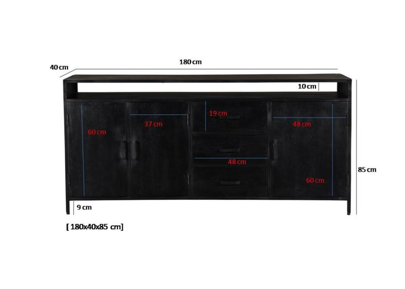 Livingfurn Dressoir Kala 180cm met open vak, Mangohout, kleur zwart