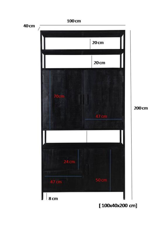 Livingfurn Opbergkast Kala Mangohout en staal, 200 x 100cm, kleur zwart