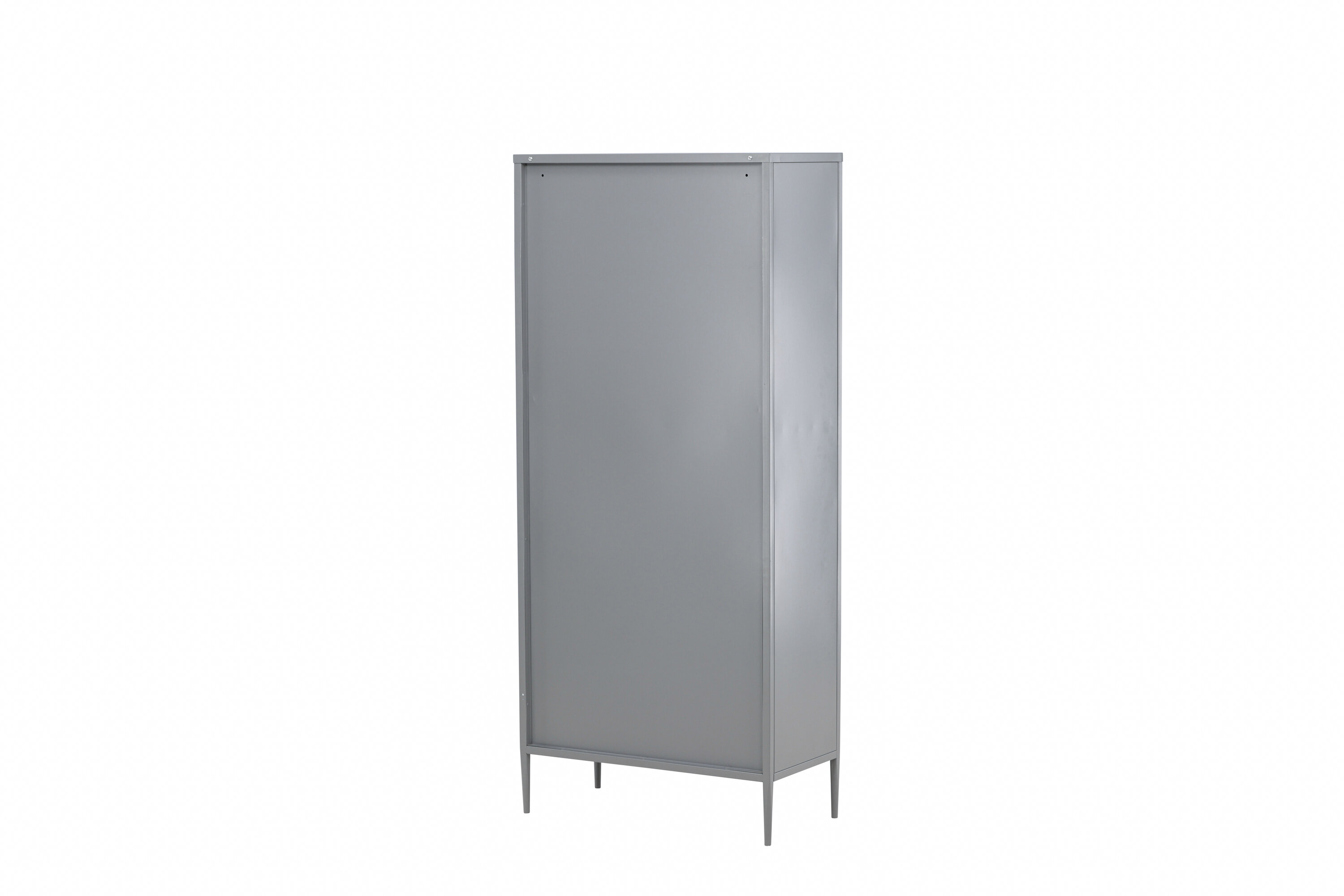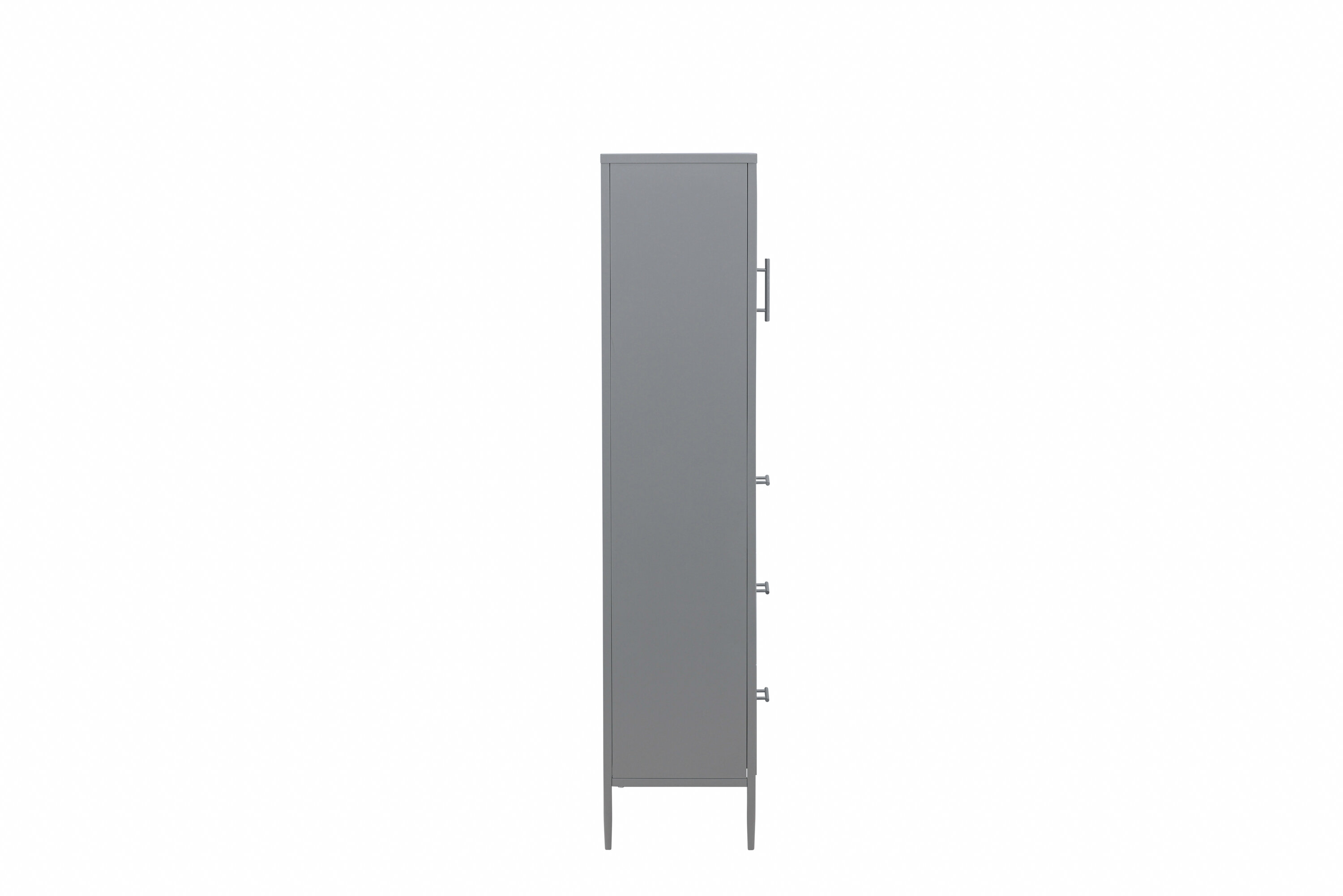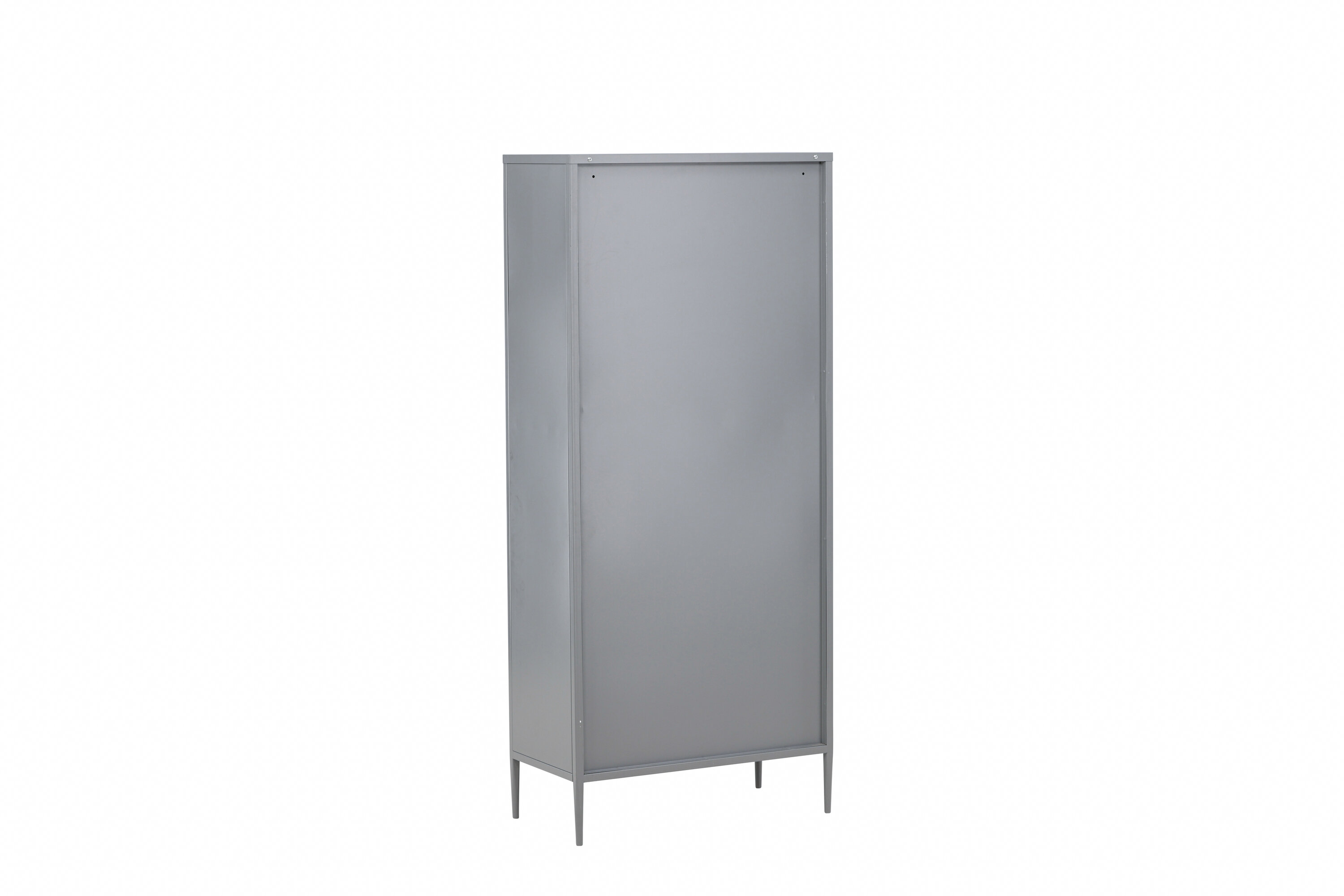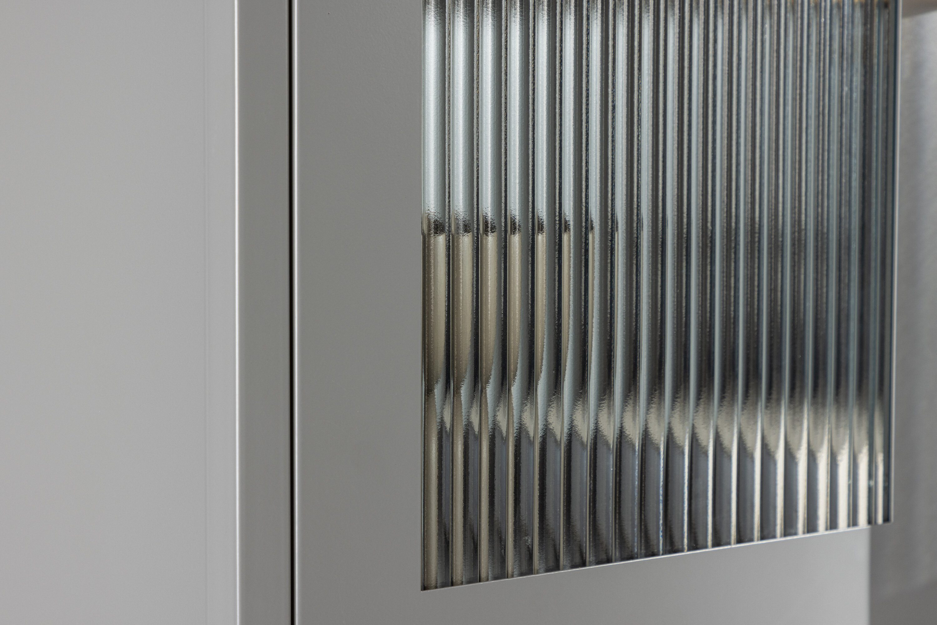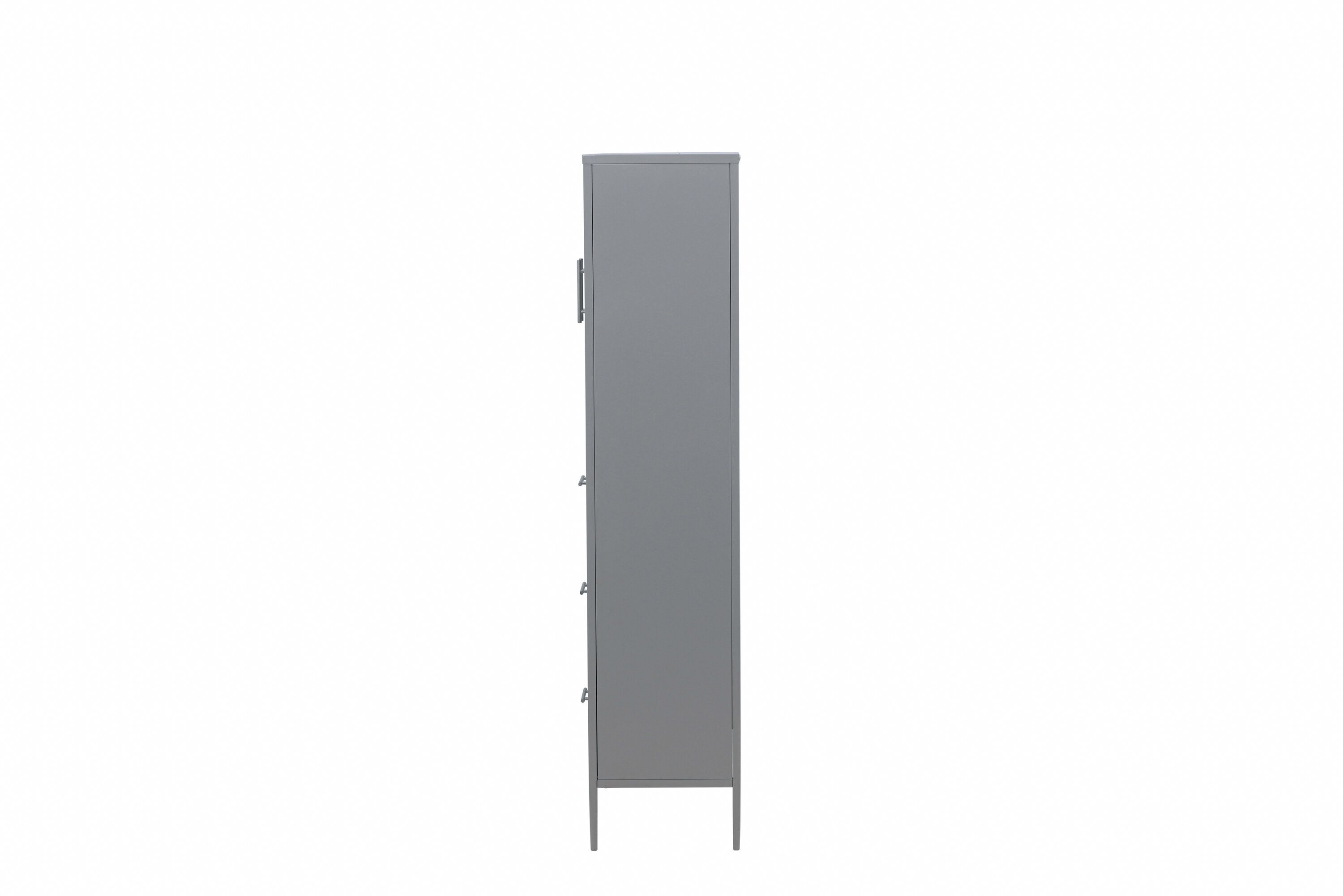Welcome to a grand level of storage with our magnificent storage cabinet in a beautiful light gray shade – La Paz! This cabinet is not just a cabinet; it combines stylish elegance and functionality perfectly and will likely change your perception of storage solutions. This light gray cabinet is thoughtfully designed down to the smallest detail. The brass-colored handles provide a luxurious touch to the centerpiece. Their subtle shine captures your attention and gives an enchanting aura to the whole. The cabinet is crafted in powder-coated metal in a pleasant light gray hue that seamlessly blends into numerous interior design styles. It's supported by four slender legs that not only create an airier impression but also make vacuuming easier. At the bottom, there are three spacious drawers, which are your secret weapon against a cluttered home. Here, you can easily and smoothly conceal things, keeping your space neat and organized. On top, there are two cabinet doors framed by an arched design in textured glass, discreetly revealing a glimpse of your beautiful storage. Place your fine china or luxurious glasses on top and let them become a part of your decor!