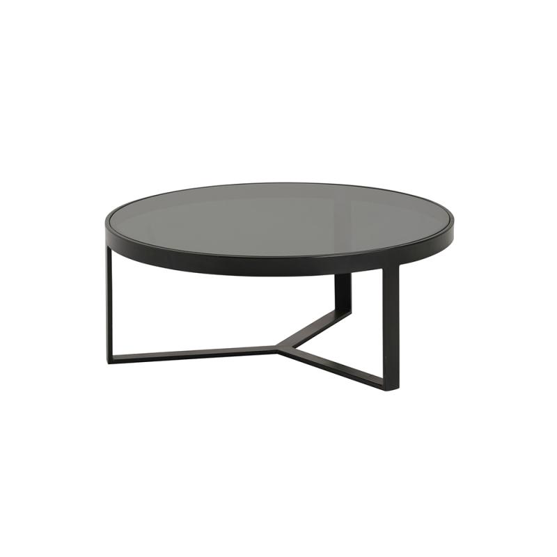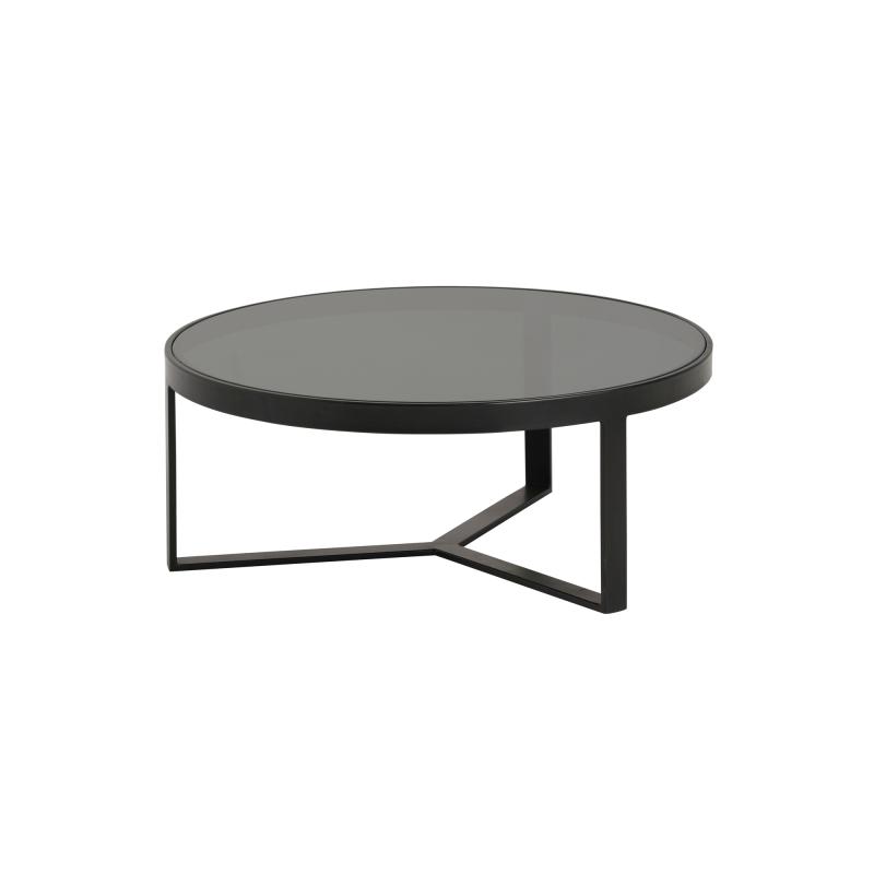 De Lazio Salontafel Ø75 en Bijzettafel Ø50 uit de Mix & Match Collection van MySons combineren modern design met tijdloze elegantie. Beide tafels hebben een strak zwart, gepoedercoat metalen frame en een luxe glazen blad in Fumé Noir, wat zorgt voor een verfijnde en eigentijdse uitstraling.