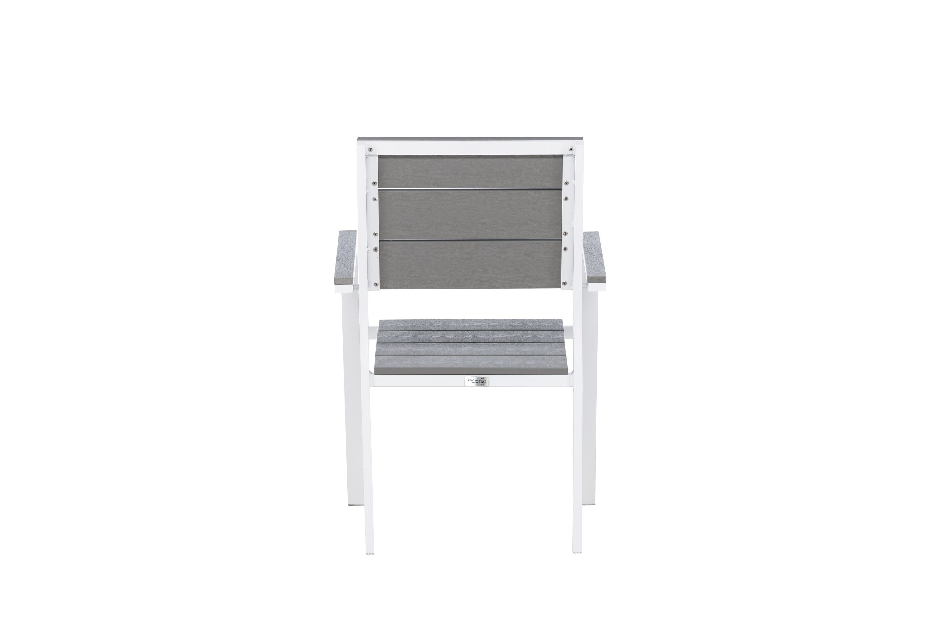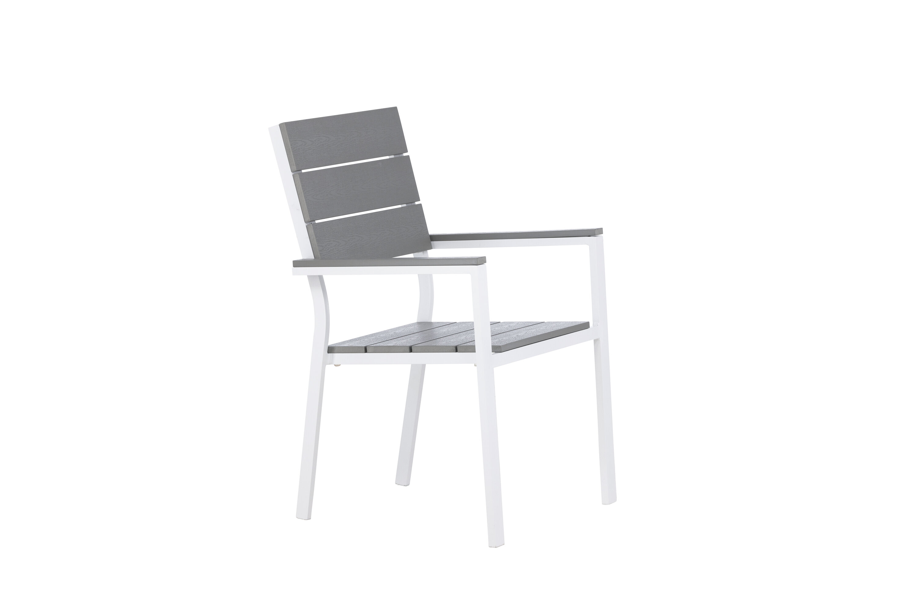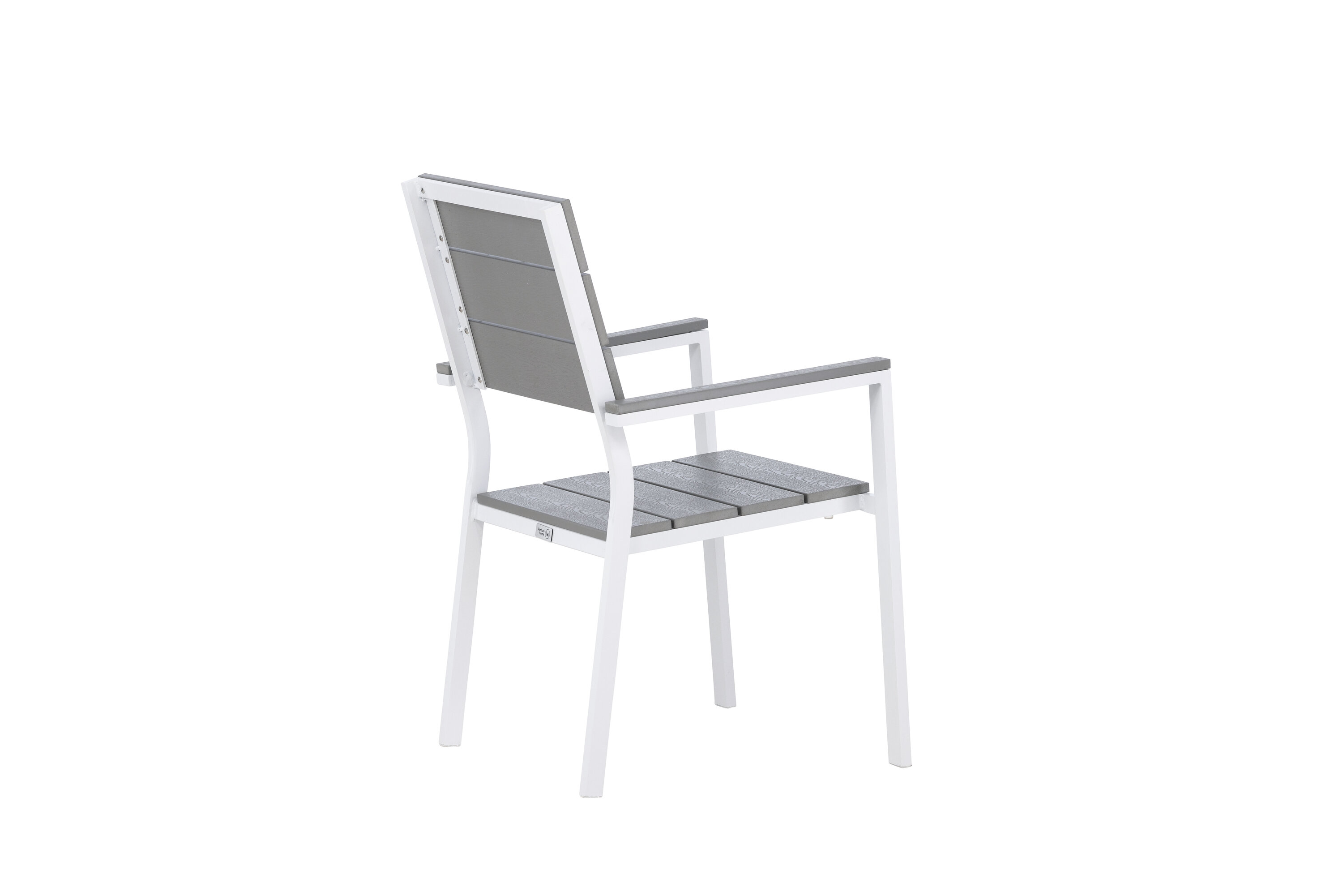 Create a modern eye -catcher with Levels, a practical armchair in white aluminum with gray seat and back part in Smaster Aintwood. The chair is stackable, for smooth storage. Here you get a robust chair with stylish design and straight Nordic shapes that will give you many wonderful summer dinners ahead. Care advice: The material is designed to be used outdoors as it is weather resistant and resists both moisture and mold. Aintwood is therefore an optimal material for outdoor furniture. Avoid damage to the table by using underlay and not placing hot objects directly on the surface.