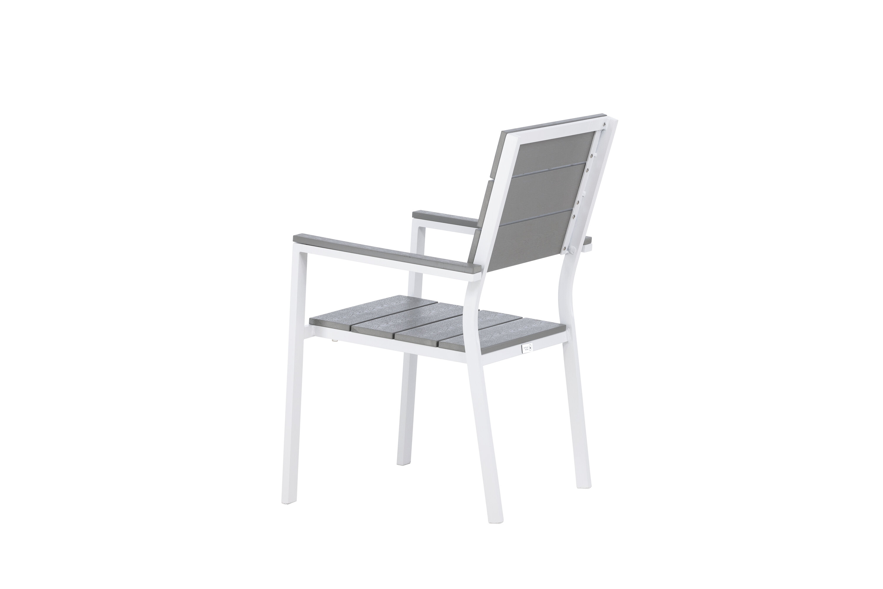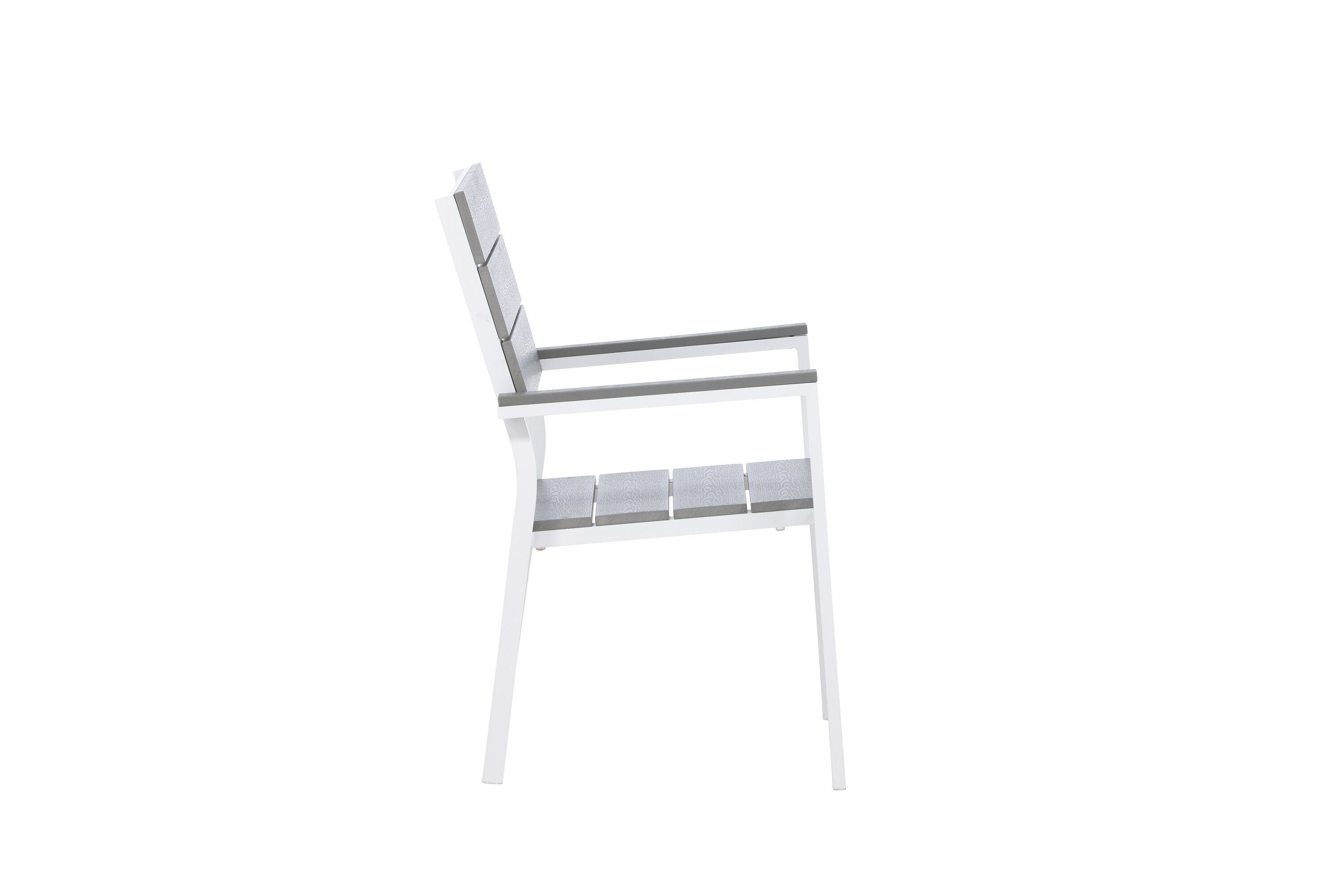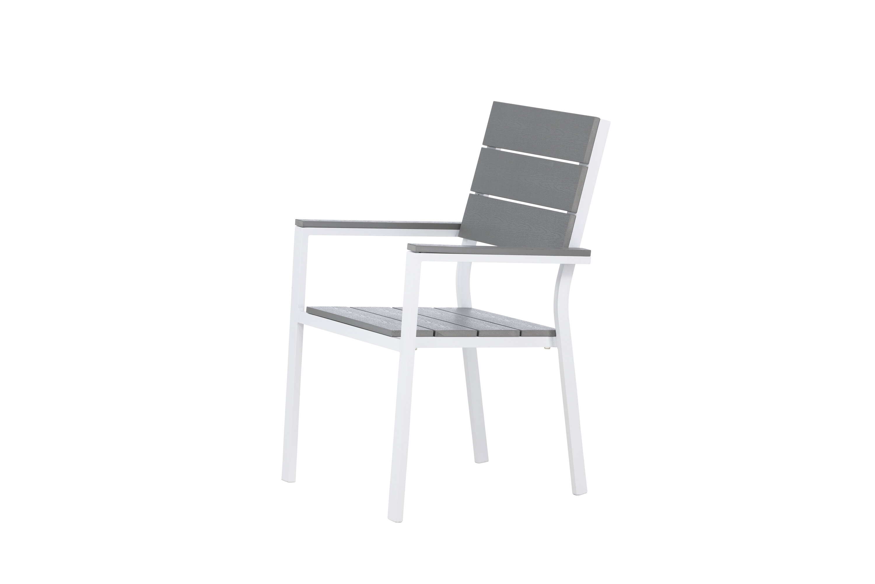 Create a modern eye -catcher with Levels, a practical armchair in white aluminum with gray seat and back part in Smaster Aintwood. The chair is stackable, for smooth storage. Here you get a robust chair with stylish design and straight Nordic shapes that will give you many wonderful summer dinners ahead. Care advice: The material is designed to be used outdoors as it is weather resistant and resists both moisture and mold. Aintwood is therefore an optimal material for outdoor furniture. Avoid damage to the table by using underlay and not placing hot objects directly on the surface.