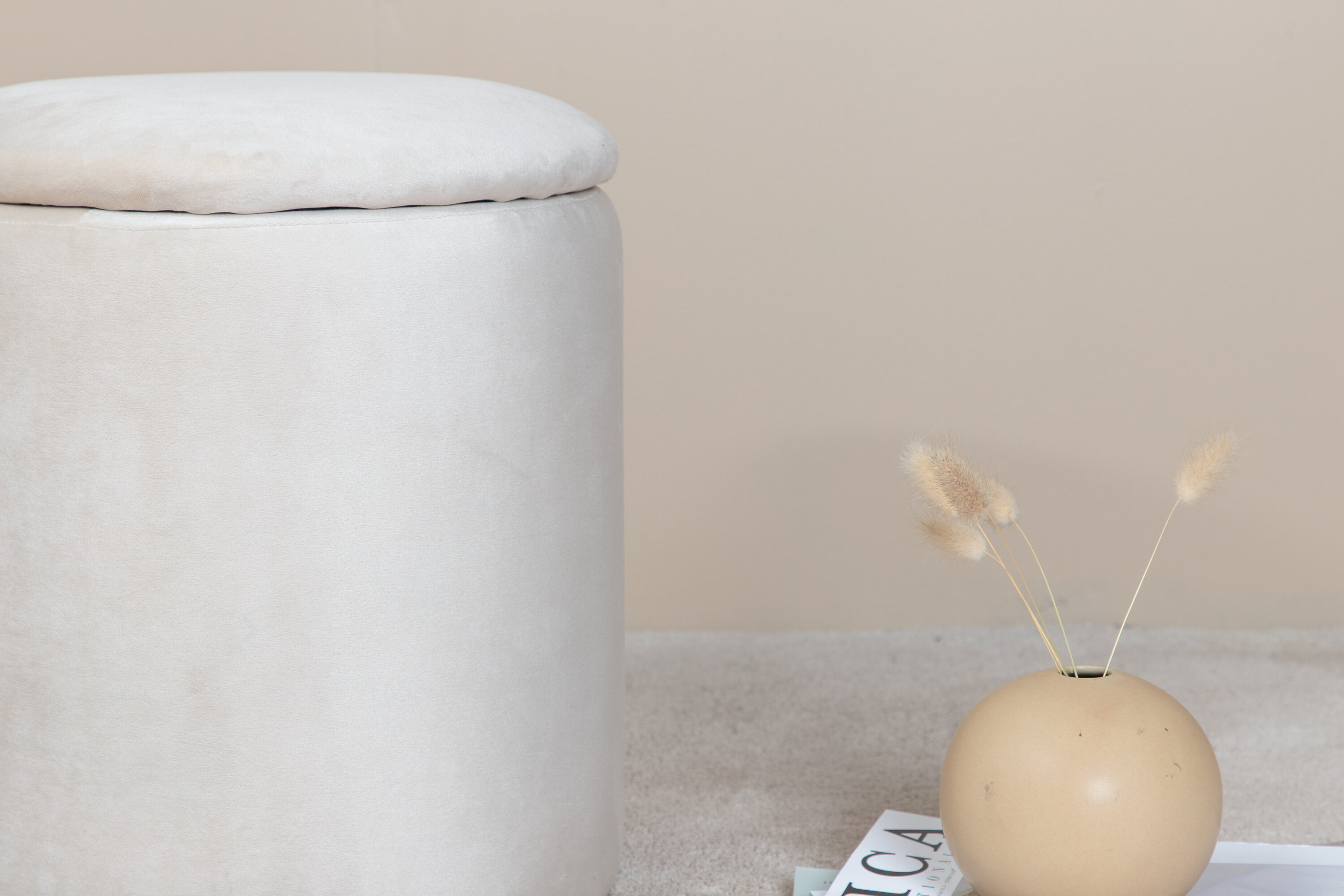 A velvety interior dream that is as practical as good looking - that's exactly what the seat puff Limpen offers! With a wide range of use, pretty size and stylish look, the puff is easy to place and easy to move around. There is also a removable lid that enables hidden storage. Made of delicious velvet fabric in beige color and a frame of the materials foam, cotton fiber, fabric and bent wood. Puffs Dimensions: Height: 40 cm, diameter: 32 cm. Furnish the living room smart and stylish! Care advice: The velvet has a tendency to get pressure marks when the pile lies down. The imprints can make the fabric look worn out, which here is quite normal for this type of material. Depending on how the light falls, the fabric can change in most different shades.