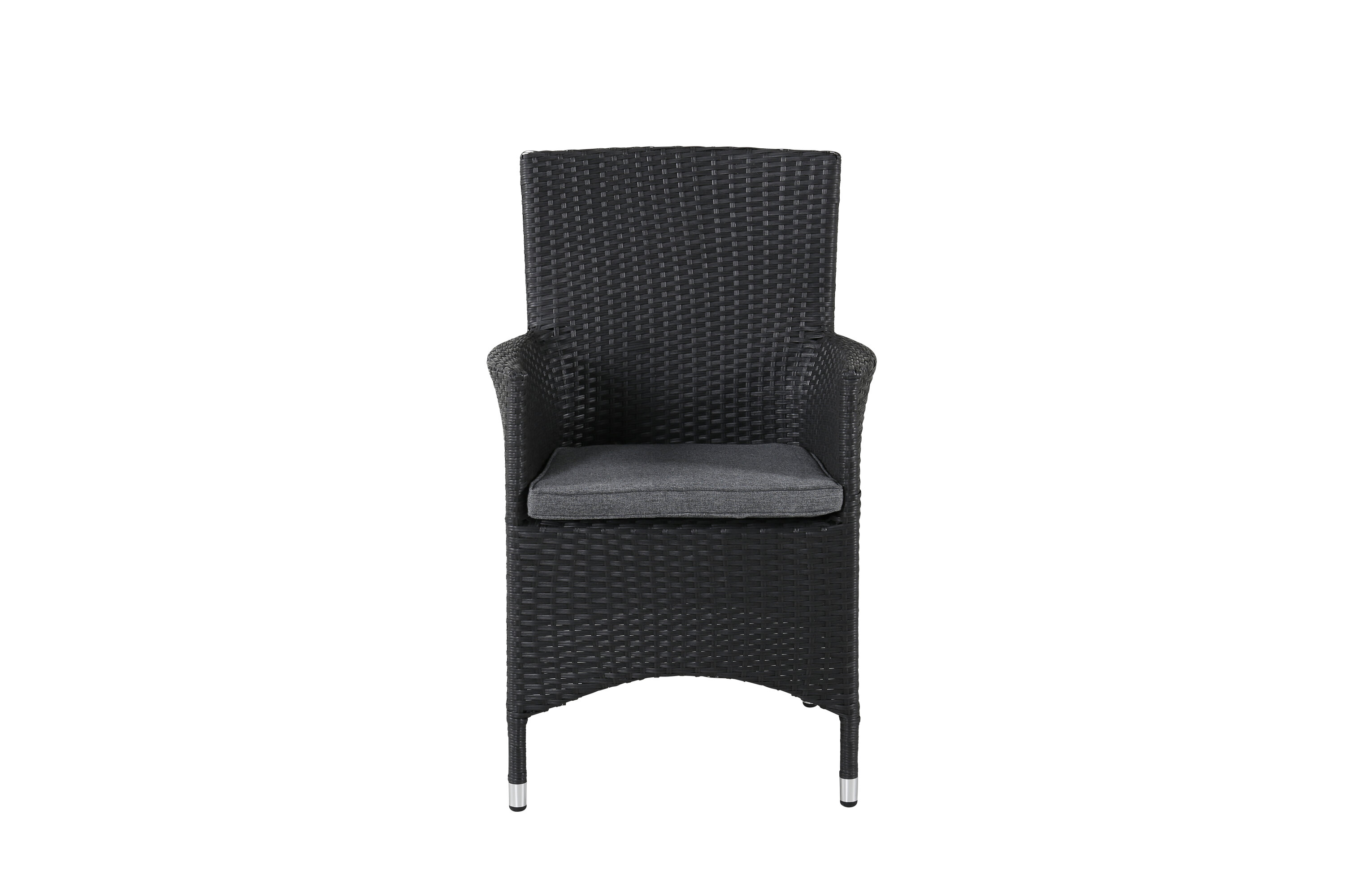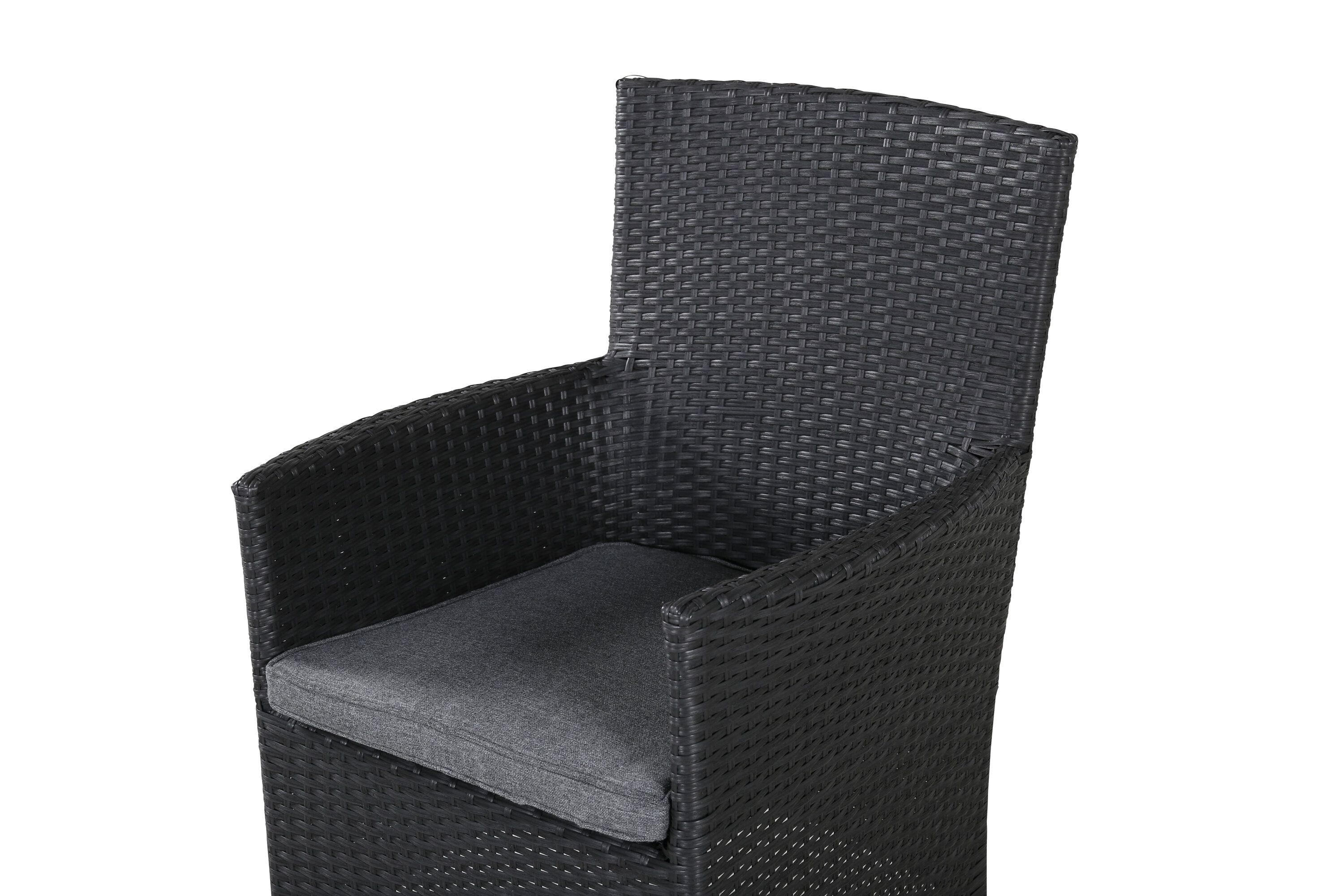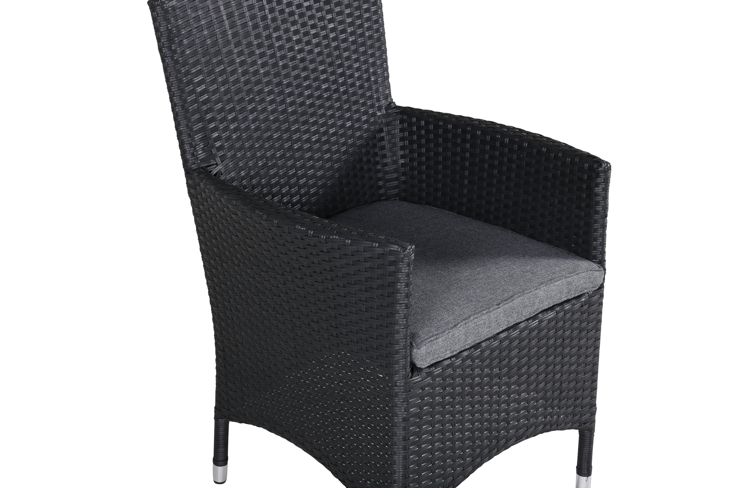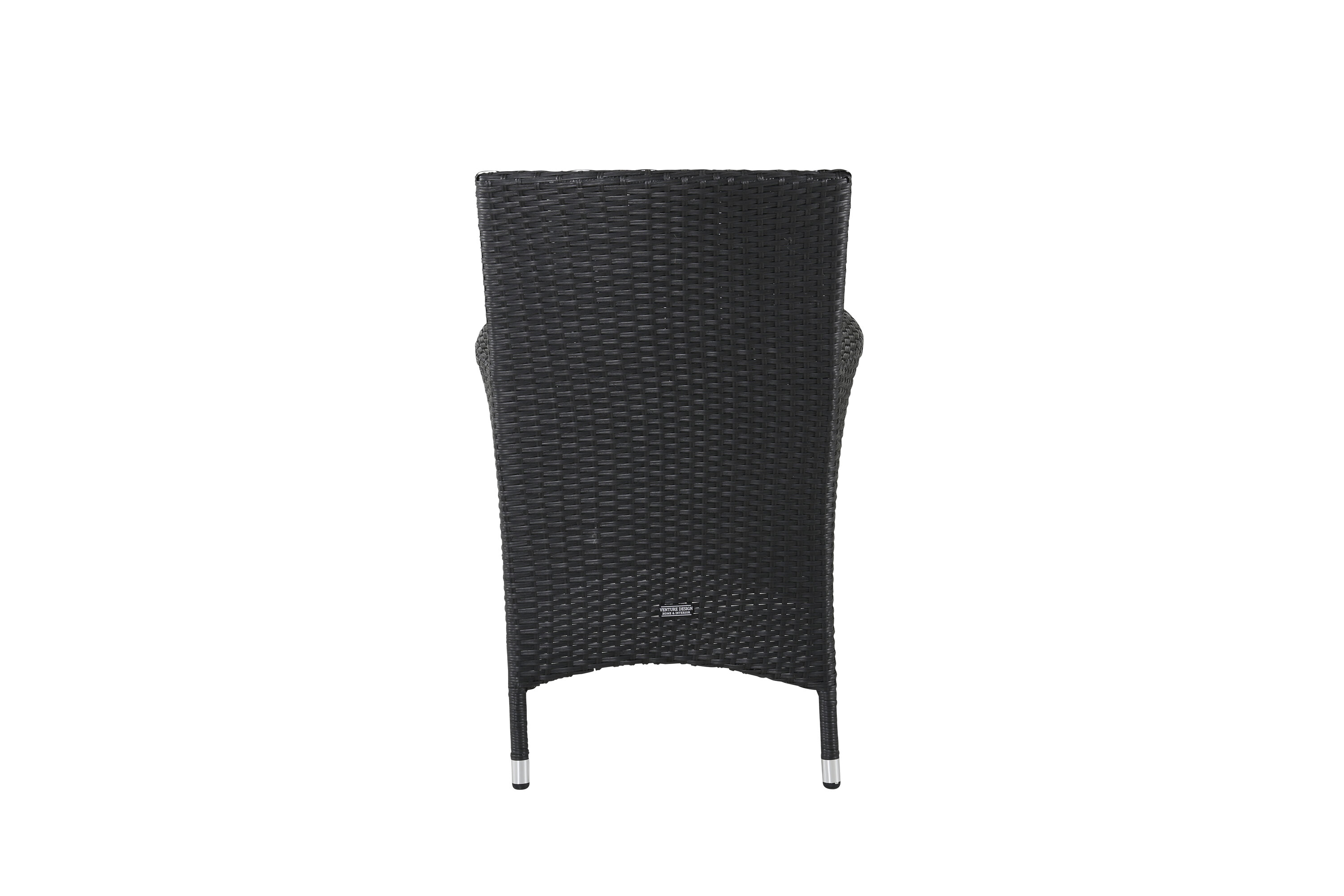Our popular artificial chair from the series Malin in black color. In this armchair with Scandinavian design you can enjoy many dinners with your loved ones during the summer. With durable material, a frame in aluminum and artificial rattan, you get a robust chair that stands over time. Sit convenient this summer! The chair is stackable. Care advice: Konstrite is a plastic material that is perfect for our Scandinavian climate. The material is UV-resistant and can withstand weather and wind. The fact that it is UV-resistant means that the furniture does not fade, however, we always recommend storing the furniture under a furniture protection or otherwise dry and cool-to extend the service life.
