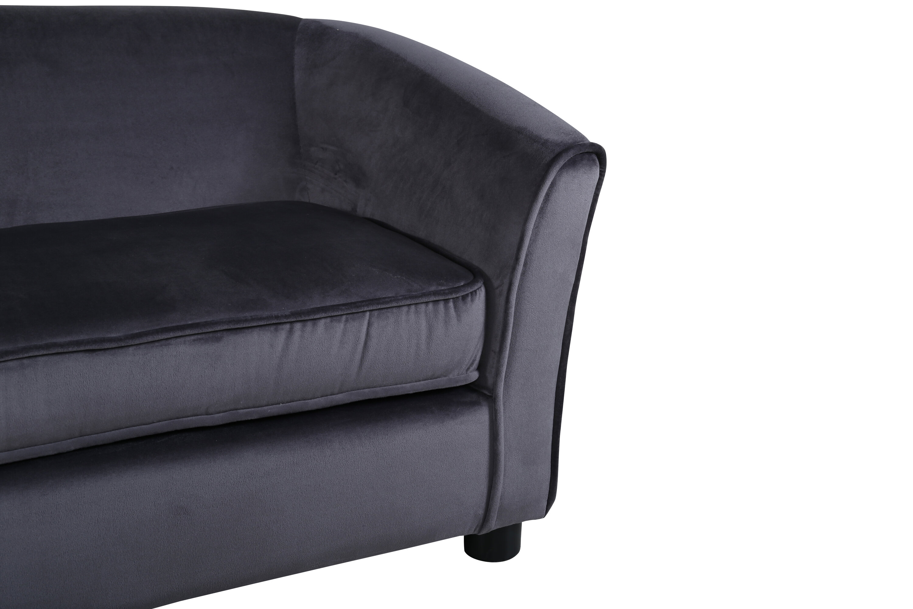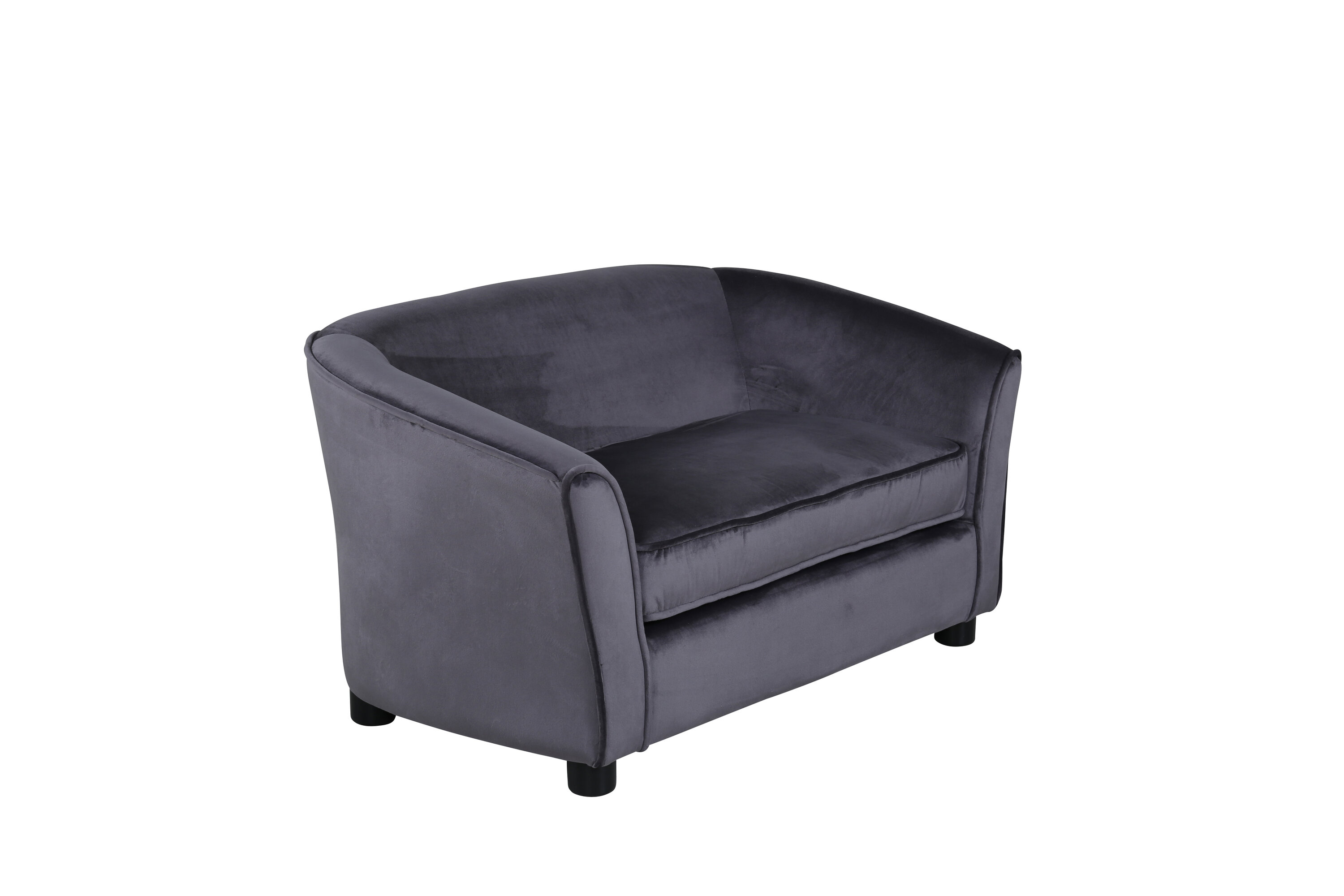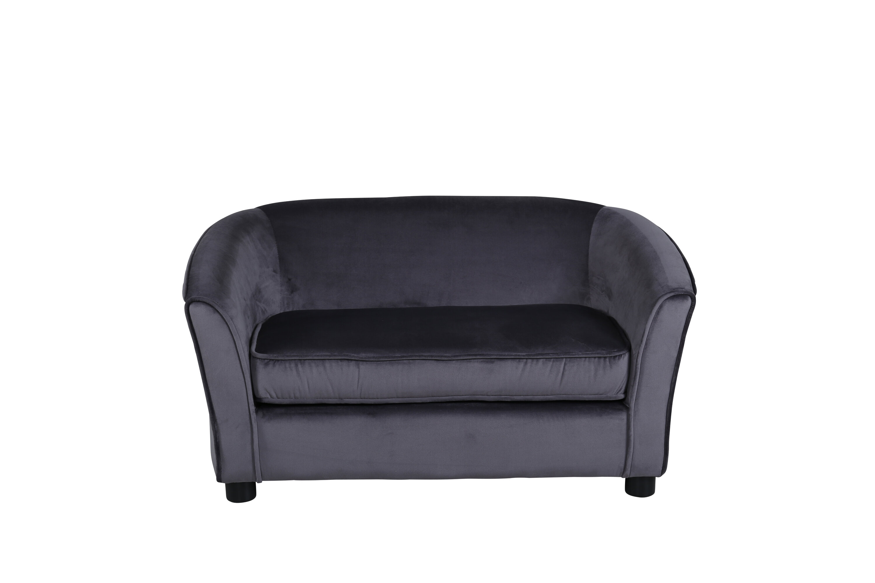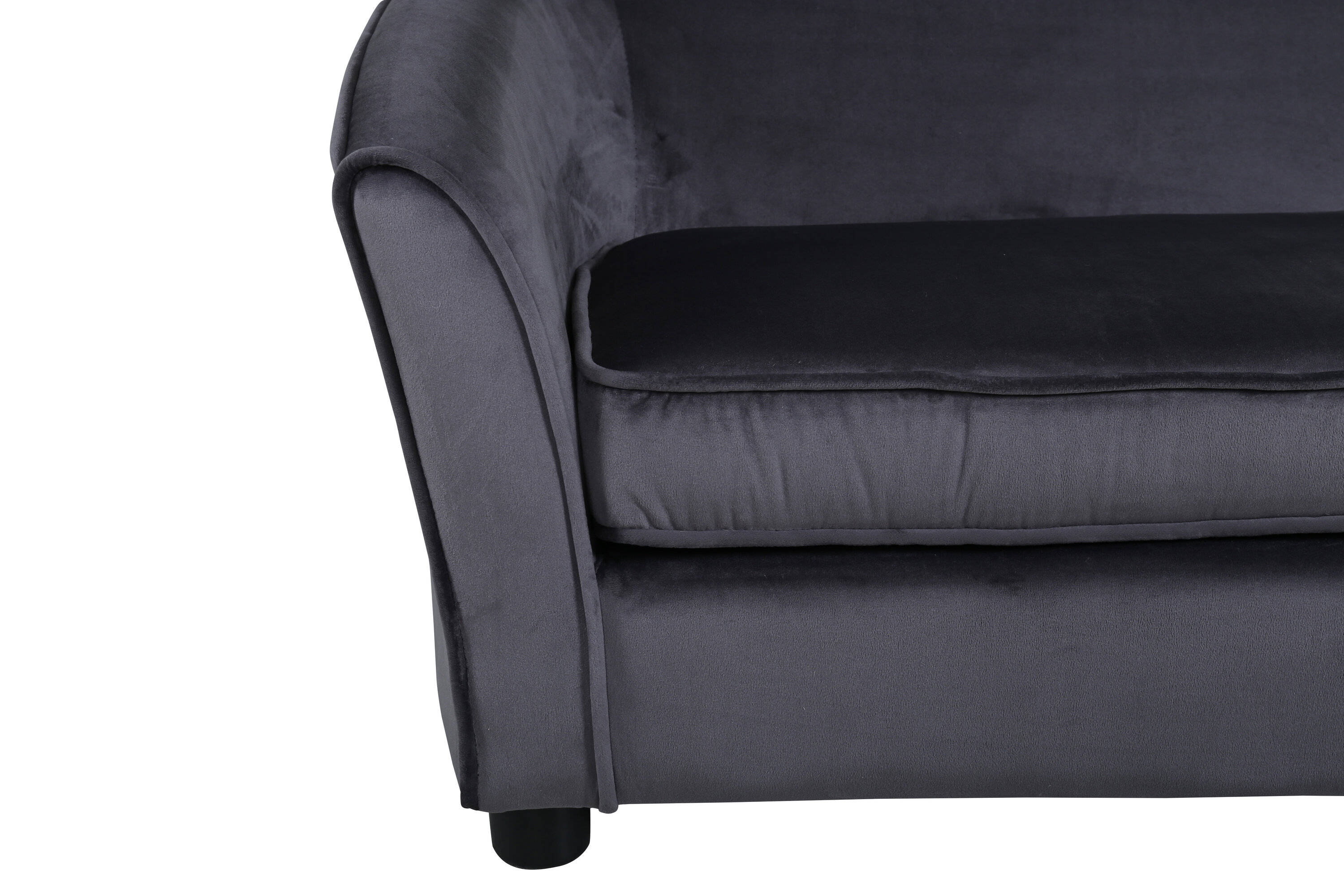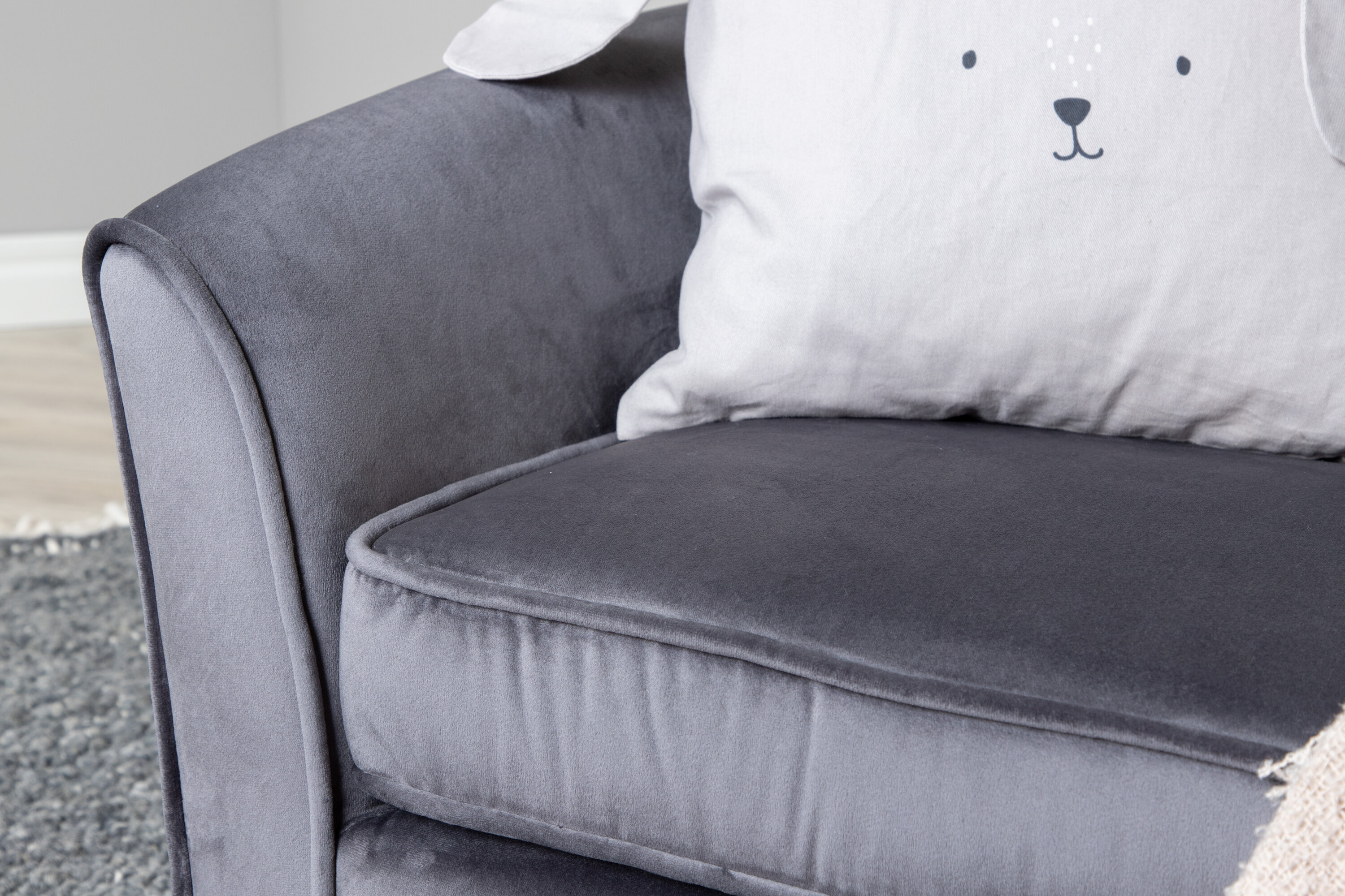 Decorate the children's room with our soft and cozy sofa moon. The sofa is made of a dark gray velvet fabric and black legs in plastic. Sofa Dimensions: Seat width: 72cm, seat depth: 44cm, seat height: 33cm.