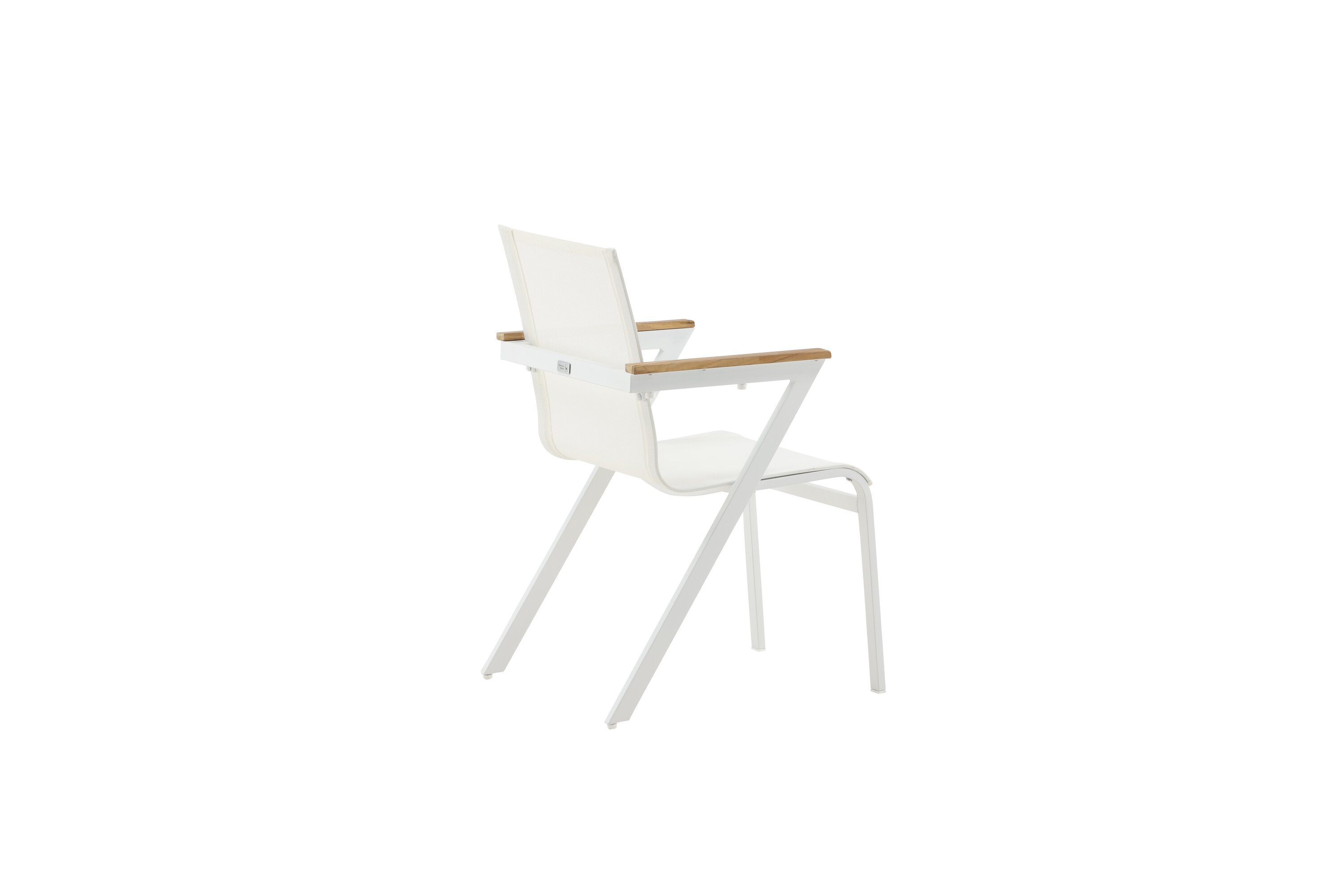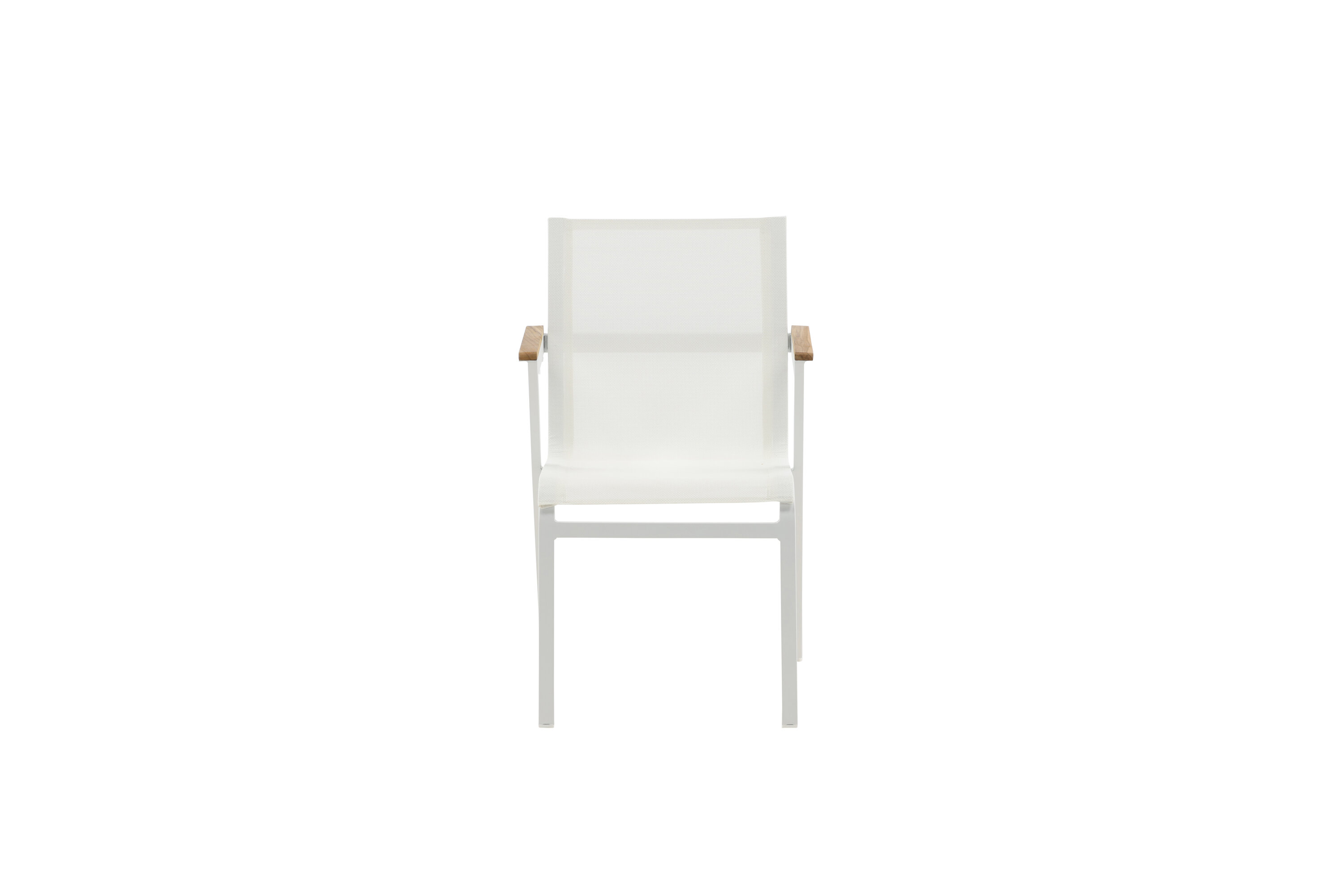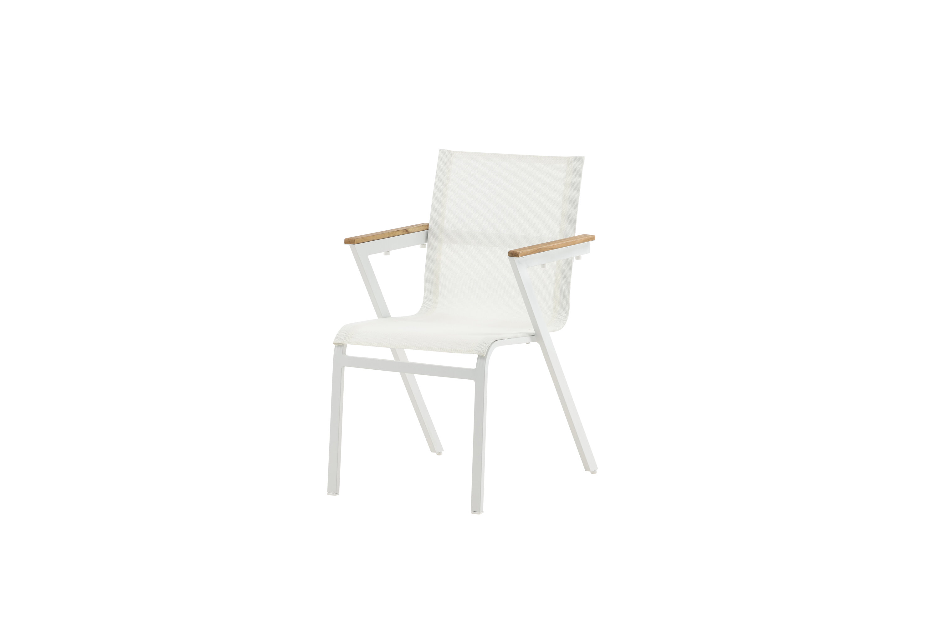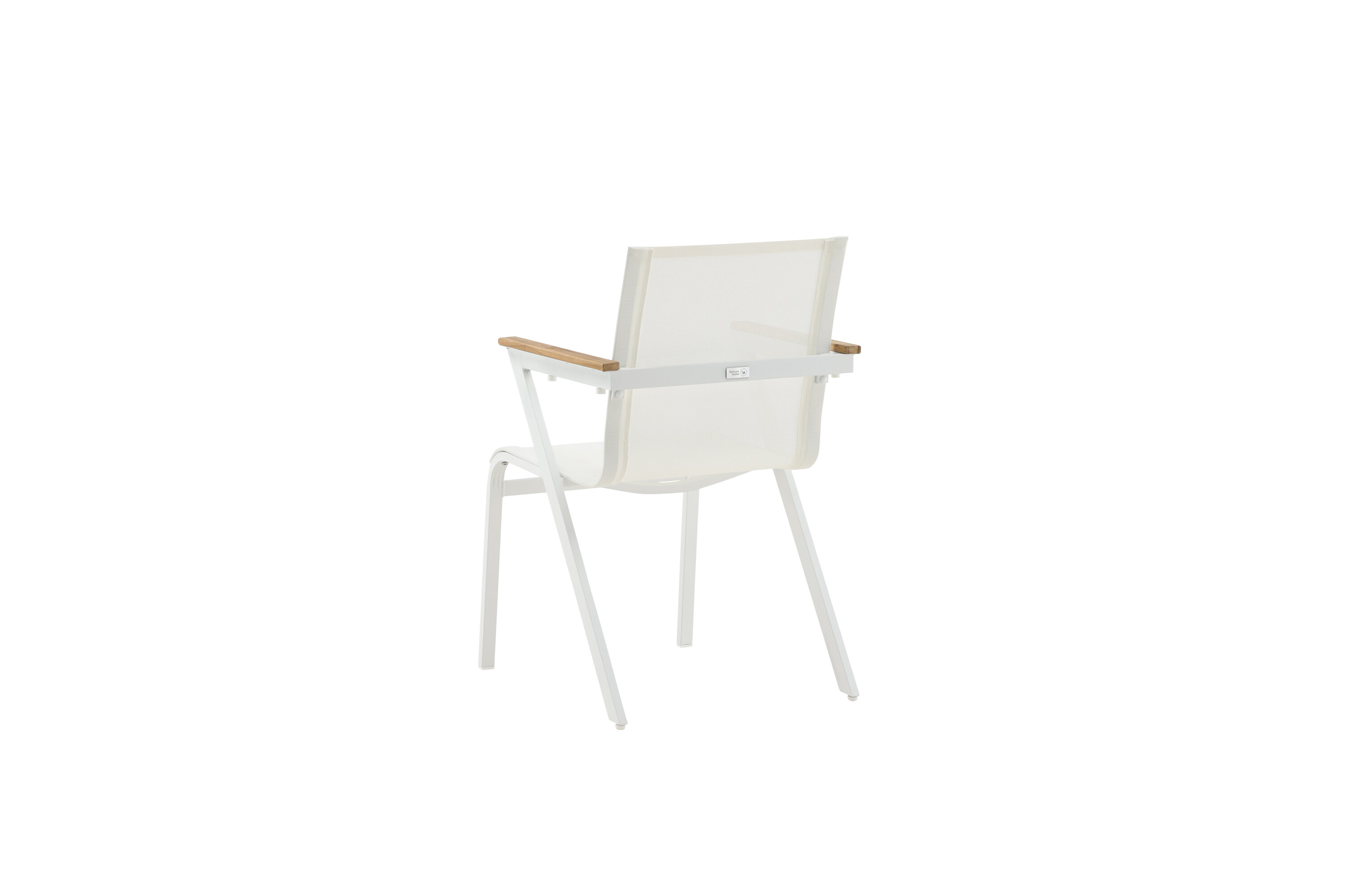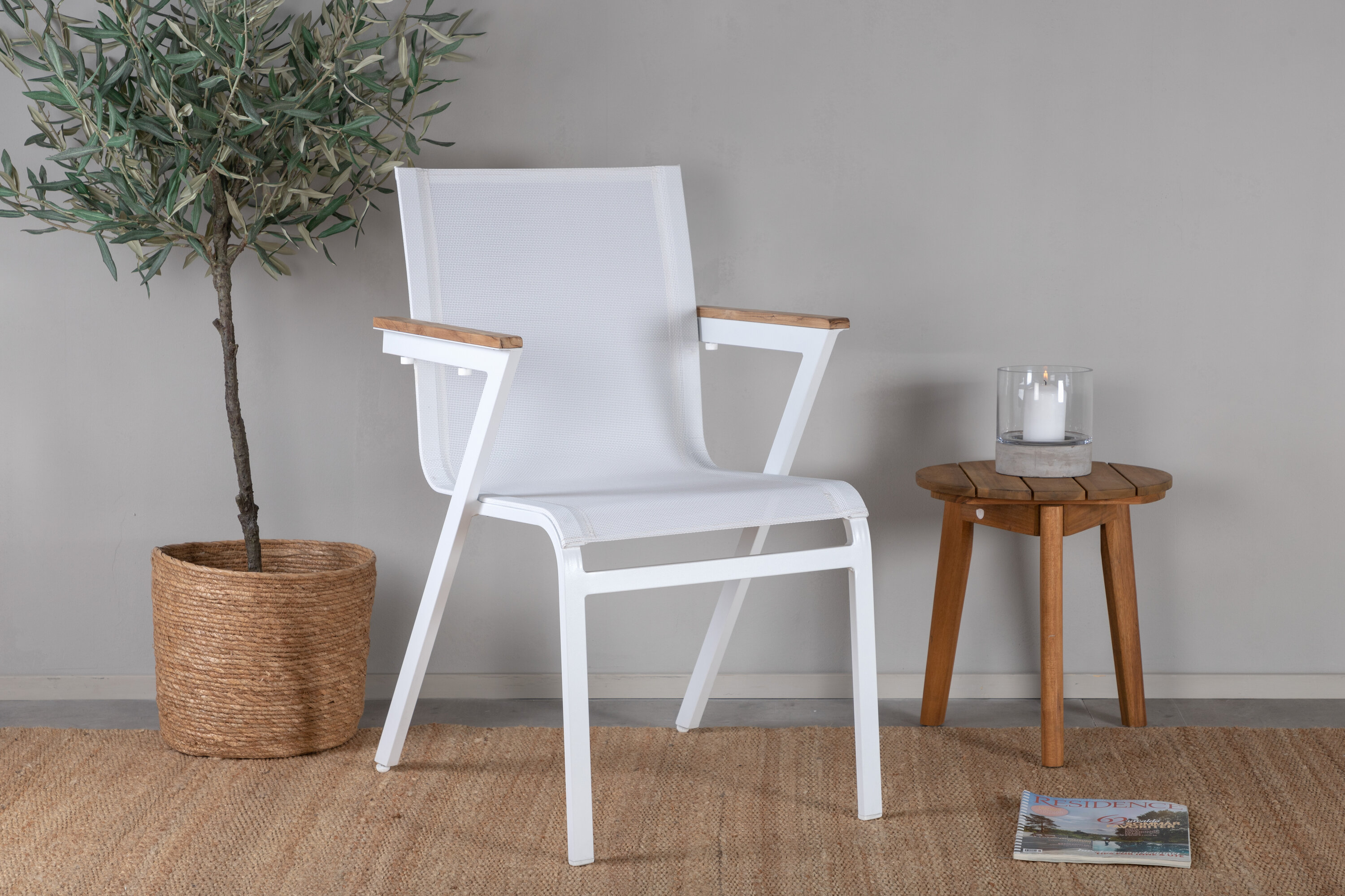 Get ready for this summer's nightlife with a timeless armchair from the Mexico series. A tasteful dining chair that fits perfectly with both modern and classic dining tables. The armrests are made of teak which creates a nice detail for the white seat. The chair is stackable which makes it easy to store. Sit comfortably and enjoy pleasant meals outdoors! Care advice: Our furniture in textile is usually combined with teak or aluminum. Textilene is a synthetic fabric made of PVC-treated polyester. The material is water resistant and UV-treated to counteract the sun's bleaching.