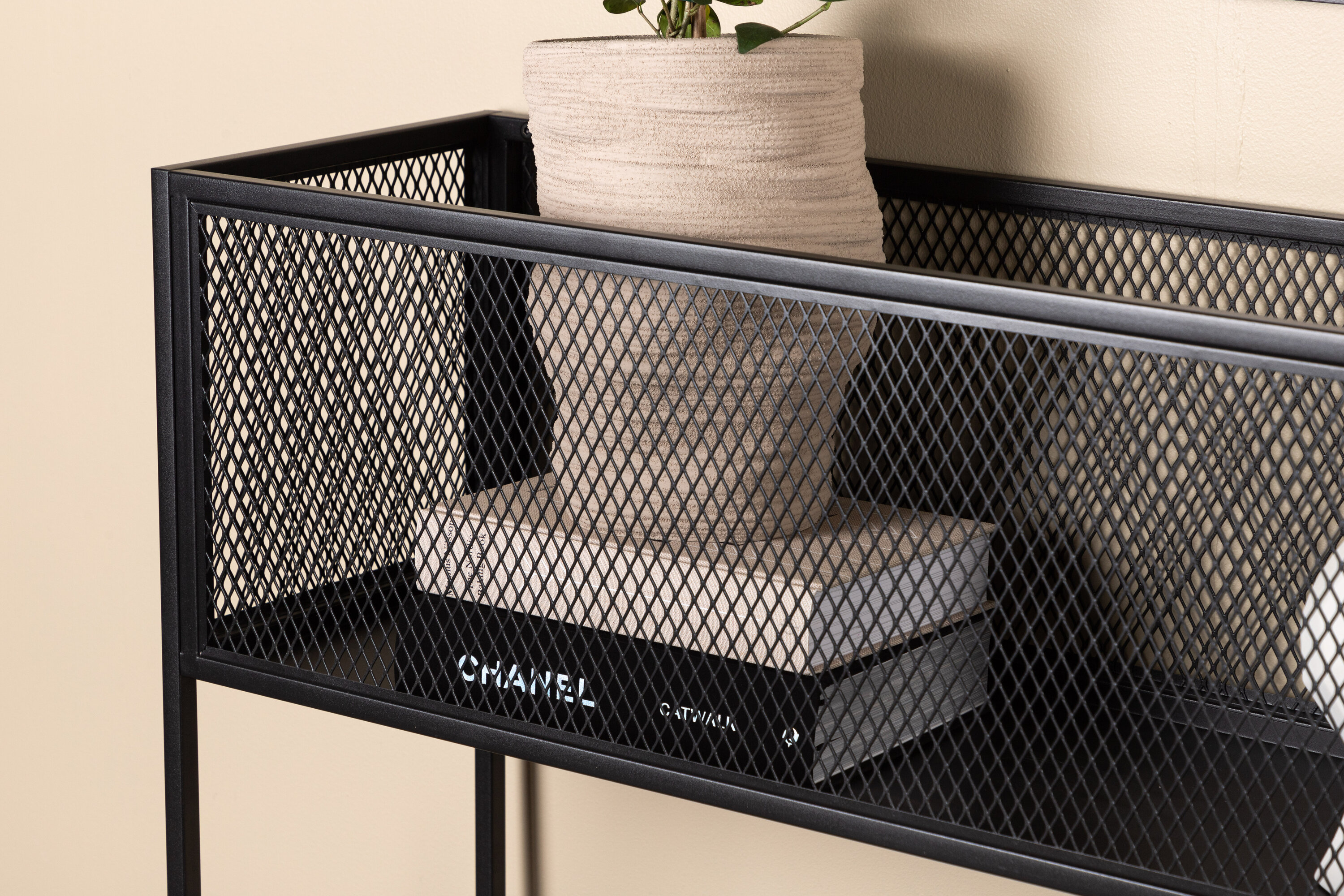 Furnish the home modern and smart with the help of Netz relief shelf! This delicious side table/shelf has a slender industrial design with a shelf for storage, web pages around the entire storage surface and narrow high legs in black steel. The flexible size and elegant outside of the cabinet make it easy to place and fit well into most rooms in the home, so furnish according to your own needs and desires and decorations with beautiful decorations, flowers or other that must be stored - only the imagination sets limits!