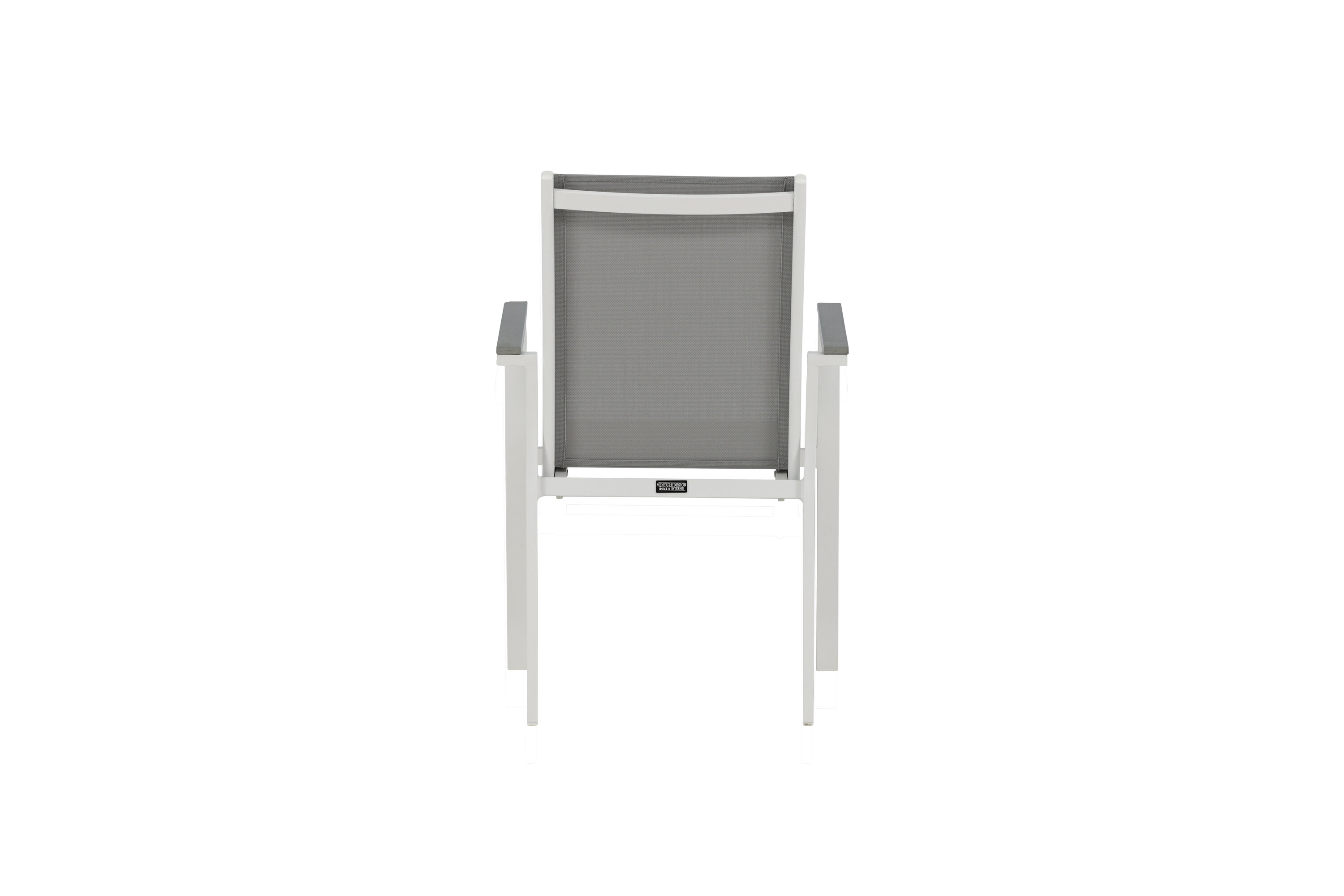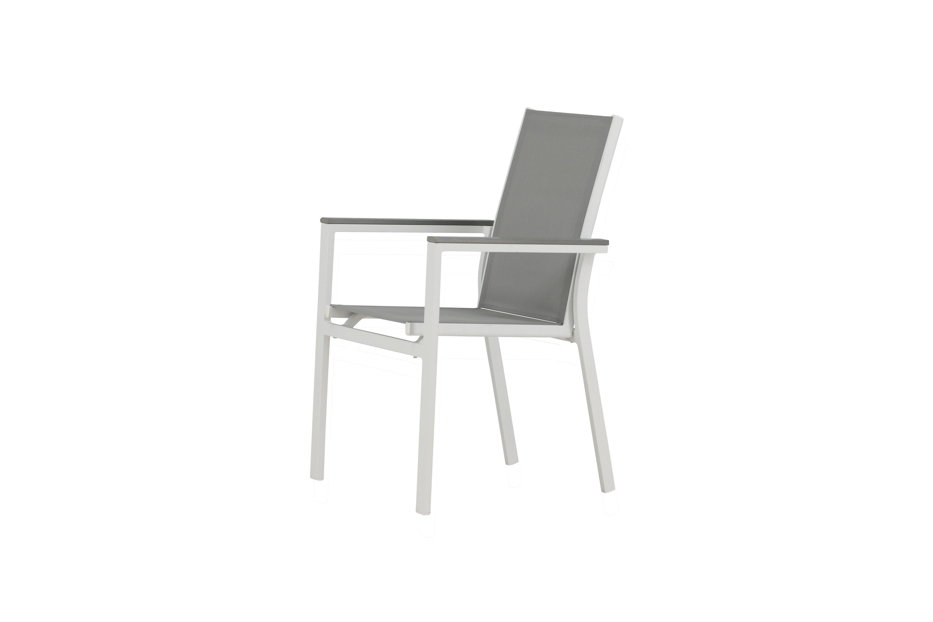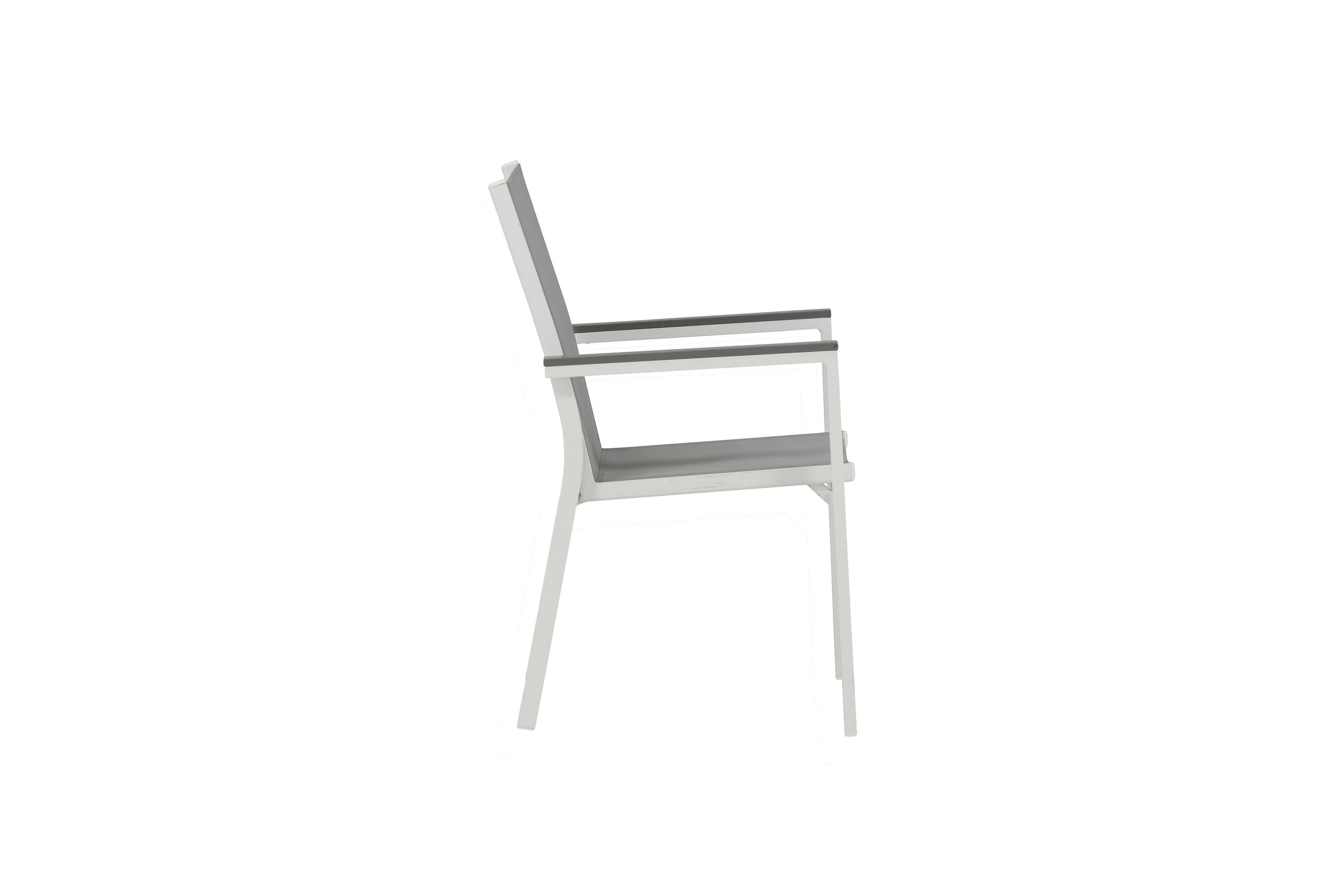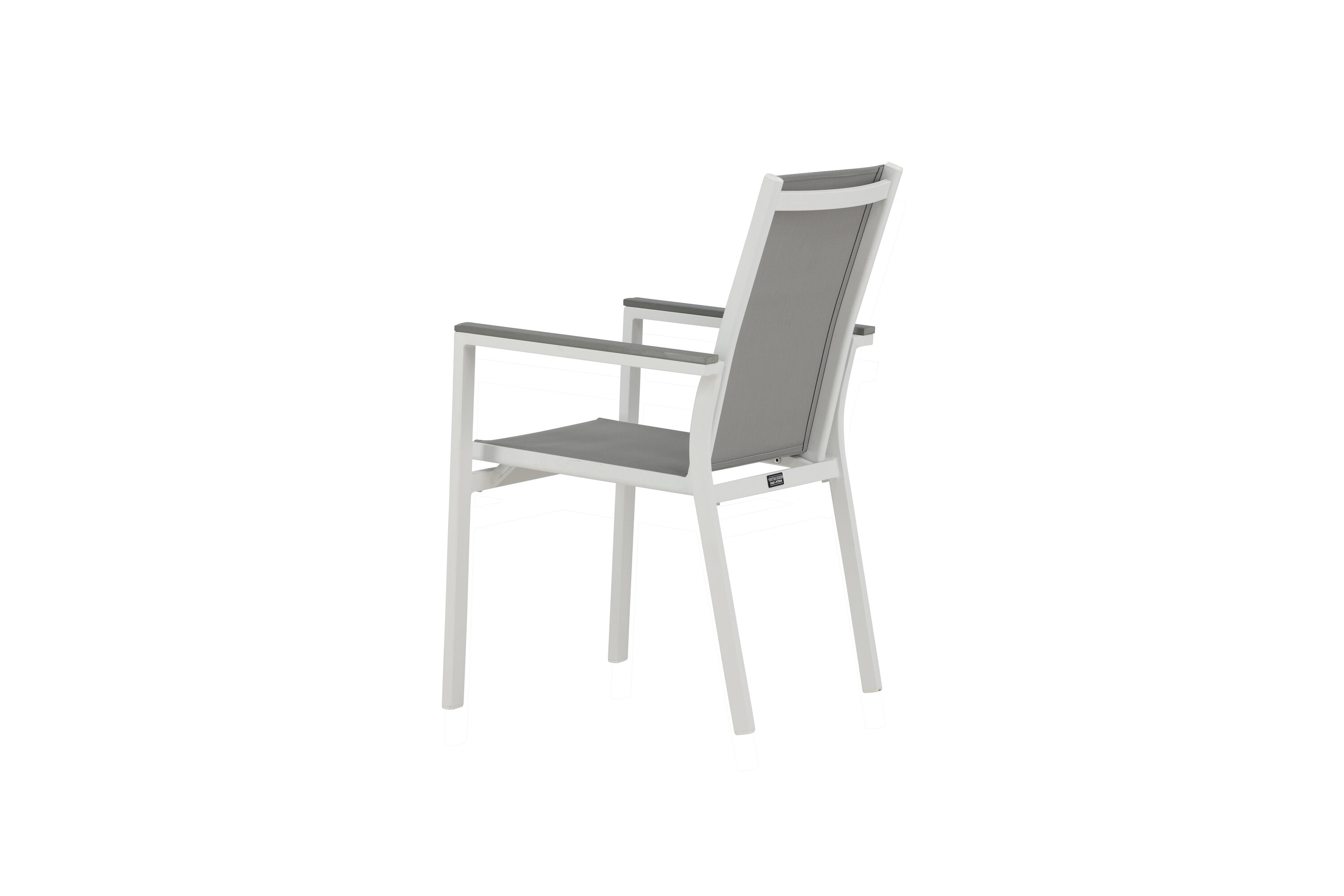 Parma is our popular armchair in classical, industrial design and straight Nordic forms. The pervasive light color in gray and white creates a modern feel and the durable material aluminum and textile giving you a chair that stands over time. The chair has armrests in gray Aintwood which becomes a tasteful detail. Parma is also stackable which makes it easy to store. Care advice: Textilene is a synthetic fabric made of PVC-treated polyester. The material is water resistant and UV-treated to counteract the sun's bleaching. Cleaning should be done about once a month, use a damp cloth and dry.