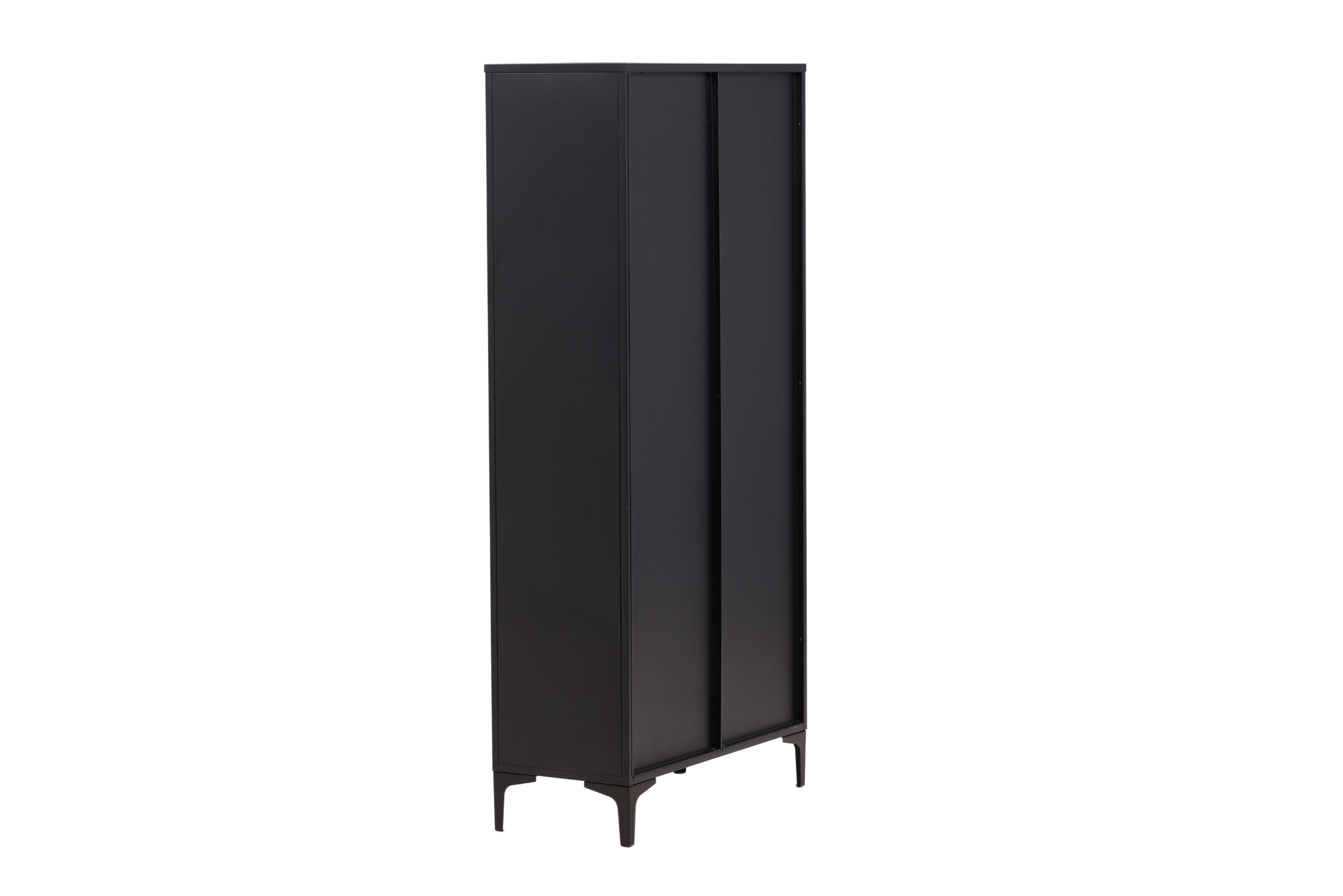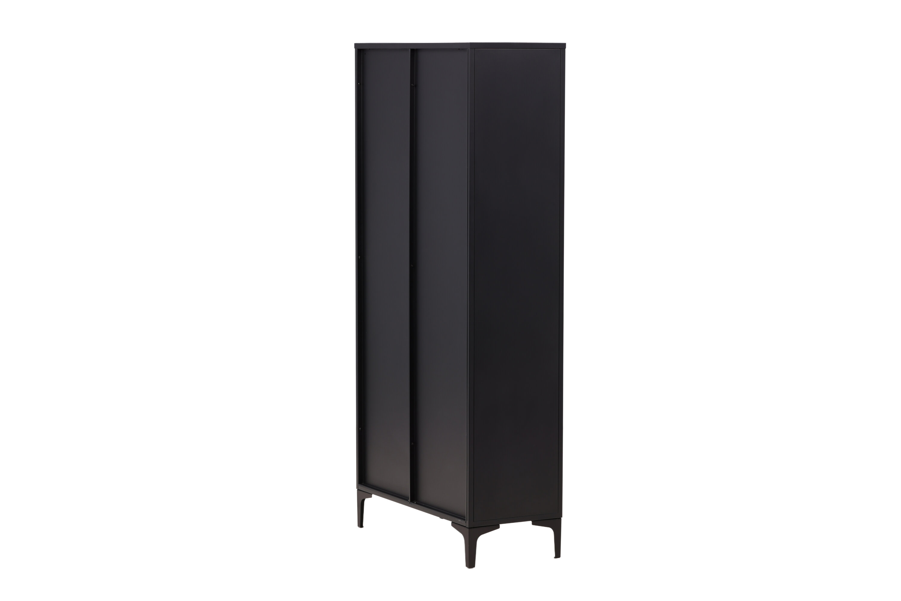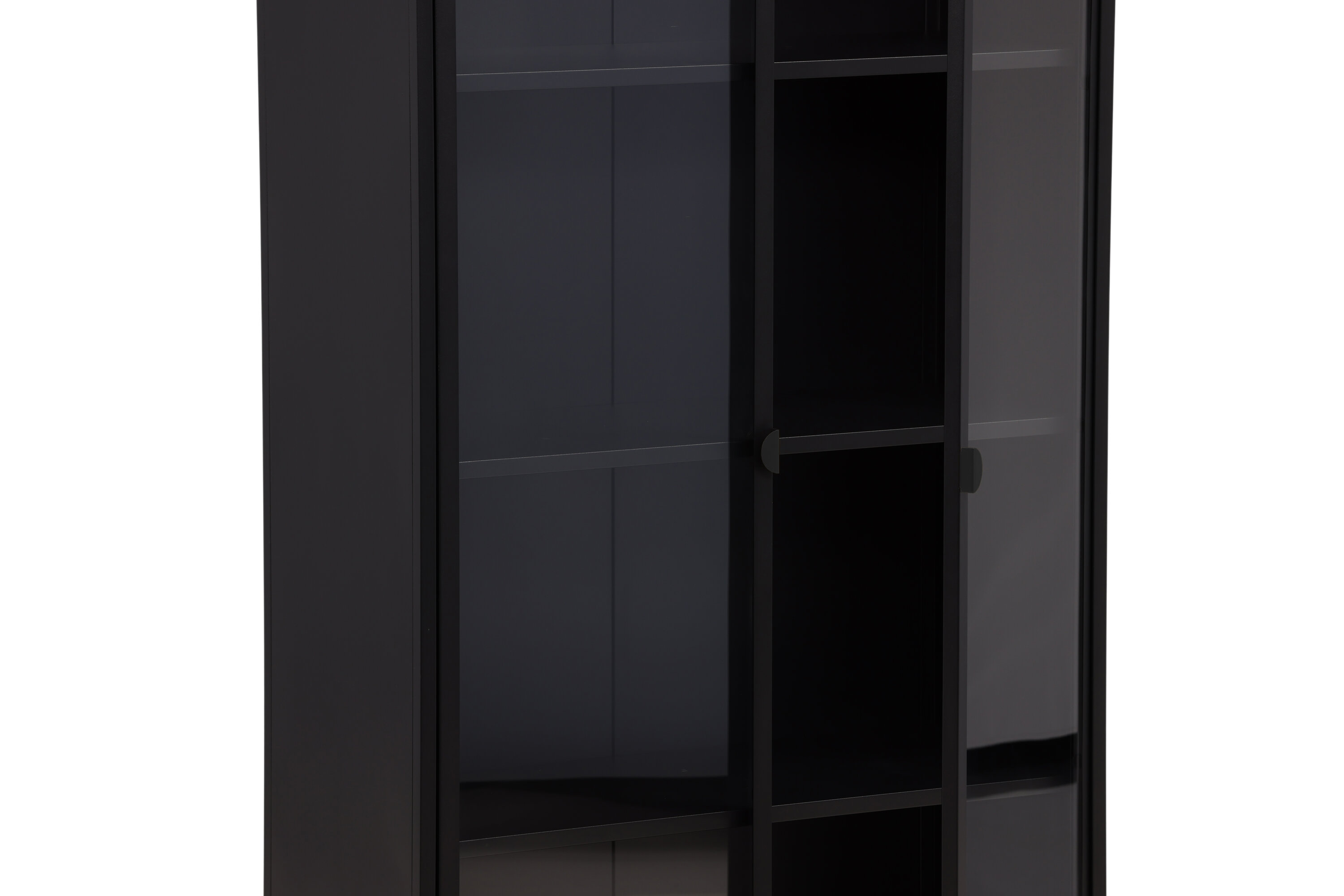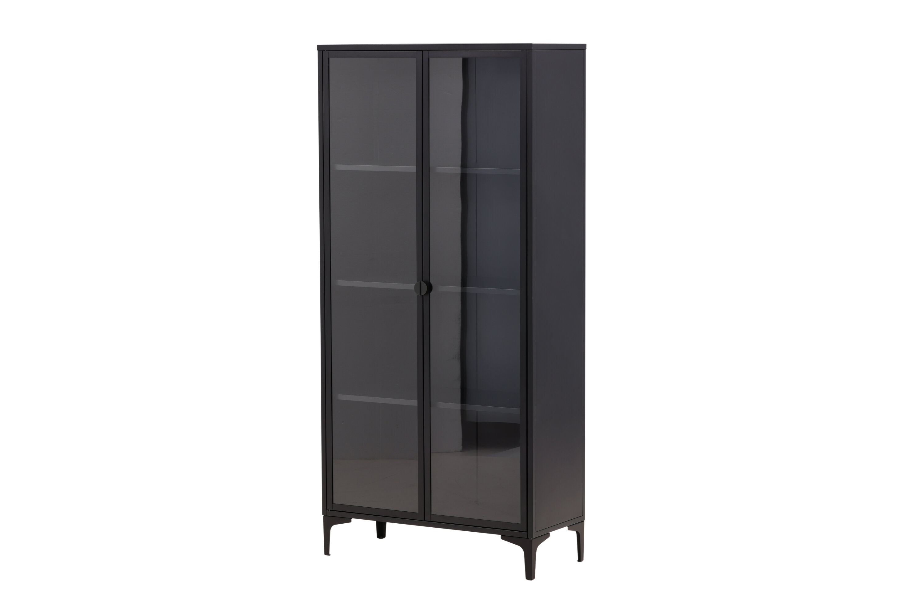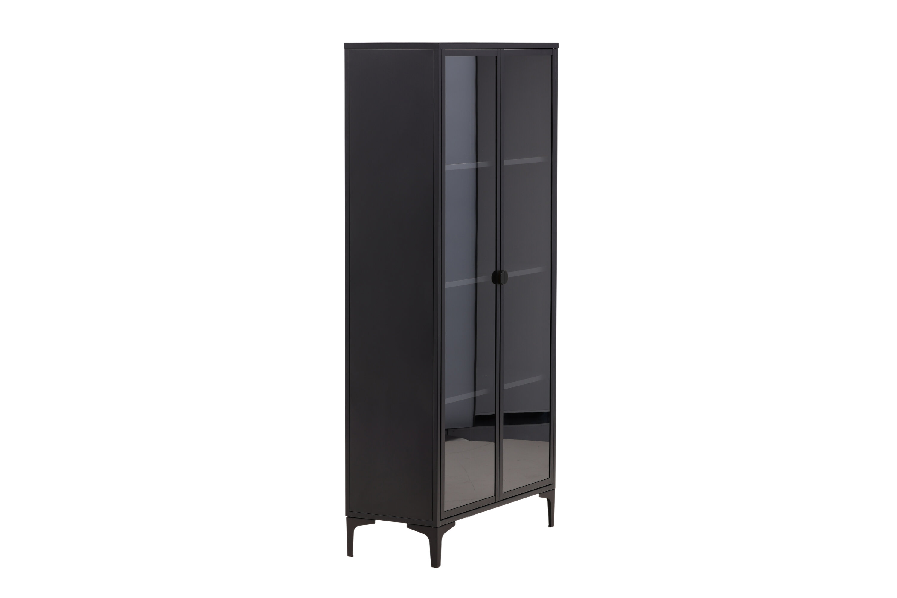 The display cabinet is a popular addition to the interior with elegant storage facilities! The cabinet from the Piring series has a modern design with straight structures, made of powder coated black steel. The cabinet has two tall glass doors that provide lovely light input in the cabinet and four relief surfaces for your fine porcelain or beautiful interior details. This is a display cabinet that offers the best of two worlds simply - choose what you want to show off and what needs smart storage. Easier assembly required!
