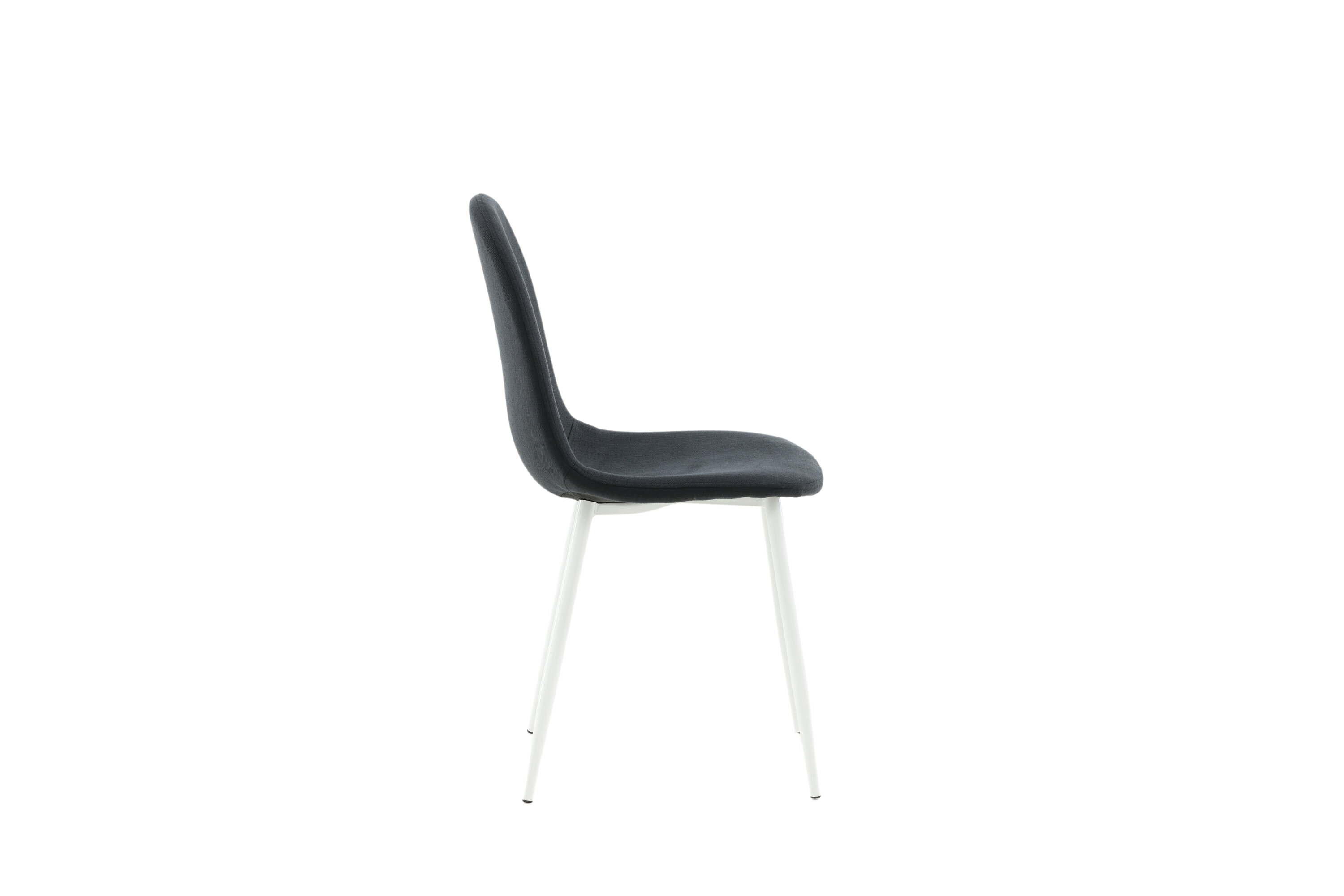 Let the time at the dining table become one of the highlights of the day! The dining chair from the Polar series has a rounded design with a classic look - as practical as it is timeless! Back and seat in padded black polyester fabric and legs in white powder-coated metal. Some assembly required. The sleek design makes the chair easy to match with other furnishings! Care instructions: Use fabric spray to impregnate the fabric before you start using it; this will also make any dirt and stains easier to remove in the future. Remove stains immediately; do not rub but try to gently absorb them with a cloth