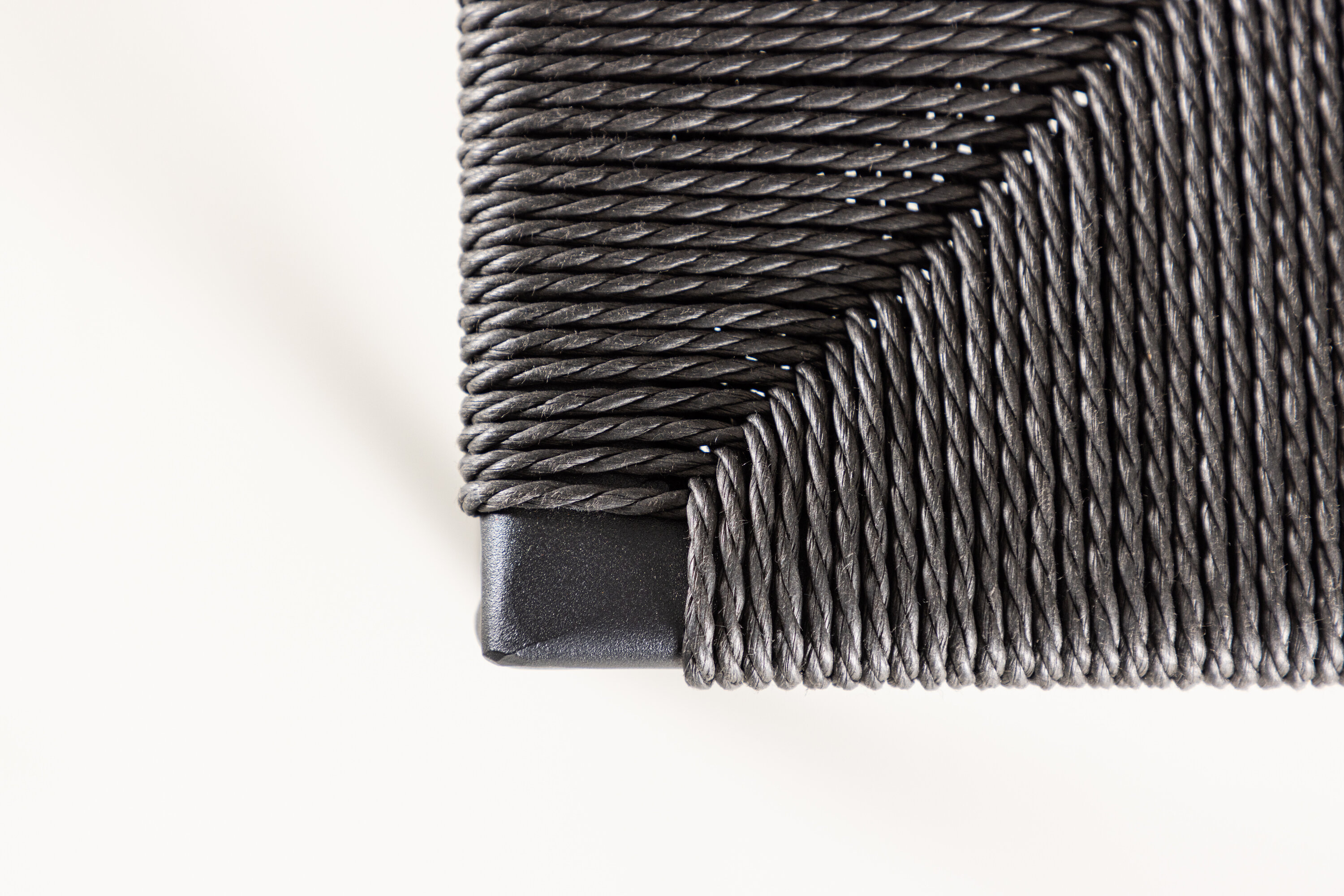 Discover the modern and elegant Polly bar stool. With its deep black color and sturdy steel legs, this bar stool is a perfect combination of style and function. The Polly bar stool is made of rope material, providing a unique and modern touch while also being comfortable to sit in. The steel legs provide stability, making it suitable for use in both home bar areas and commercial environments. The sleek design and deep black color make the Polly bar stool a versatile addition to any type of decor and room. Whether it's for enjoying a drink at the bar or creating a modern atmosphere in your home or business, the Polly bar stool will be a valued addition to your decor. Give your bar or kitchen island a modern touch with the elegant Polly bar stool.
