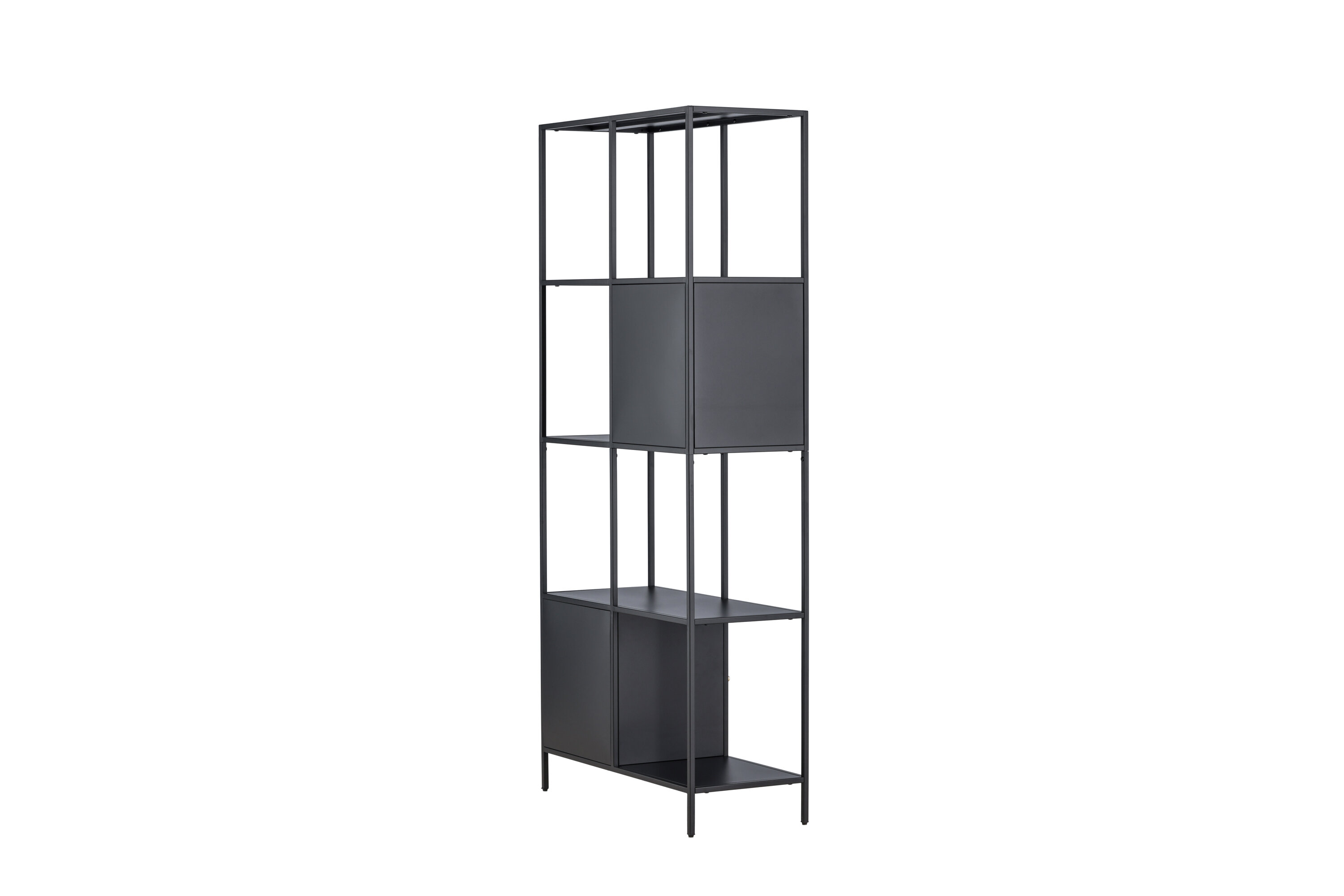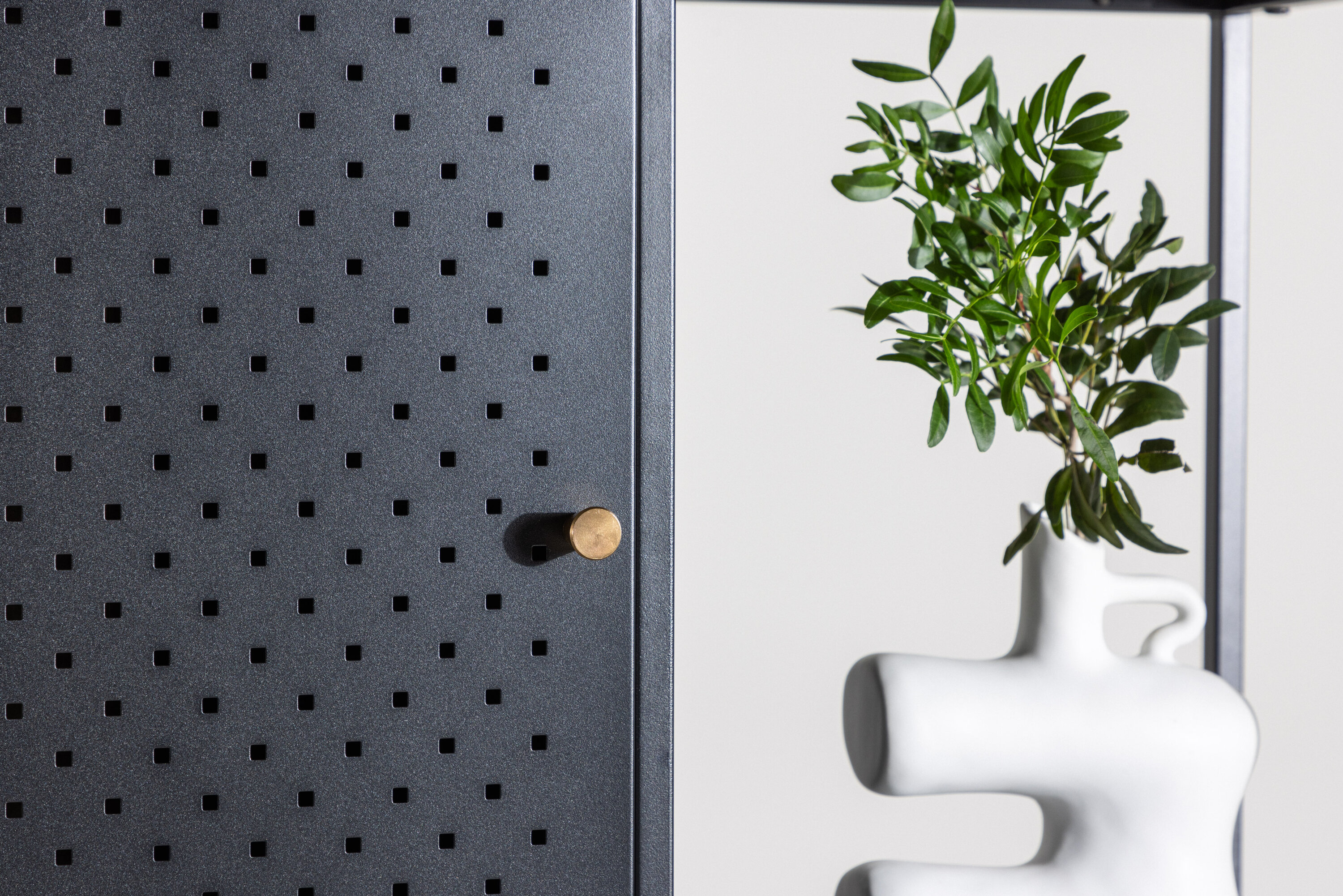 Porto Seguro is our wonderful tall shelf in black steel and Scandinavian style! This exceptional shelf is not just a storage furniture, it's a source of convenience and sleekness that will take your interior design to the next level. With its tall and narrow design, this shelf offers a unique combination of open and concealed storage on its four spacious shelves. Two cabinets placed at different heights with elegant brass-colored knobs provide a perfect place to hide away small items and create an organized surface. The open shelves are designed to showcase your beautiful decorations or candle holders, bringing a sense of coziness. This shelf becomes much more than just storage; it's an opportunity to shape your interior with both practical and aesthetic focus. Whether you're aiming for modern minimalism or a warm and welcoming atmosphere, the Porto Seguro Shelf will help you achieve your goals. Take inspiration from our images and let your creativity flow!