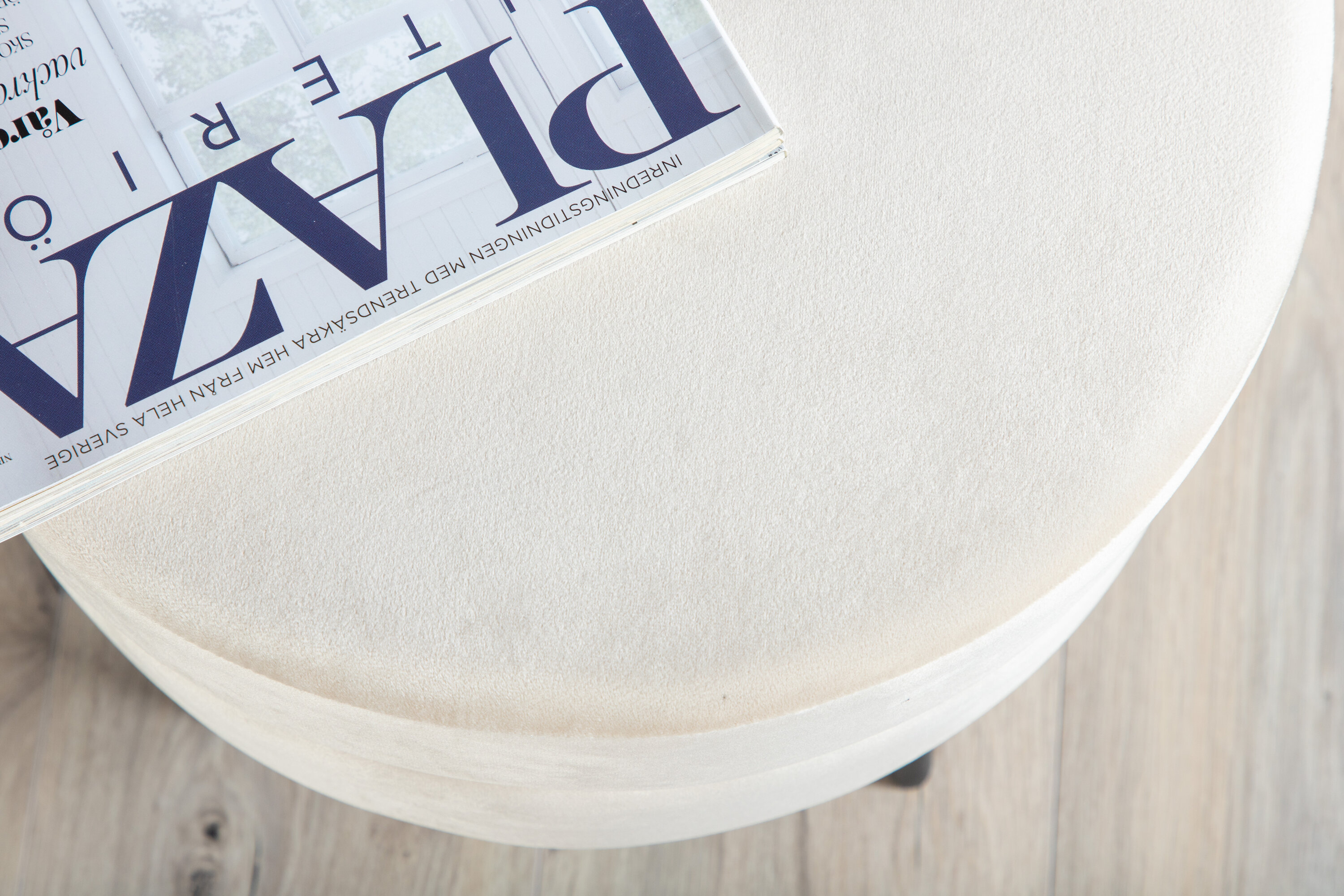 The seat puff Pot quickly creates an inviting atmosphere in the home! In its delicious bone -white color and velvety fabric, it gives a warm and stylish impression to the room it is placed in. The seat puff has a pretty, round design made of foam, cotton fiber, fabric, and bent wood. The slightly flared legs are in black steel and make the furniture feel a little more light and airy. Puffs Dimensions: Height: 40 cm, diameter: 40 cm. Use as an extra seat, footstool or relief area - it becomes a delicious interior detail in several rooms! Care advice: The velvet has a tendency to get pressure marks when the pile lies down. The imprints can make the fabric look worn out, which here is quite normal for this type of material. Depending on how the light falls, the fabric can change in most different shades.