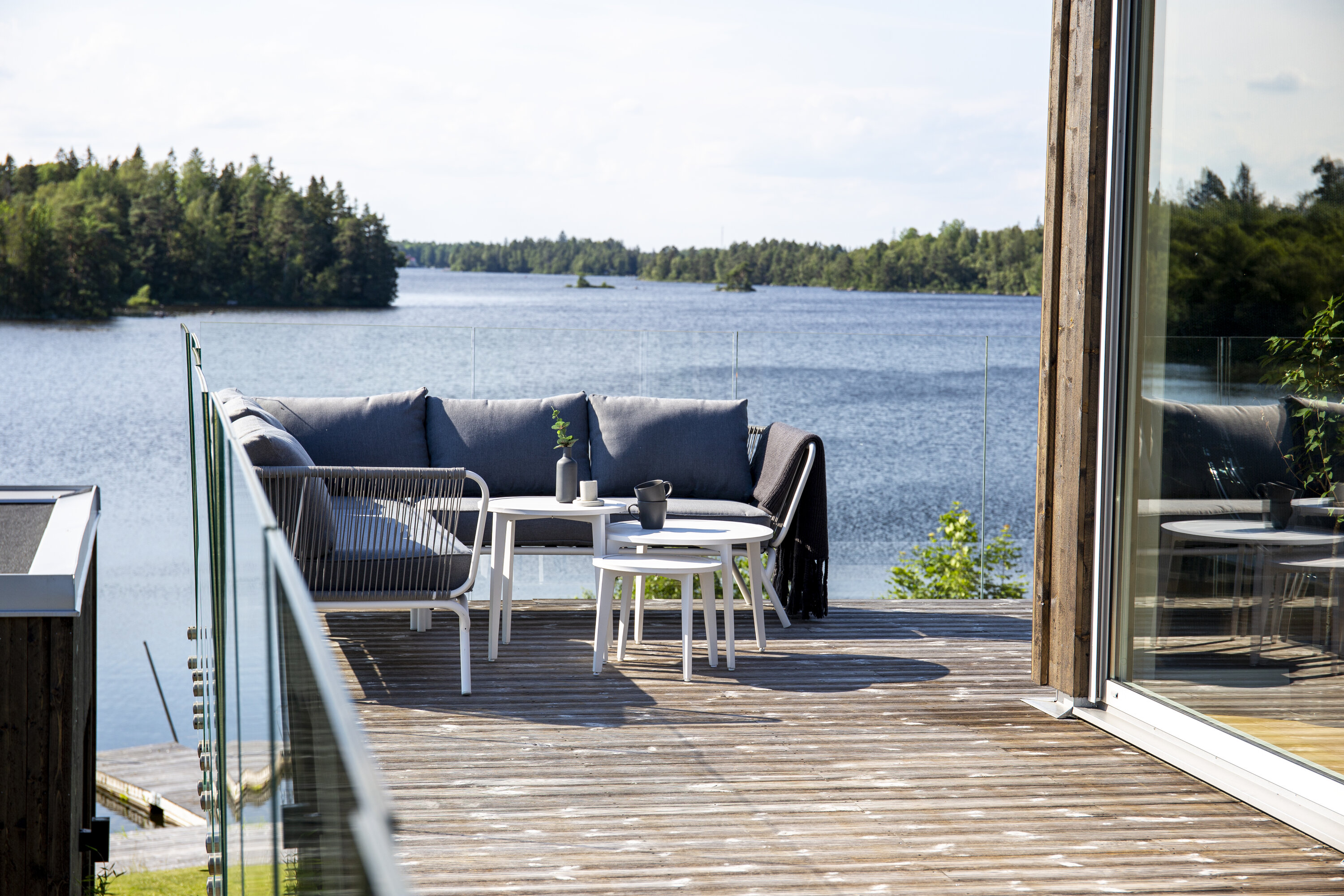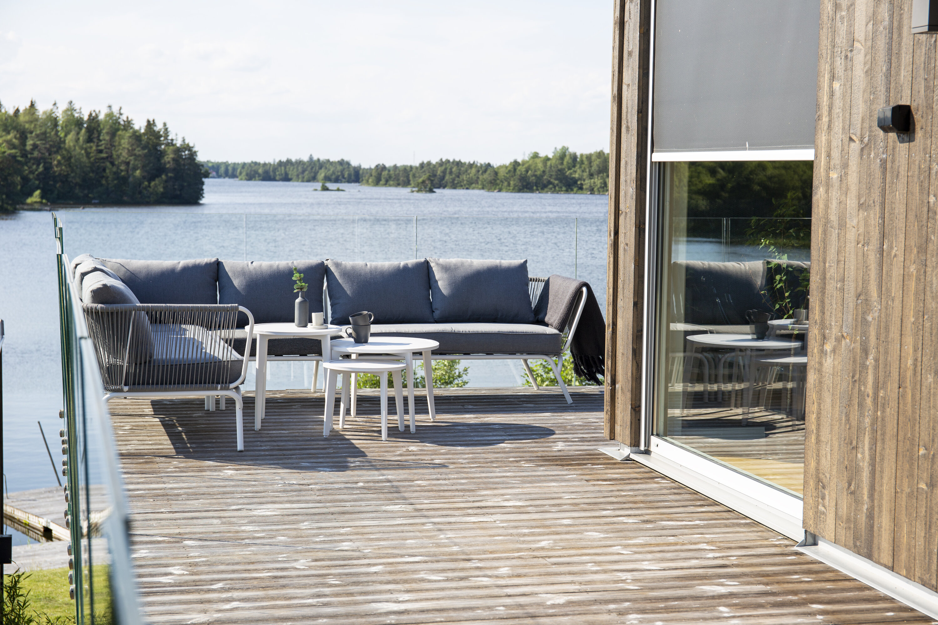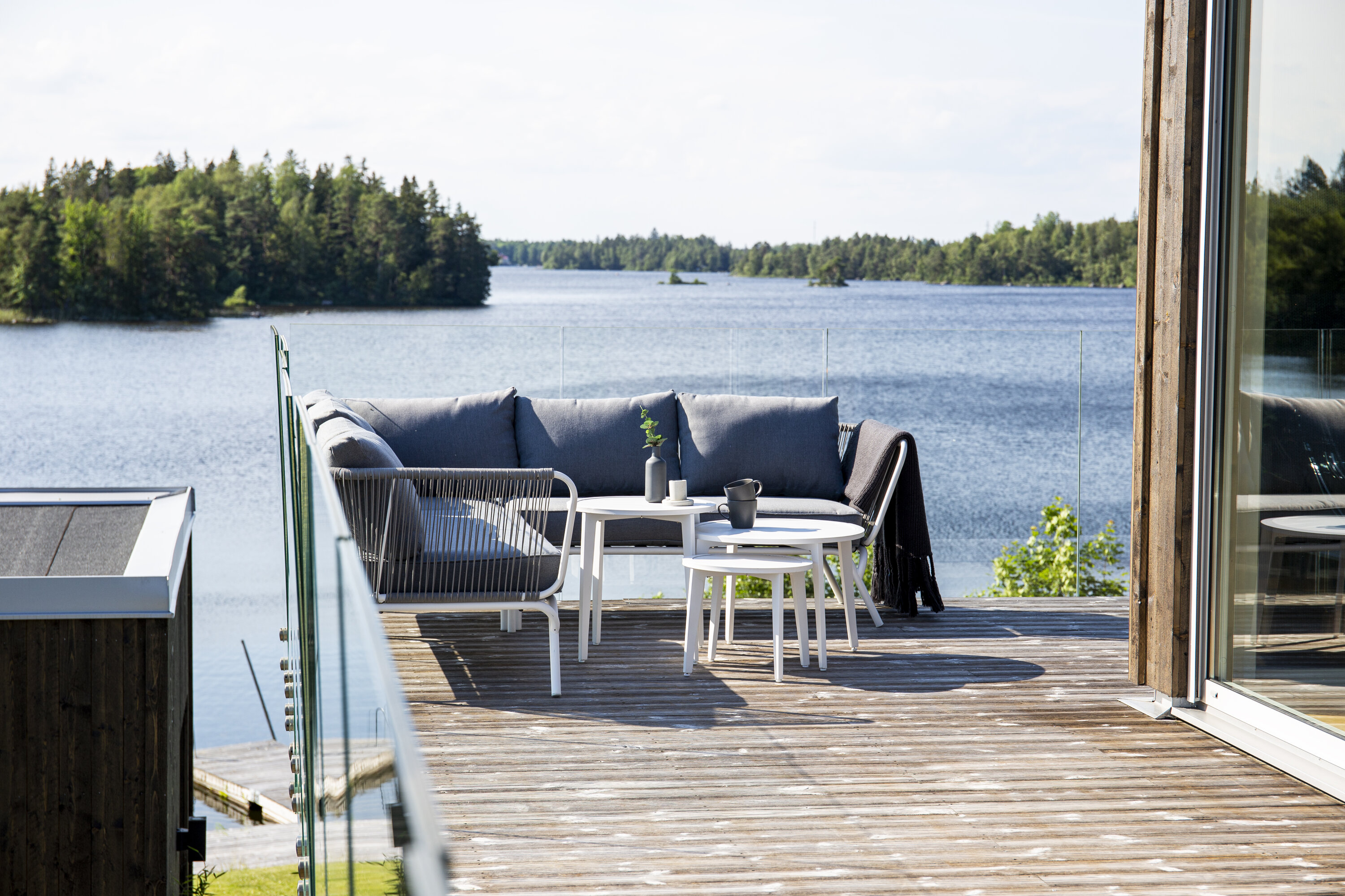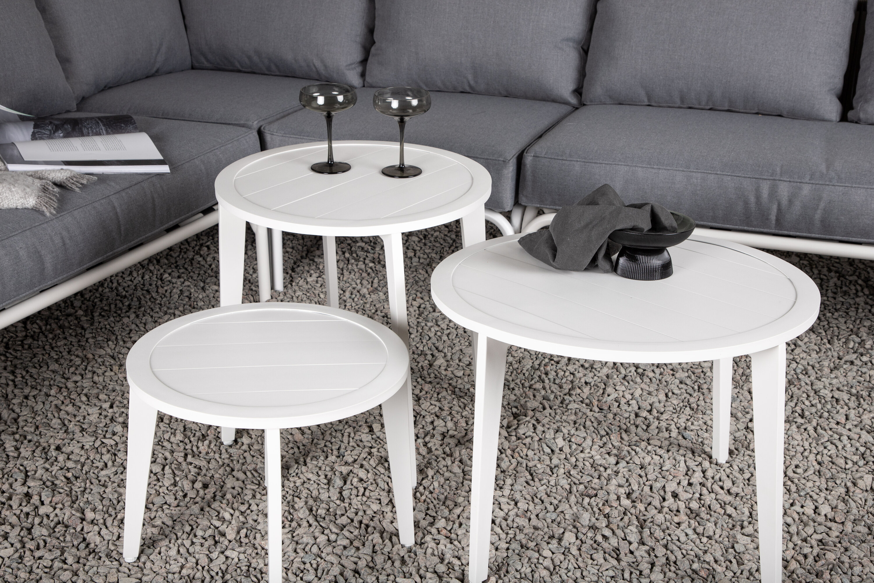 Create a cozy place to gather loved ones around this summer - here you sit relaxed and comfortable for hours! Roxo is a trendy sofa group in stylish design that is great for the patio or outdoor space. The sofa group consists of a corner sofa with 5 sit places and a corner part, made of a durable design in white powder coated metal with a back designed in light gray rope and stylish batch table in three parts in white powder coated metal. Gray soft cushions are included for the sofa group! Care advice: Outdoor furniture in aluminum and stainless steel should be cleaned regularly with water and mild soap. Always rinse thoroughly with plenty of water, which becomes extra important if the furniture is placed at a sea -close distance where salt can be transported through the air.