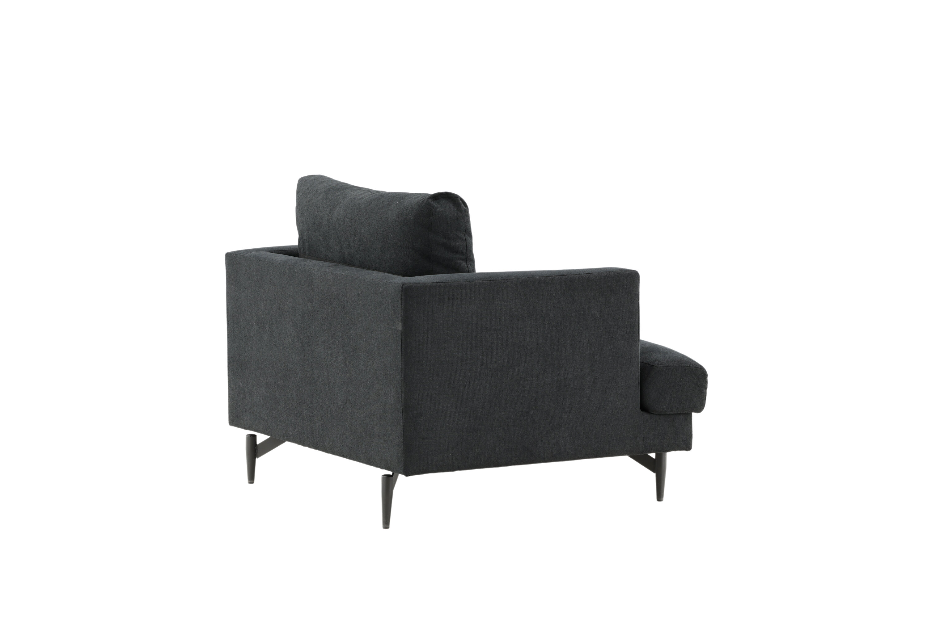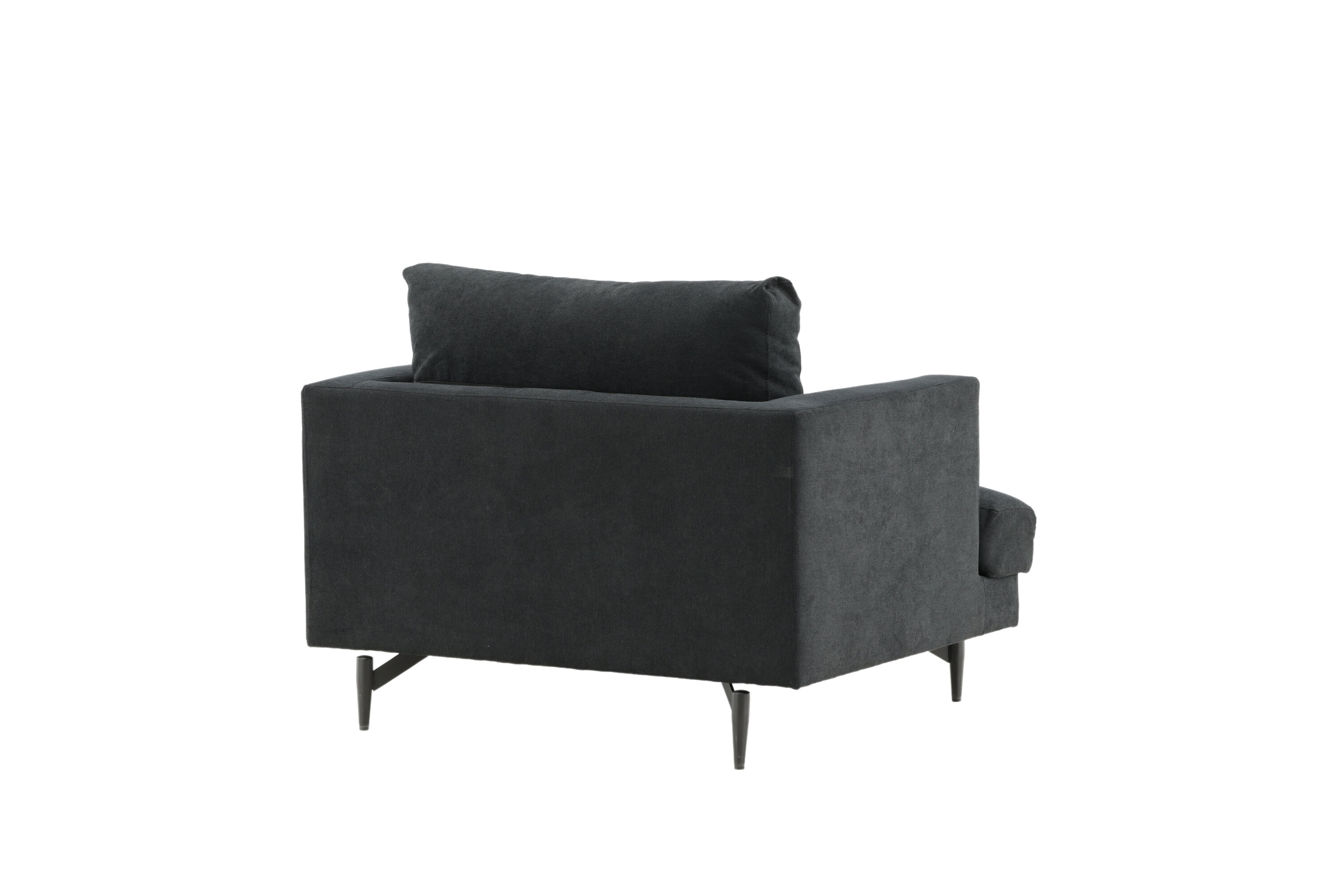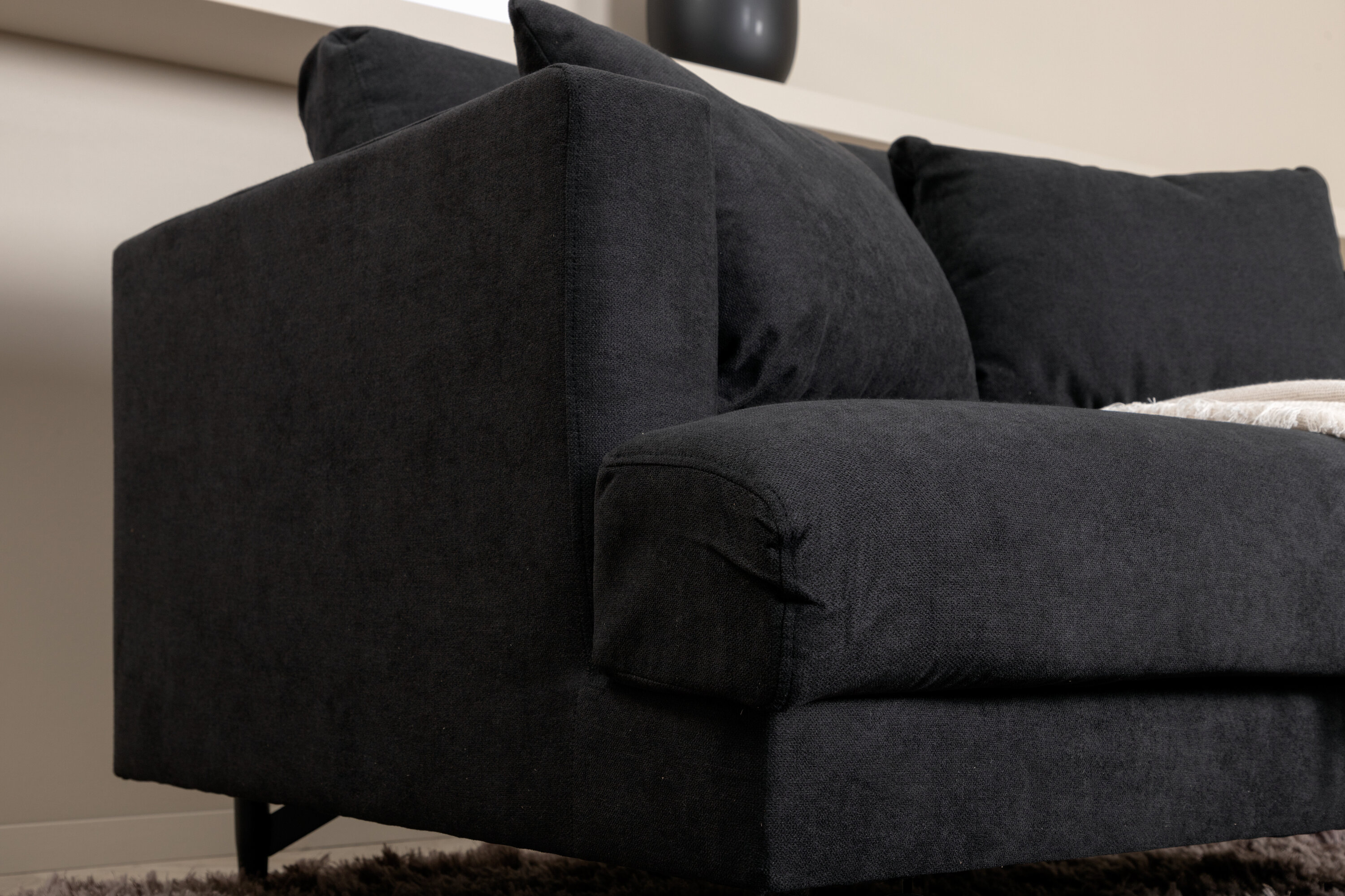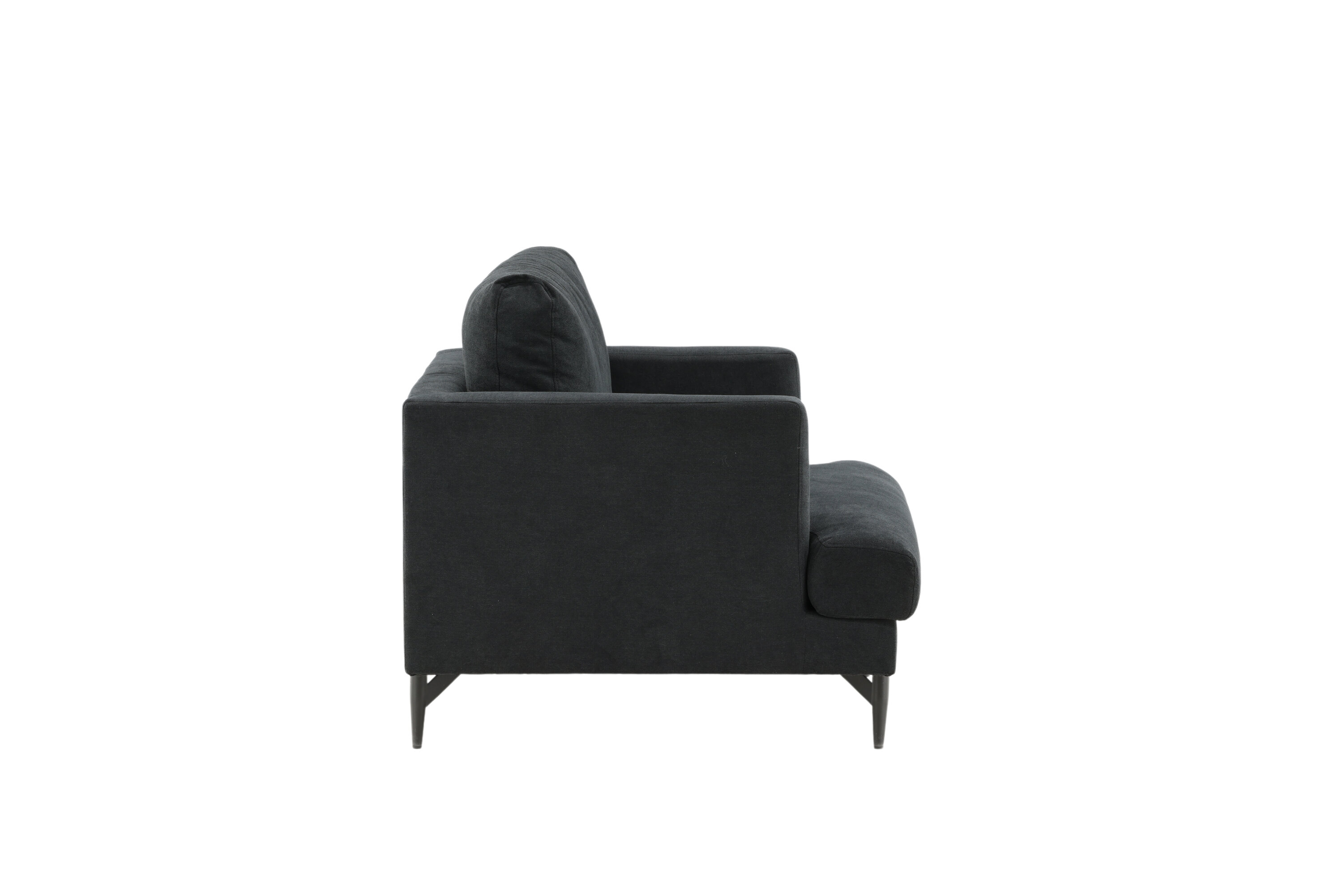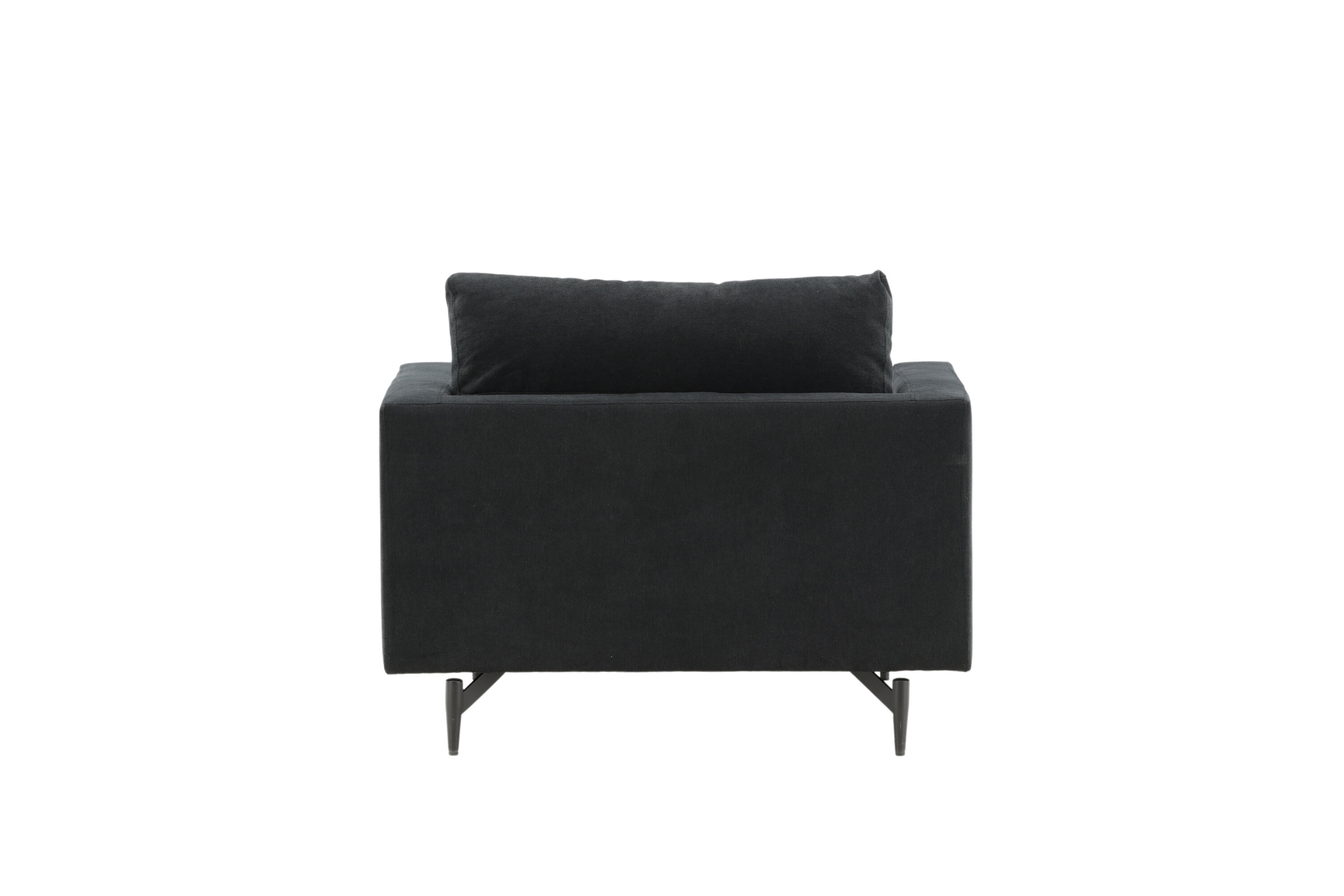 Decorate your home stylish, convenient and inviting with a cuddly armchair from the Sofia series! The design is minimalist with straight Nordic shapes, soft pillows and stylish clothing in polyester fabric cocky black color. The legs in black powder coated metal provide a nice lift to the armchair and contribute to a stylish eye -catcher. An incredibly well thought out overall design simply with a dressed back that allows to place the armchair in the middle of the room. Furnish alone as a style icon or in group together with a matching sofa group.