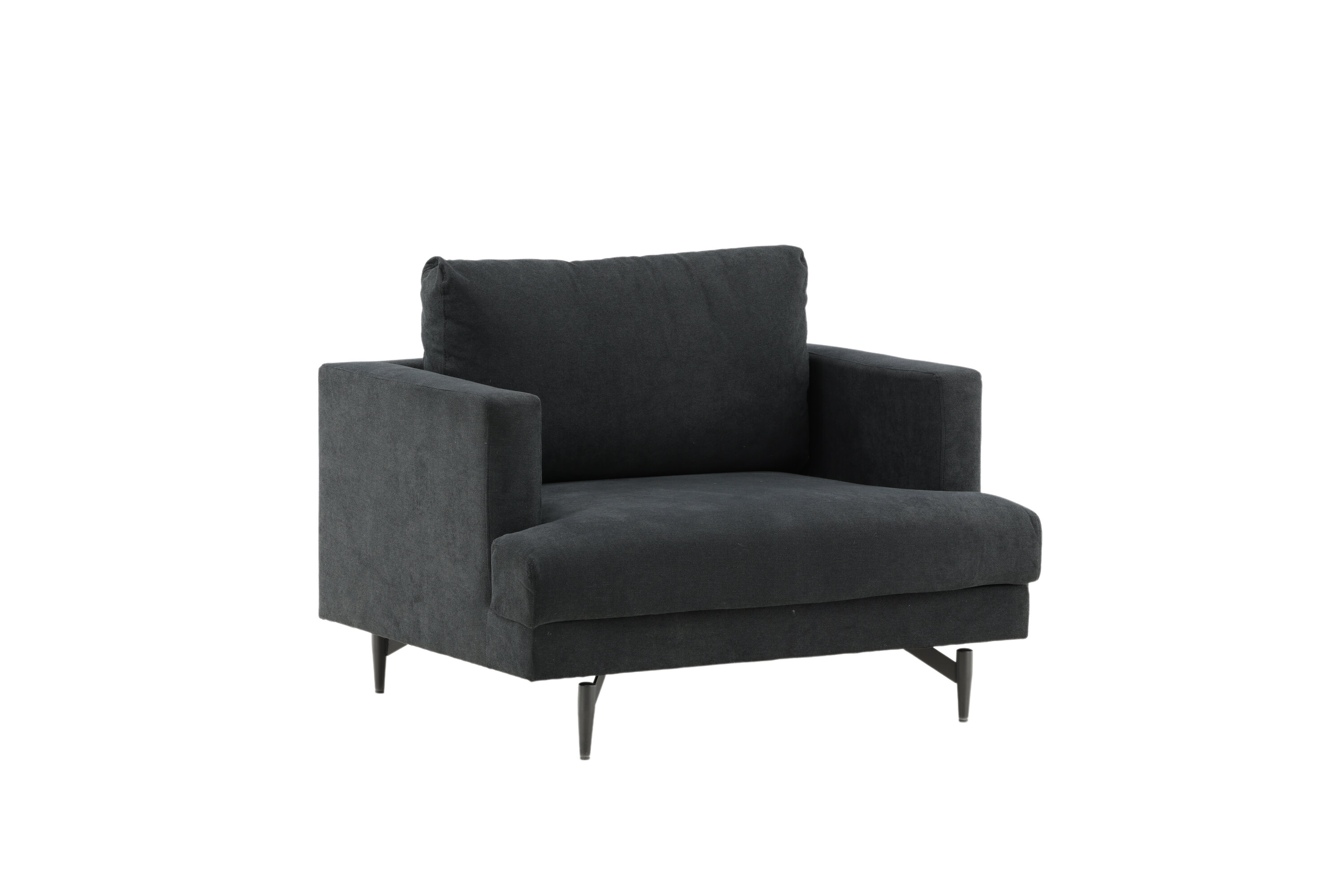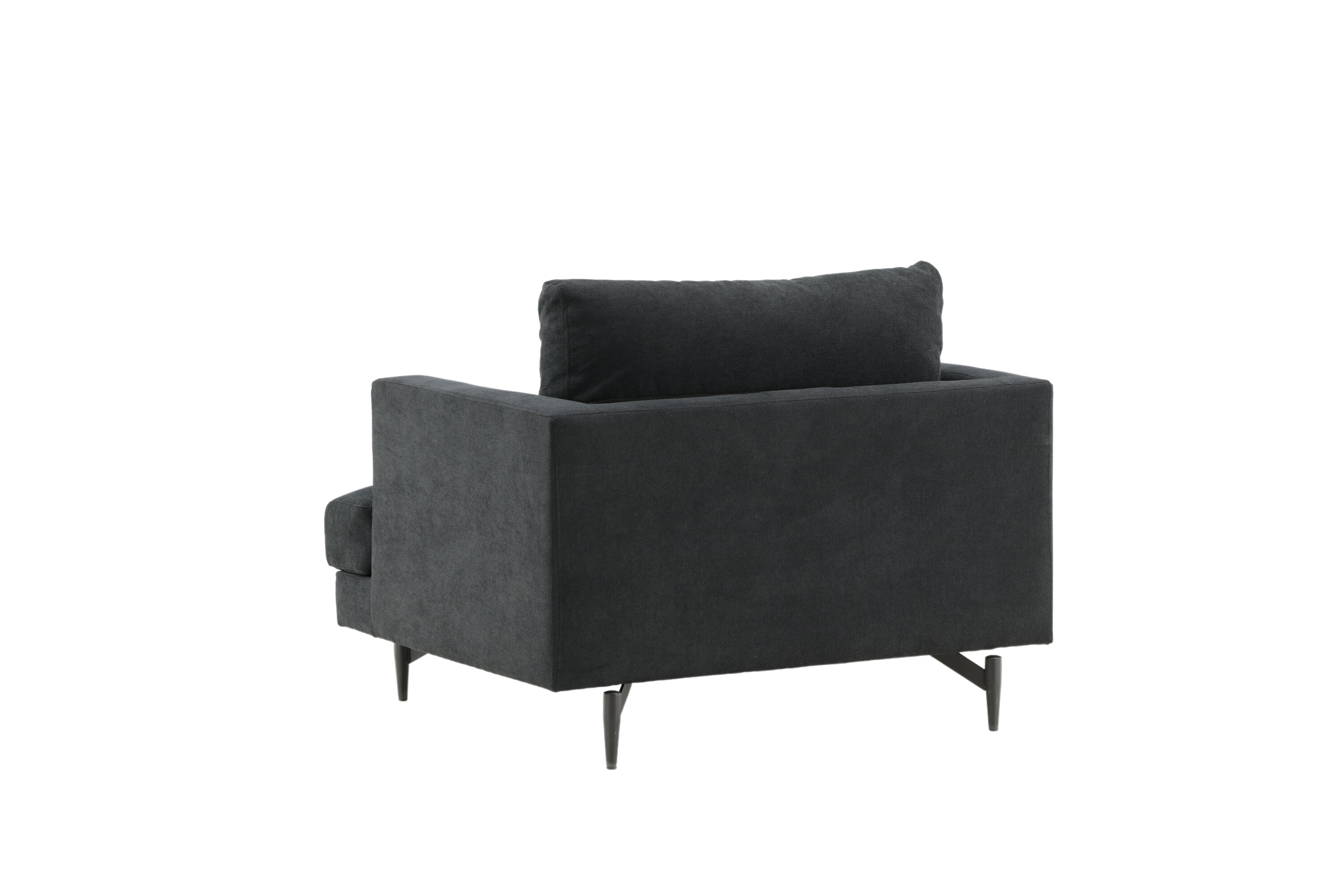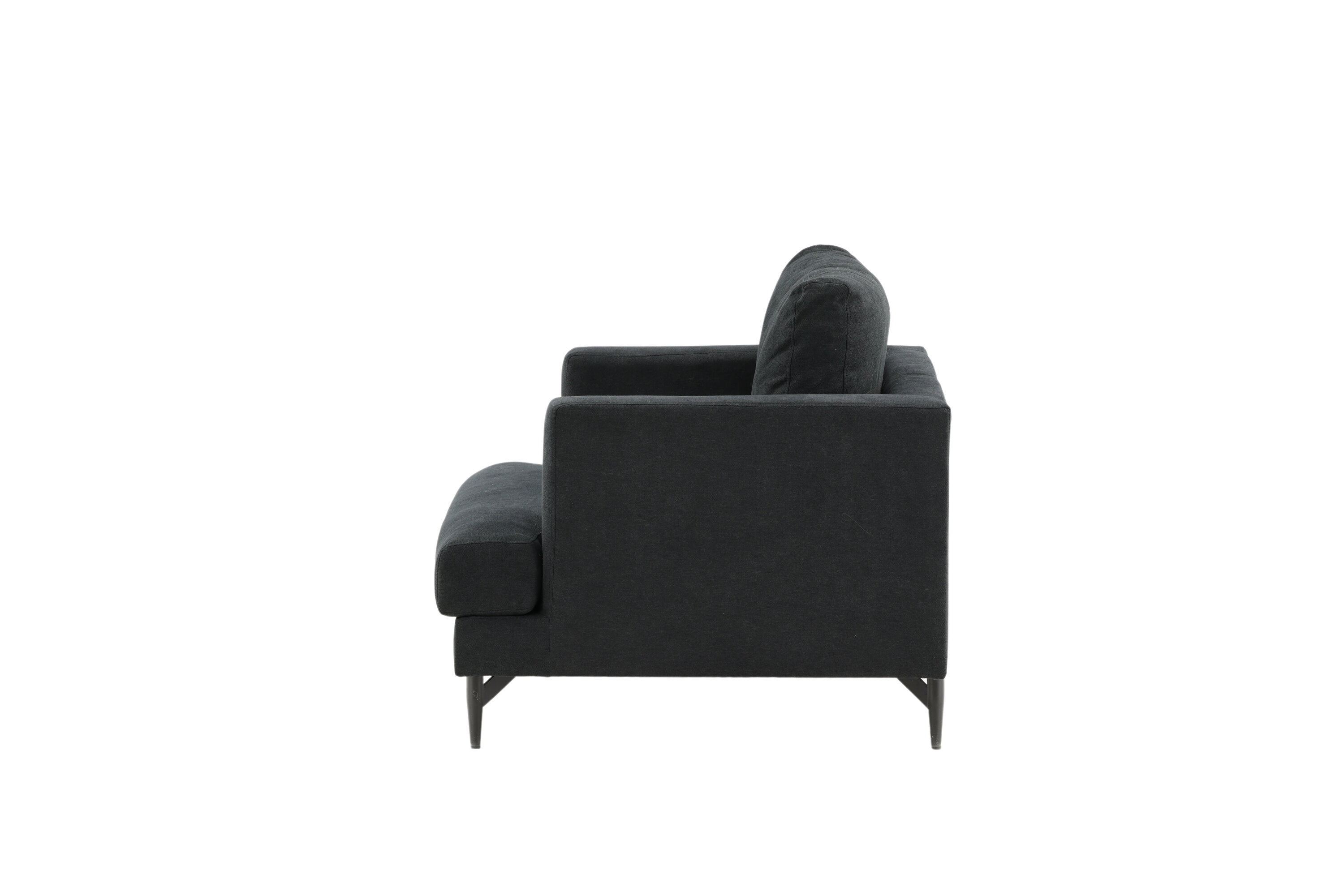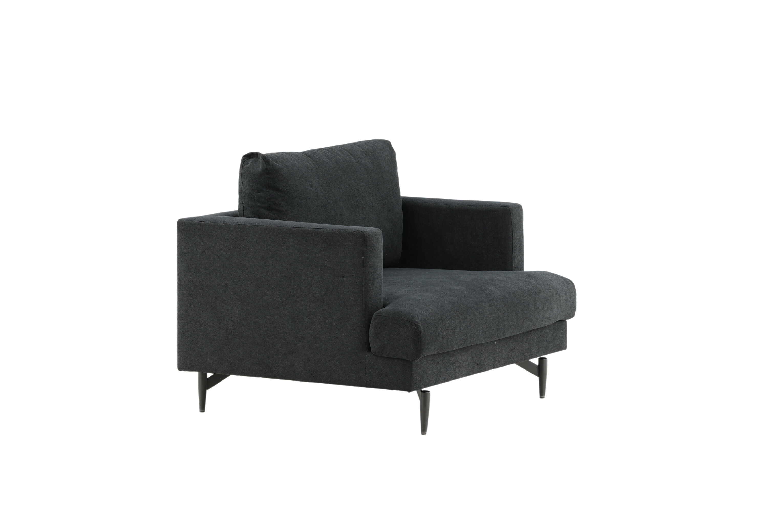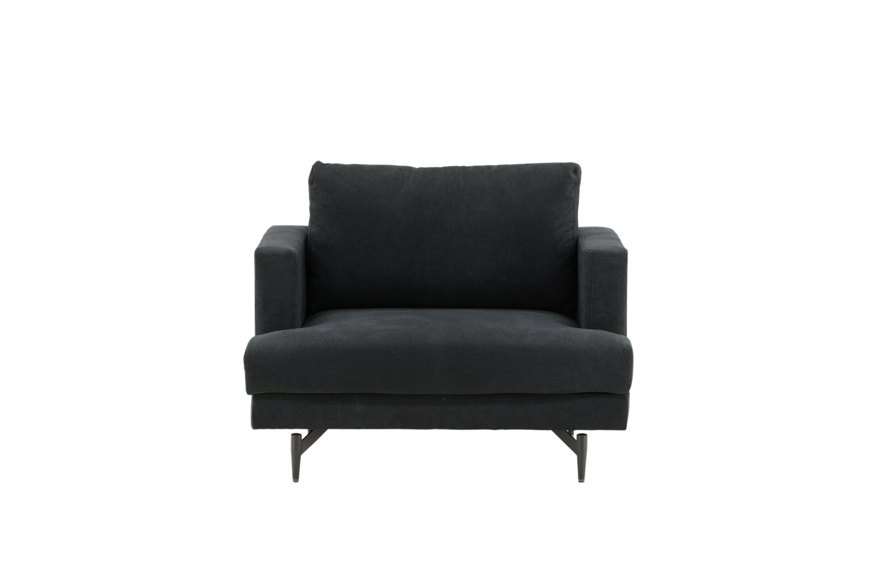 Decorate your home stylish, convenient and inviting with a cuddly armchair from the Sofia series! The design is minimalist with straight Nordic shapes, soft pillows and stylish clothing in polyester fabric cocky black color. The legs in black powder coated metal provide a nice lift to the armchair and contribute to a stylish eye -catcher. An incredibly well thought out overall design simply with a dressed back that allows to place the armchair in the middle of the room. Furnish alone as a style icon or in group together with a matching sofa group.