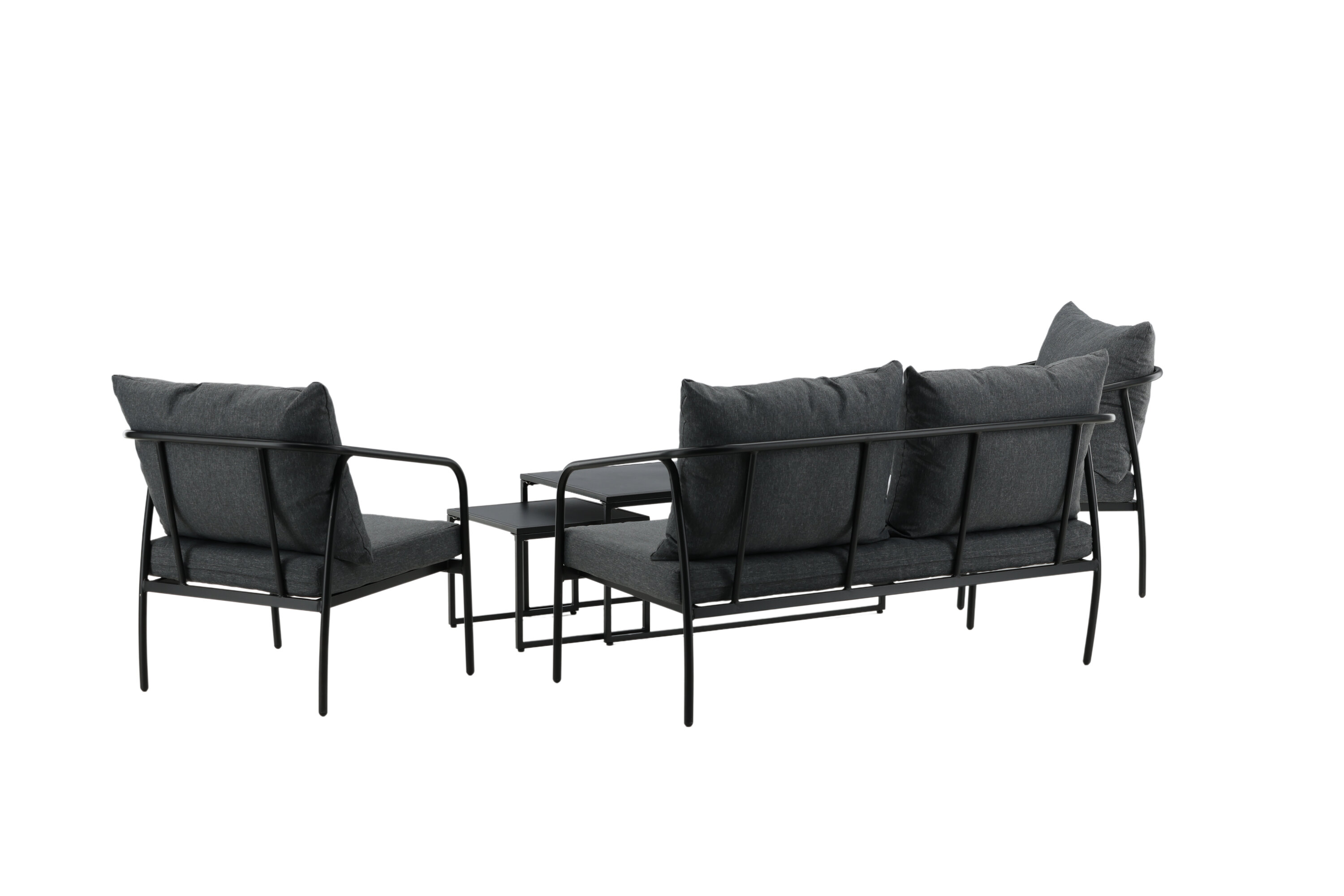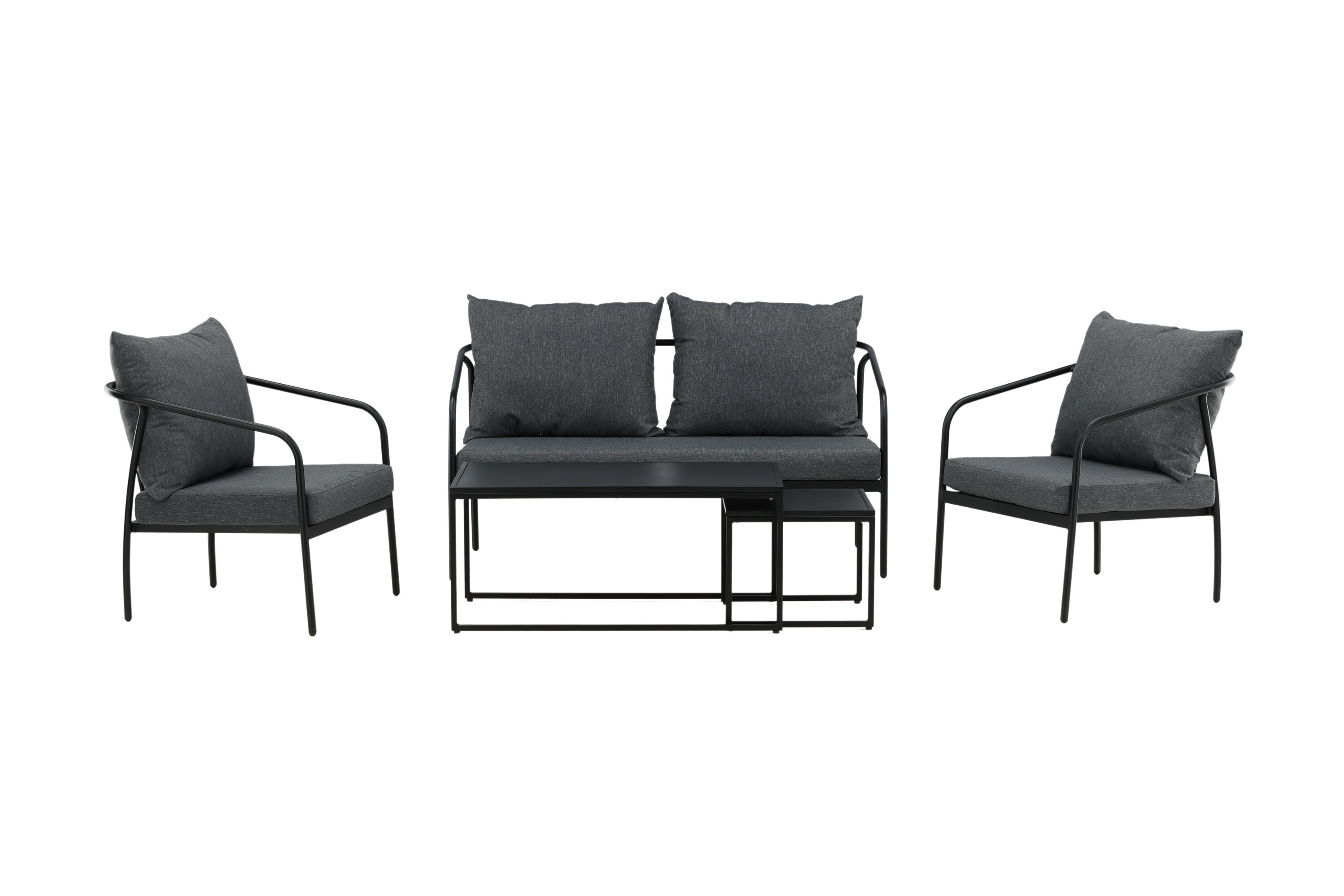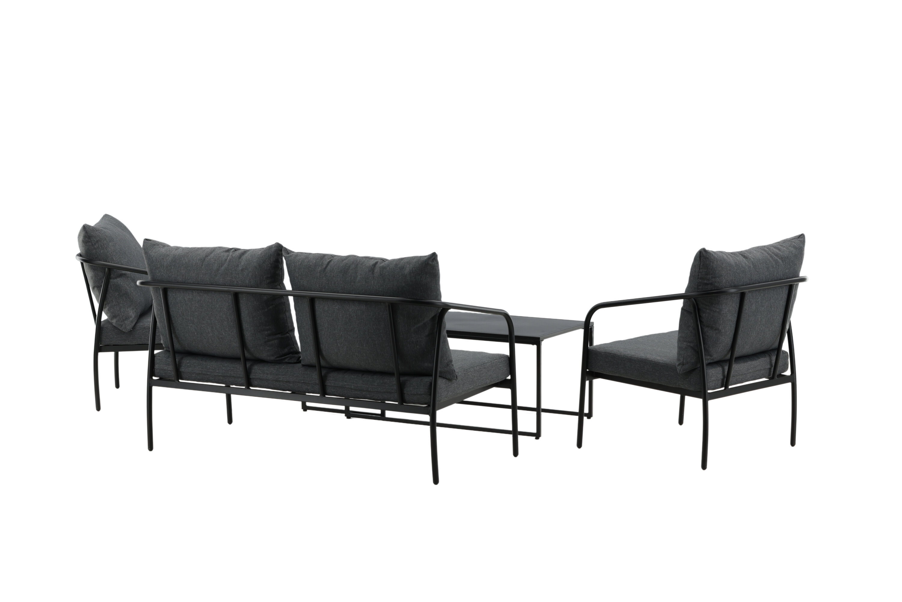 Sopot sofa group combines stylish design with high comfort - Create the perfect atmosphere on your patio this summer! Two sites sofa and armchairs have straight Nordic shapes with black steel frame and a matching coffee table are included. Furnish the patio with an inviting sofa group and get the clean lounge group. Care advice: Steel is a material that is rejected against dirt and liquids. However, you need to be aware that water should cause stains and rust. Therefore, make sure to wipe the surface with a soft moistened cloth and soap water, to avoid the material rusting.