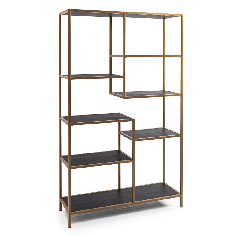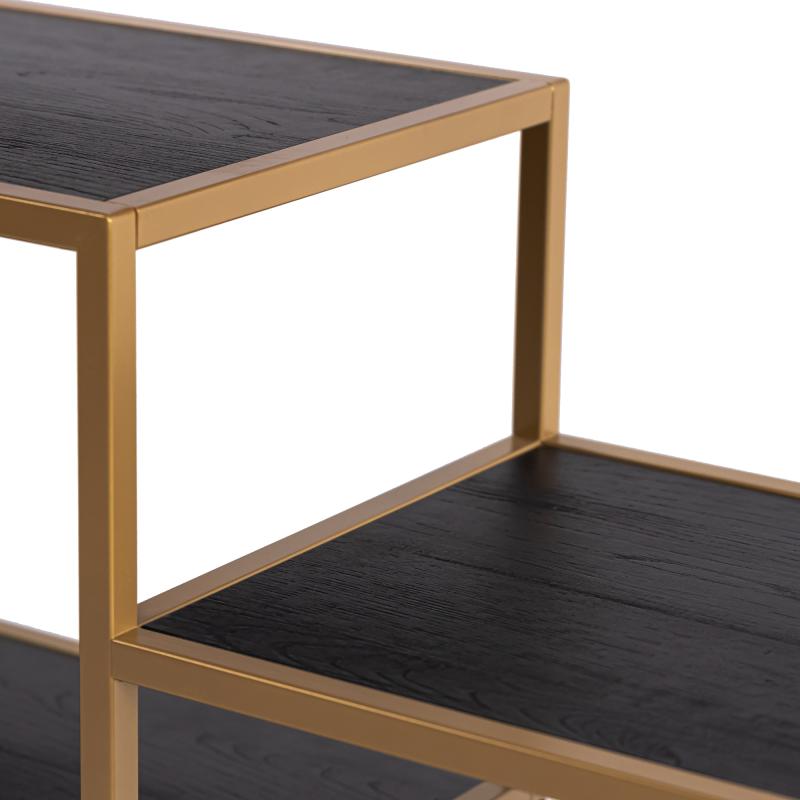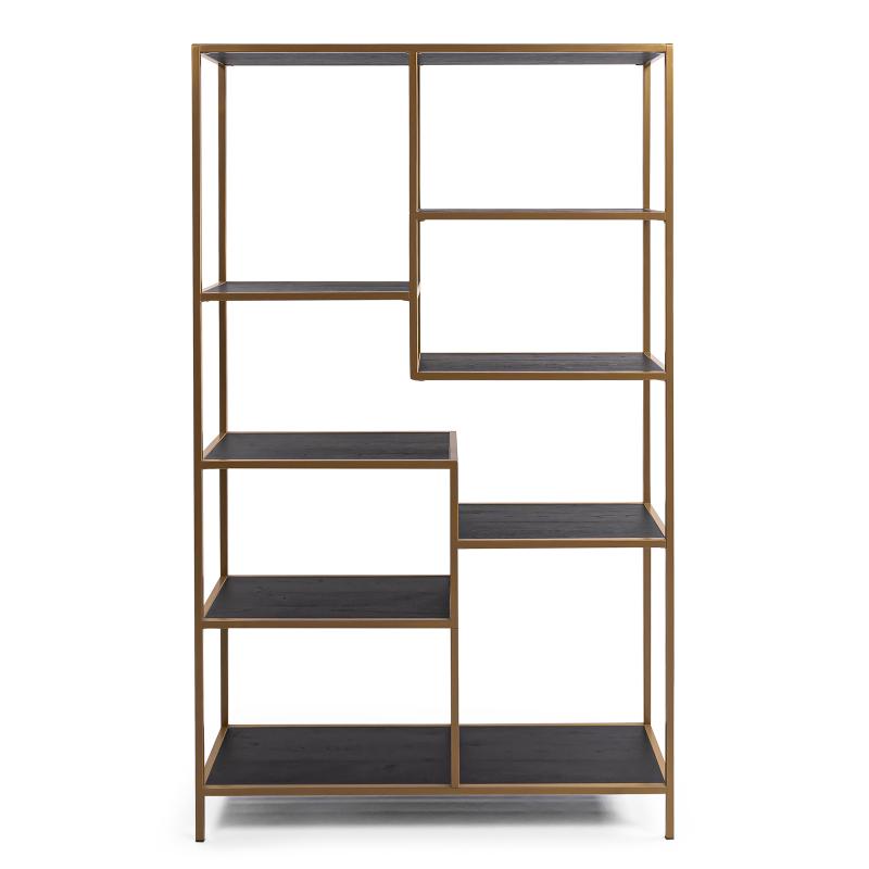 Deze eigentijdse vakkenkast van het Nederlandse merk Stalux is perfect voor elk modern huis. Hij heeft een strak goud kleurig stalen frame en exclusieve FSC-houten ingelegde bladen met een zwart eiken look, waardoor hij er stijlvol en verfijnd uitziet. Het is geproduceerd in Nederland met duurzame materialen zoals gepoedercoat staal en FSC-hout, waardoor het een milieuvriendelijke keuze is en volledig onderhoudsvrij. De kast is verkrijgbaar 2 in breedte maten: 80cm en 120cm. Deze kast zal een opvallende toevoeging aan je huis zijn waar je jarenlang van kunt genieten!