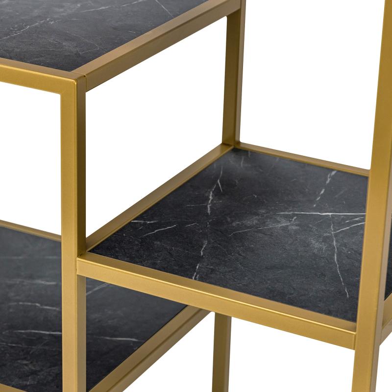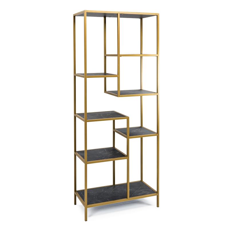 Deze eigentijdse vakkenkast van het Nederlandse merk Stalux is perfect voor elk modern huis. Hij heeft een strak goud kleurig stalen frame en exclusieve FSC-houten ingelegde bladen met een zwart marmerlook, waardoor hij er stijlvol en verfijnd uitziet. Het is geproduceerd in Nederland met circulaire materialen zoals gepoedercoat staal en FSC-hout, waardoor het een milieuvriendelijke keuze is en volledig onderhoudsvrij. De kast is verkrijgbaar 2 in breedte maten: 80cm en 120cm. Deze kast zal een opvallende toevoeging aan je huis zijn waar je jarenlang van kunt genieten!