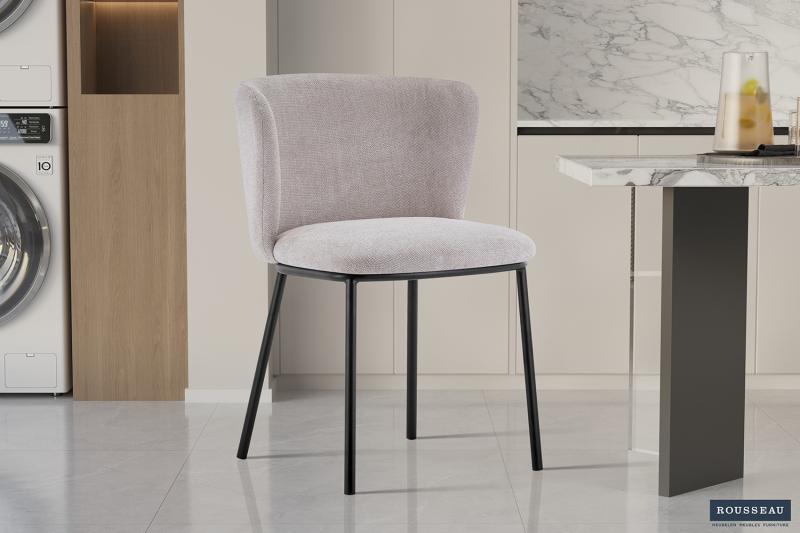 Dankzij de stevige metalen poten geniet je van stabiliteit en duurzaamheid, terwijl het compacte ontwerp met een hoogte van 76 cm en een breedte van 52 cm ideaal is voor kleinere ruimtes. De zachte bekleding zorgt voor een aangename zitervaring, ideaal voor lange diners of gezellige avonden.
