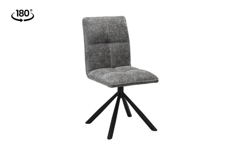 Het strak en modern design van de stoel wordt geaccentueerd door zijn robuuste metalen poten. Deze zorgen voor stabiliteit en een lichte industriële look, terwijl de zachte stoffen bekleding een uitnodigende sfeer creëert. Of je nu dineert met familie of gasten ontvangt, deze stoel laat een blijvende indruk achter.