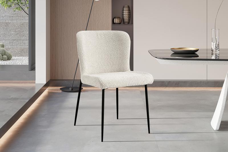 Breng een vleugje elegantie en comfort naar uw eetkamer met deze stijlvolle stoel. Ontworpen met een verfijnde bouclé stof, combineert deze stoel moeiteloos modern design met ongeëvenaard zitcomfort.