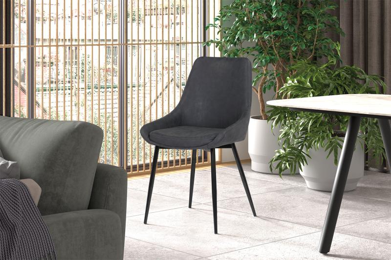 Met zijn slanke metalen poten geeft deze stoel een moderne touch aan elke interieurstijl. De zwarte metalen afwerking is niet alleen robuust, maar ook een visueel statement, perfect passend bij diverse tafels of bureaus. De zorgvuldig vormgegeven structuur draagt bij aan een stijlvolle en stevige zithouding.