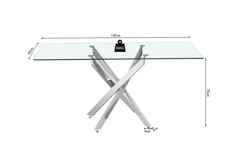 Tafel 'Lasi' 160 cm Glas, Poten Chroom (2c)