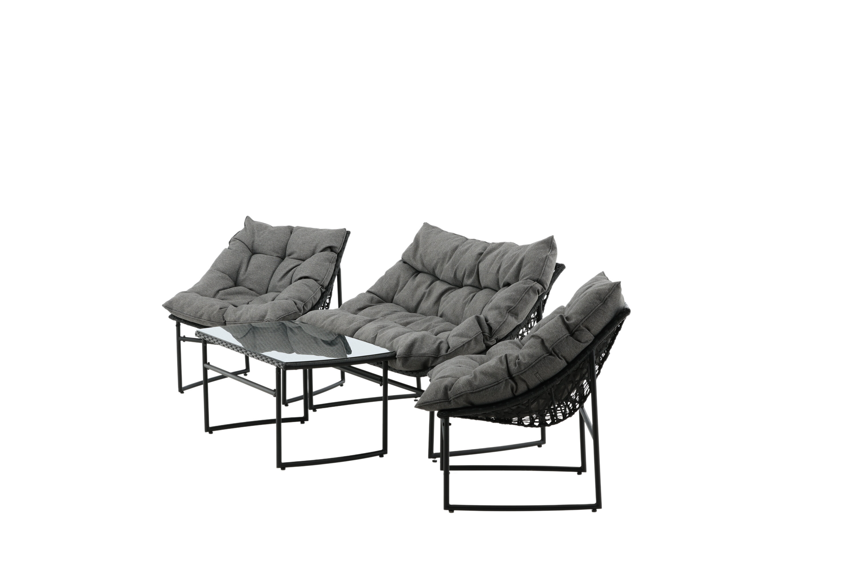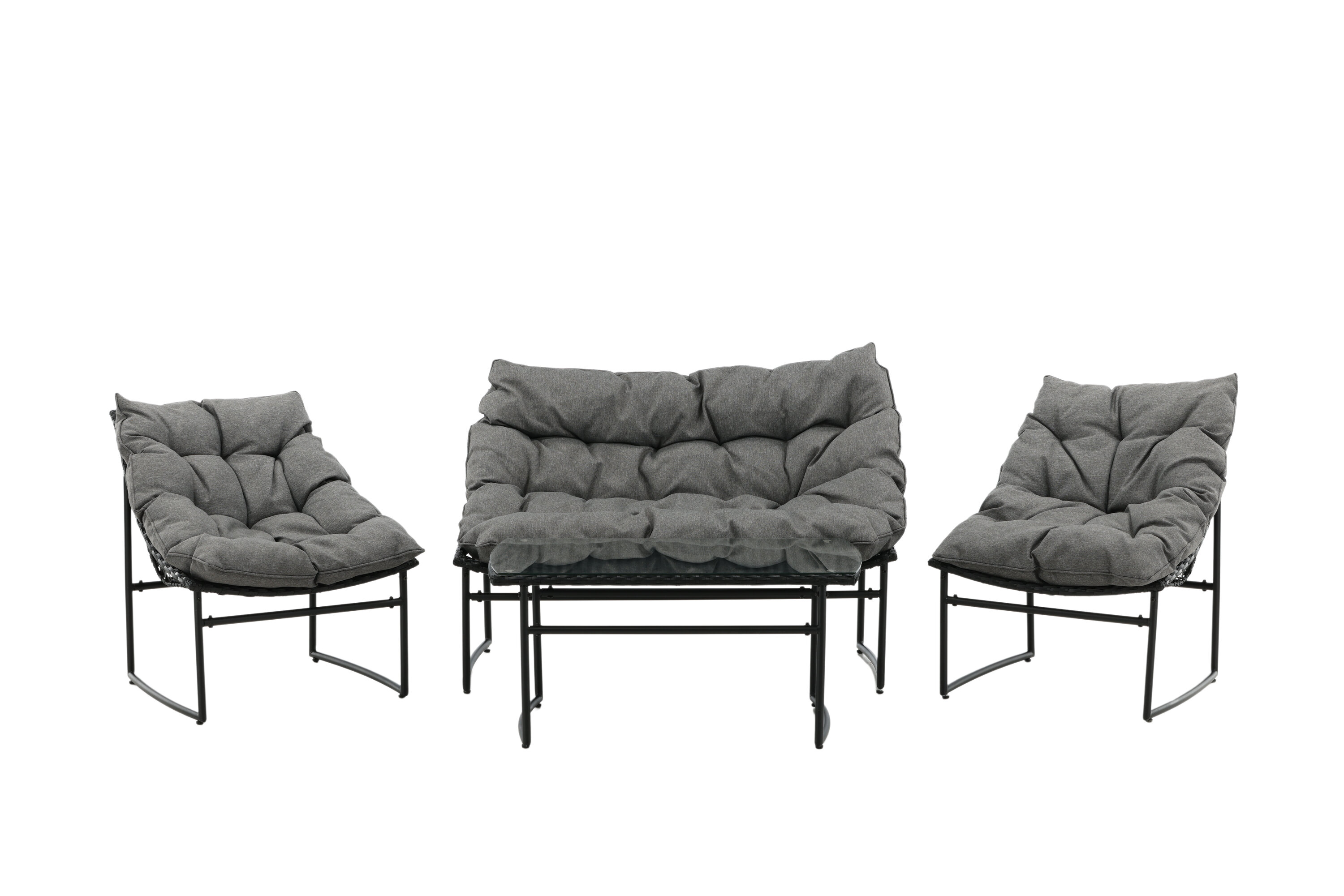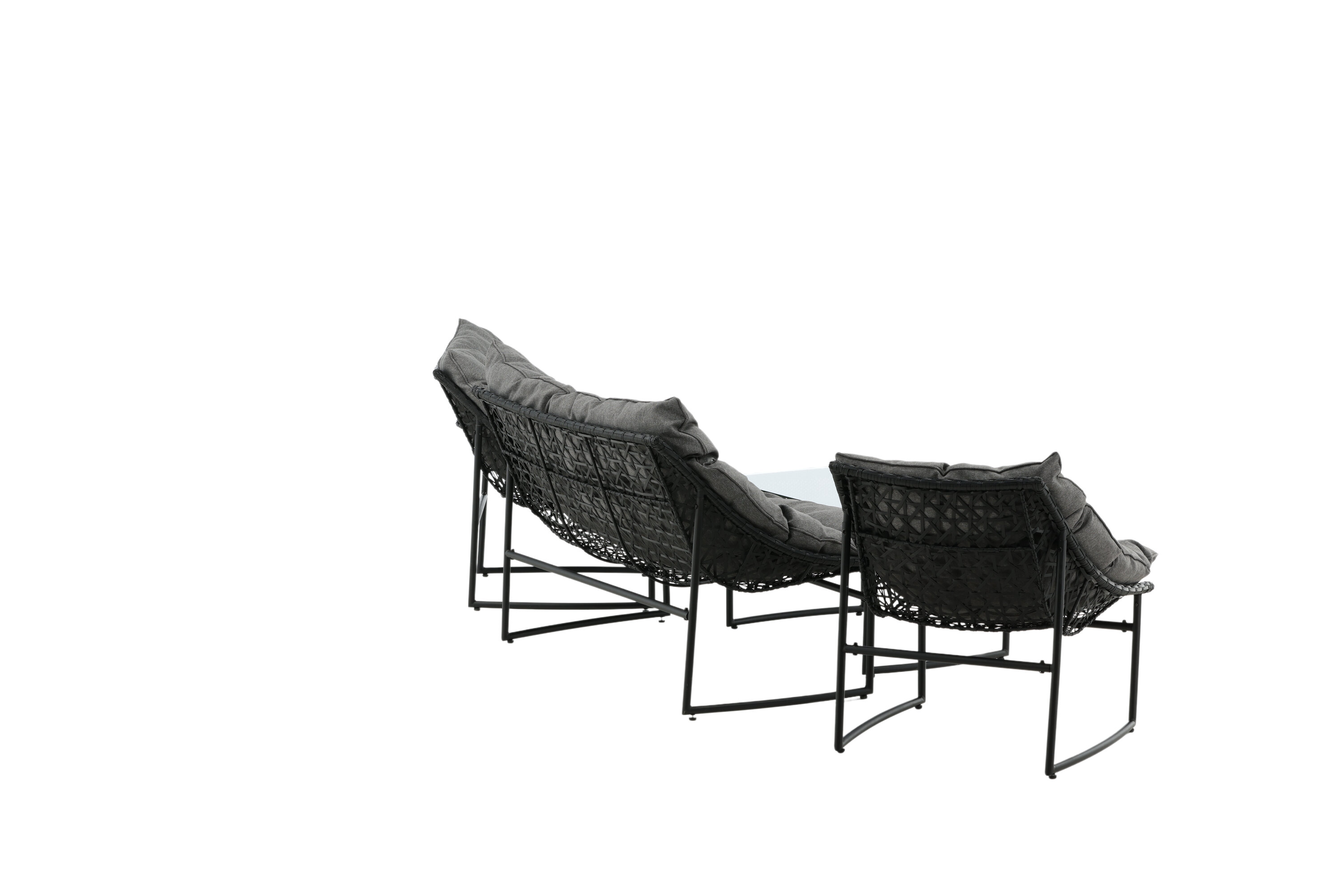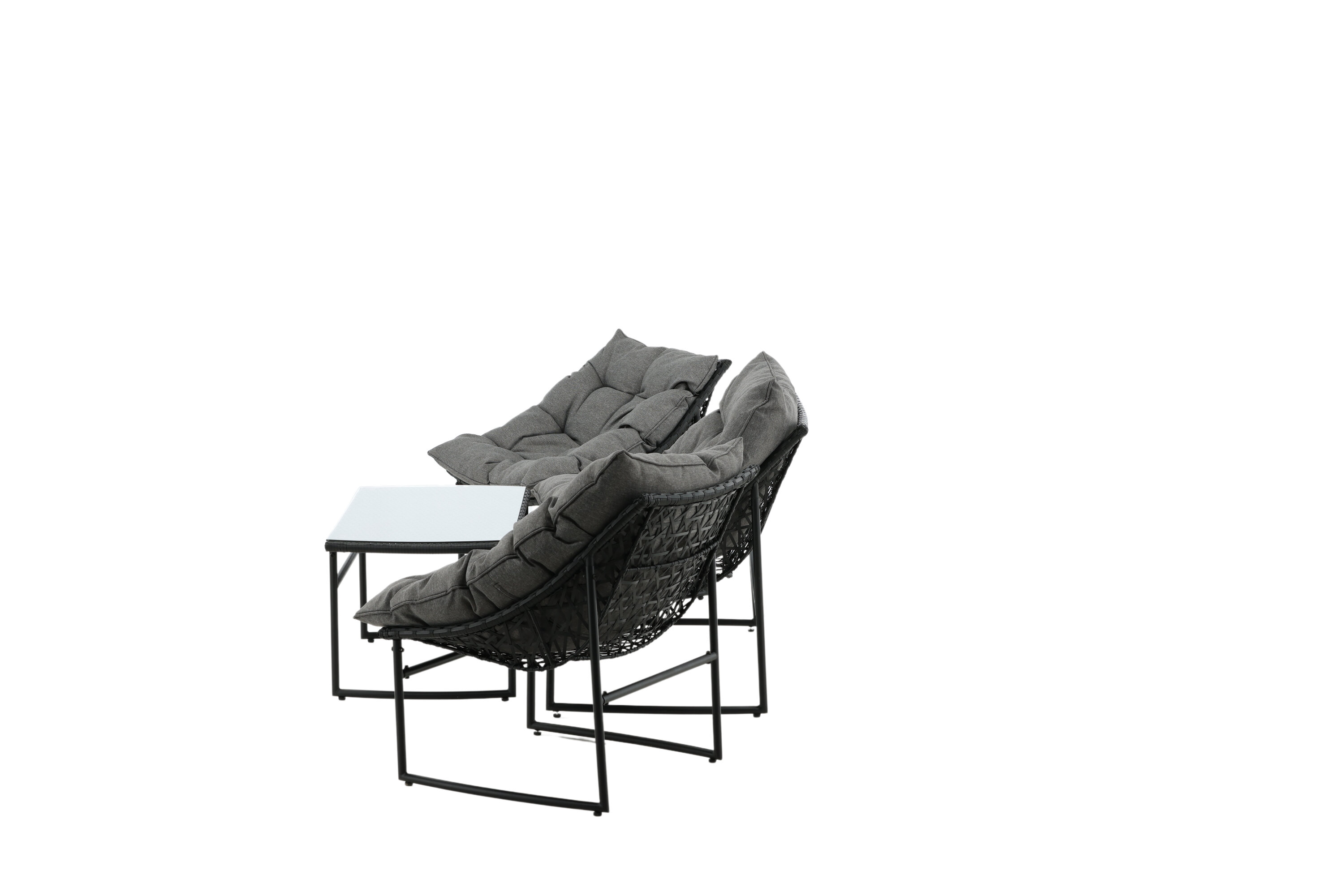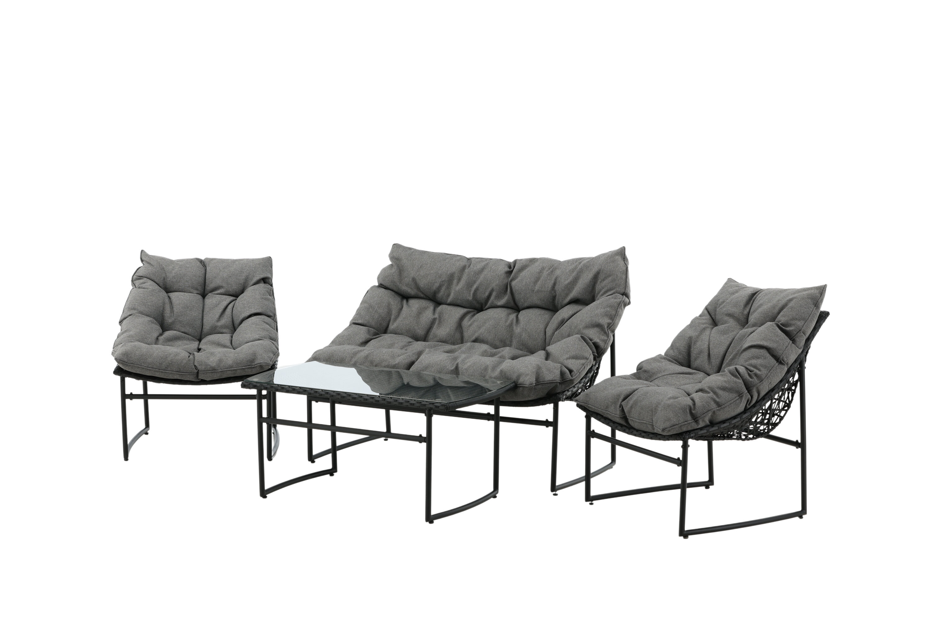 Welcome home to a relaxing and eye -catching sofa group in trendy design! Tina sofa group is a nice and stylish group in black with associated table with a glass top plate. Durable cushions in gray are included and the group holds a total of 4 sitting guests.