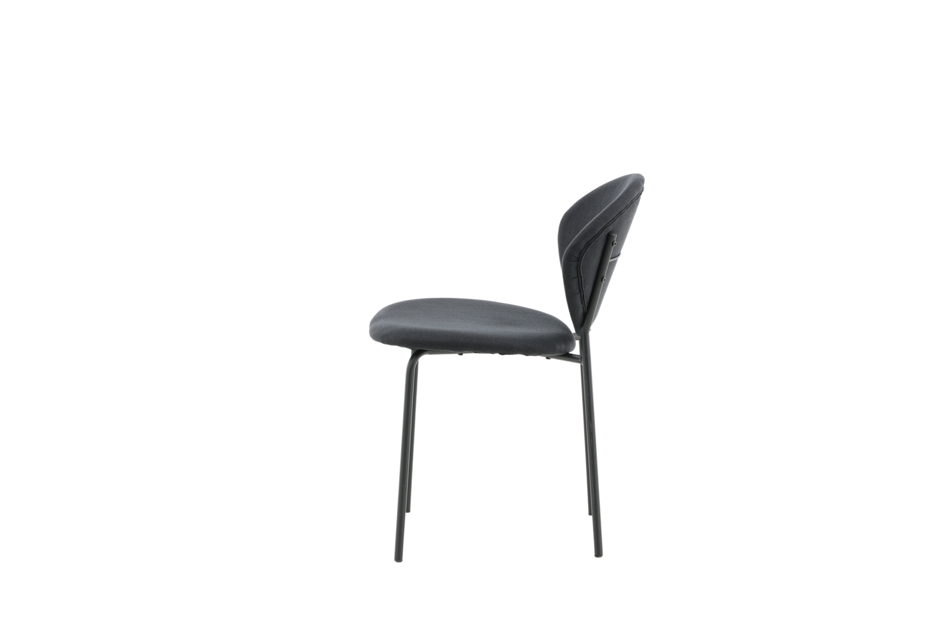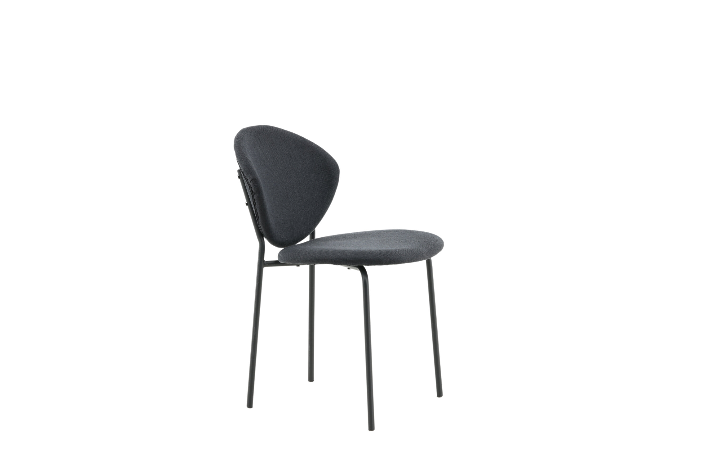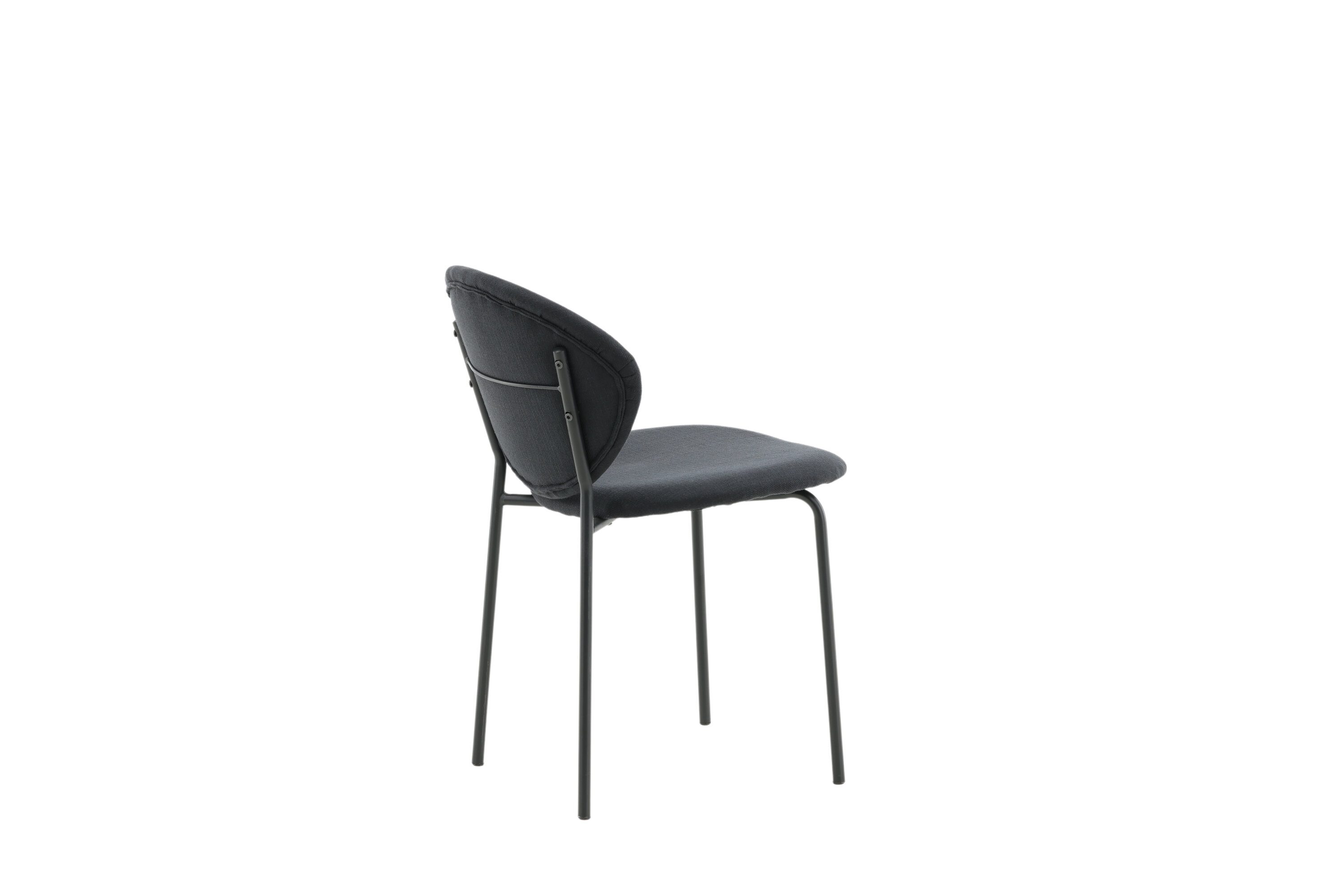 Timeless dining chair in black color and minimalist design from the series Vault! This delicious dining chair has a frame and legs in black powder coated metal and a rounded back. Back and seat are in upholstered black polyester fabric. Decorated with comfortable chairs that are as stylish as practical with their pretty size! Lighter assembly is required. Care advice: Use textile spray to impregnate the textile before you start using it, it will also make any dirt and stains easier to remove in the future. Remove stains right away, do not rub but tried to suck up gently with a cloth. Should the stains not go away, try a stain remover that you first tried on a less visible part of the fabric.