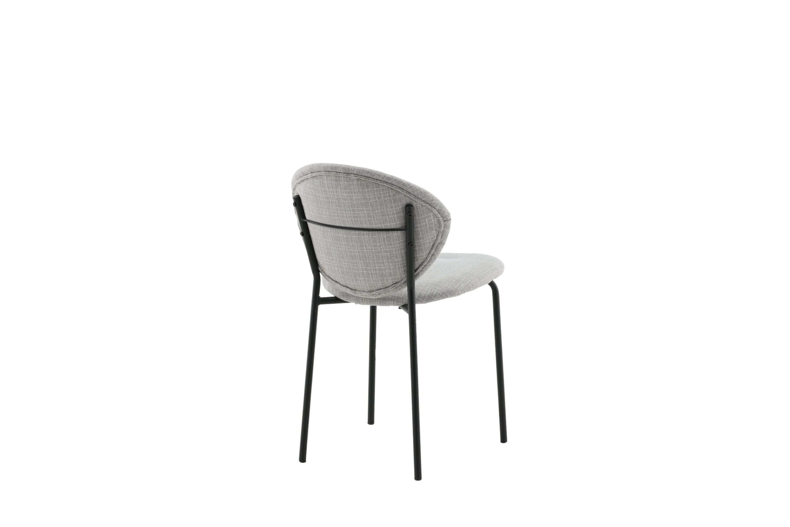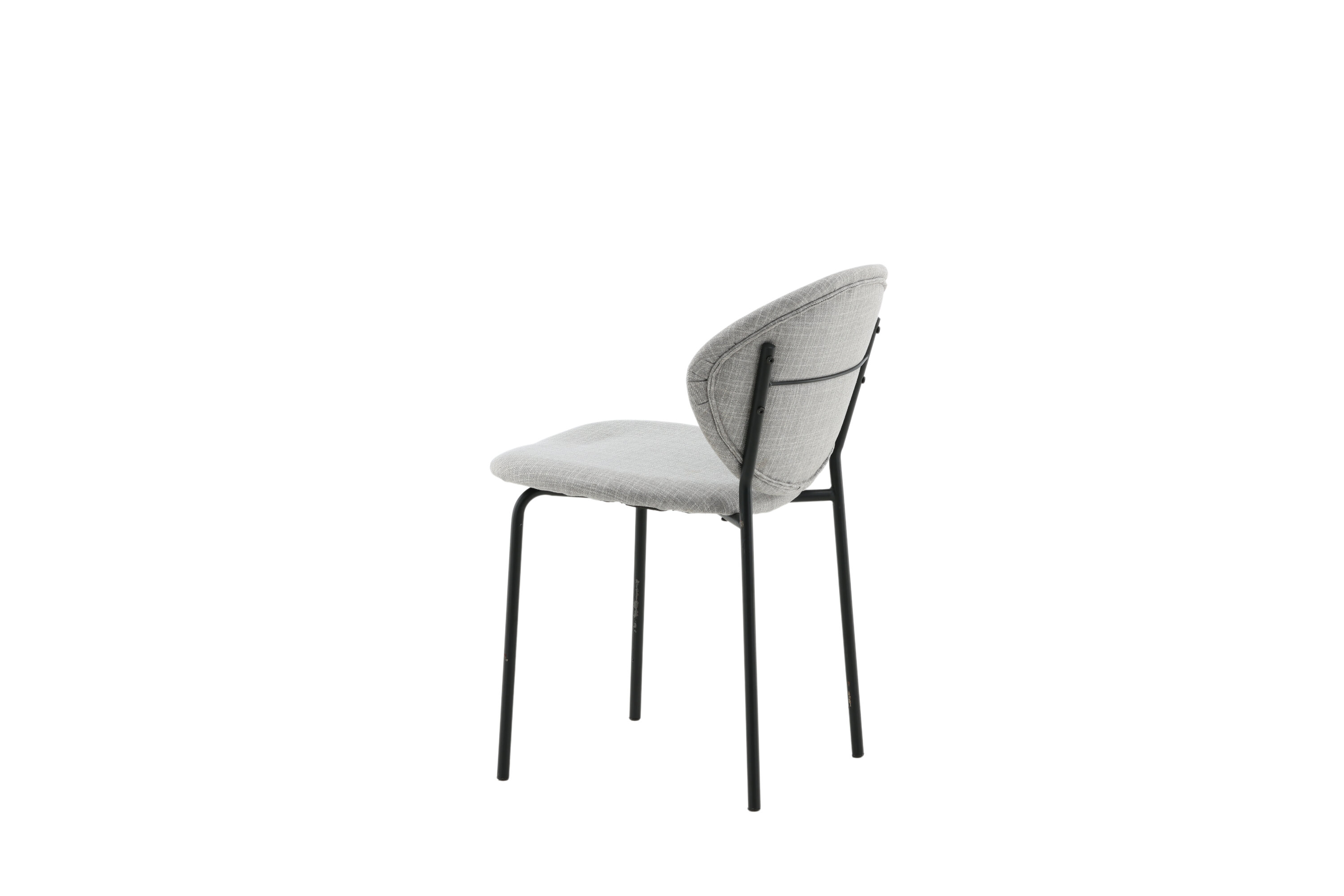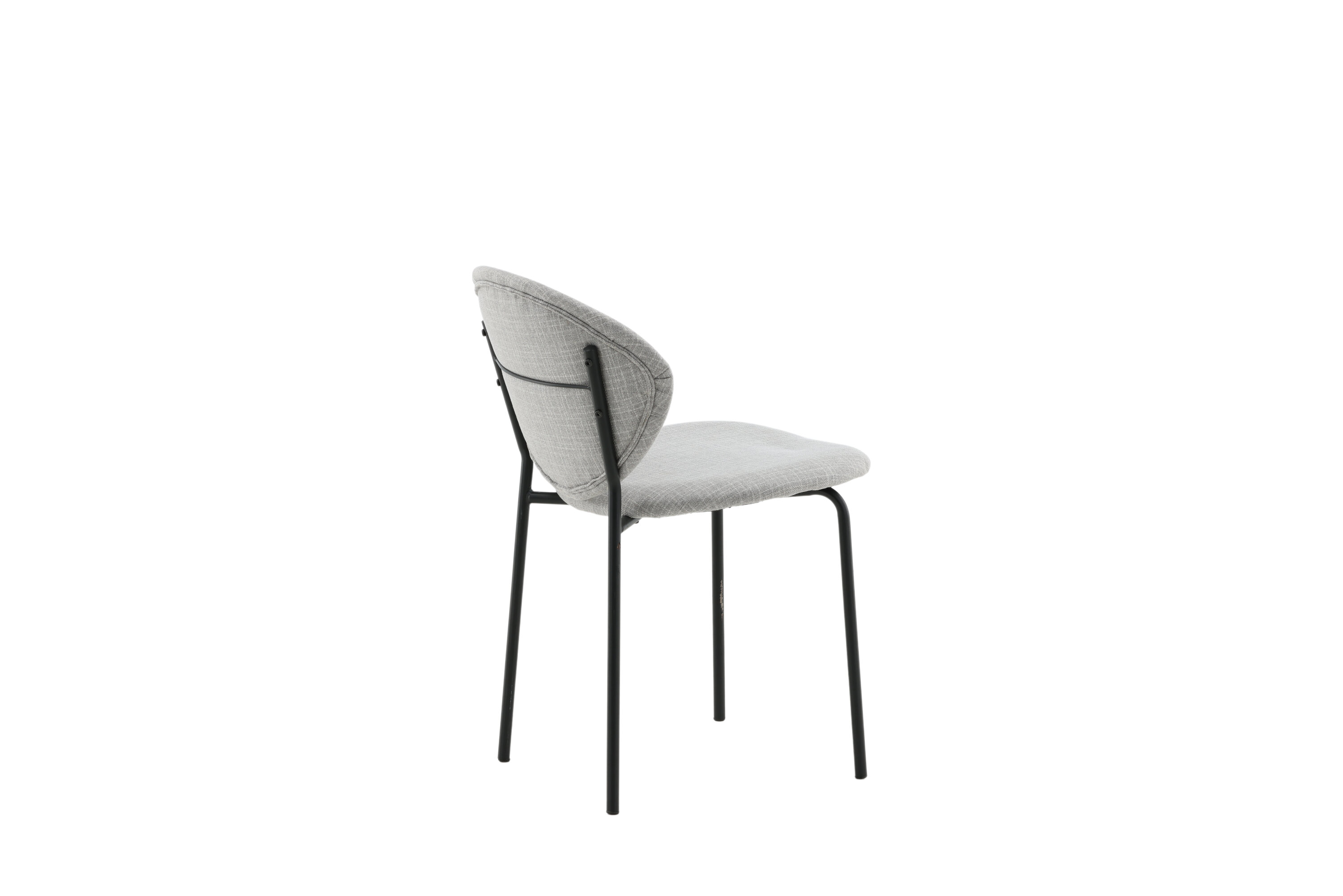 Timeless dining chair yesterday color and minimalist design from the series Vault! This delicious dining chair has a frame and legs in black powder coated metal and a rounded back. Back and seat are in upholstered gray polyester fabric. Decorate your home with comfortable chairs that are as stylish as practical with their pretty size! Lighter assembly is required. Care advice: Use textile spray to impregnate the textile before you start using it, it will also make any dirt and stains easier to remove in the future. Remove stains right away, do not rub but tried to suck up gently with a cloth. Should the stains not go away, try a stain remover that you first tried on a less visible part of the fabric.