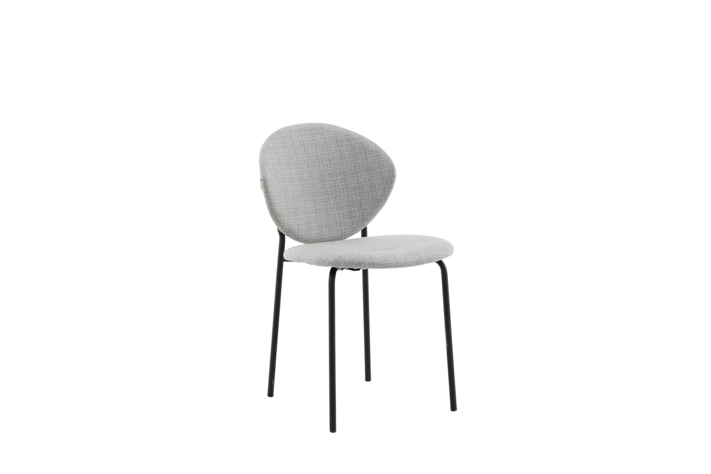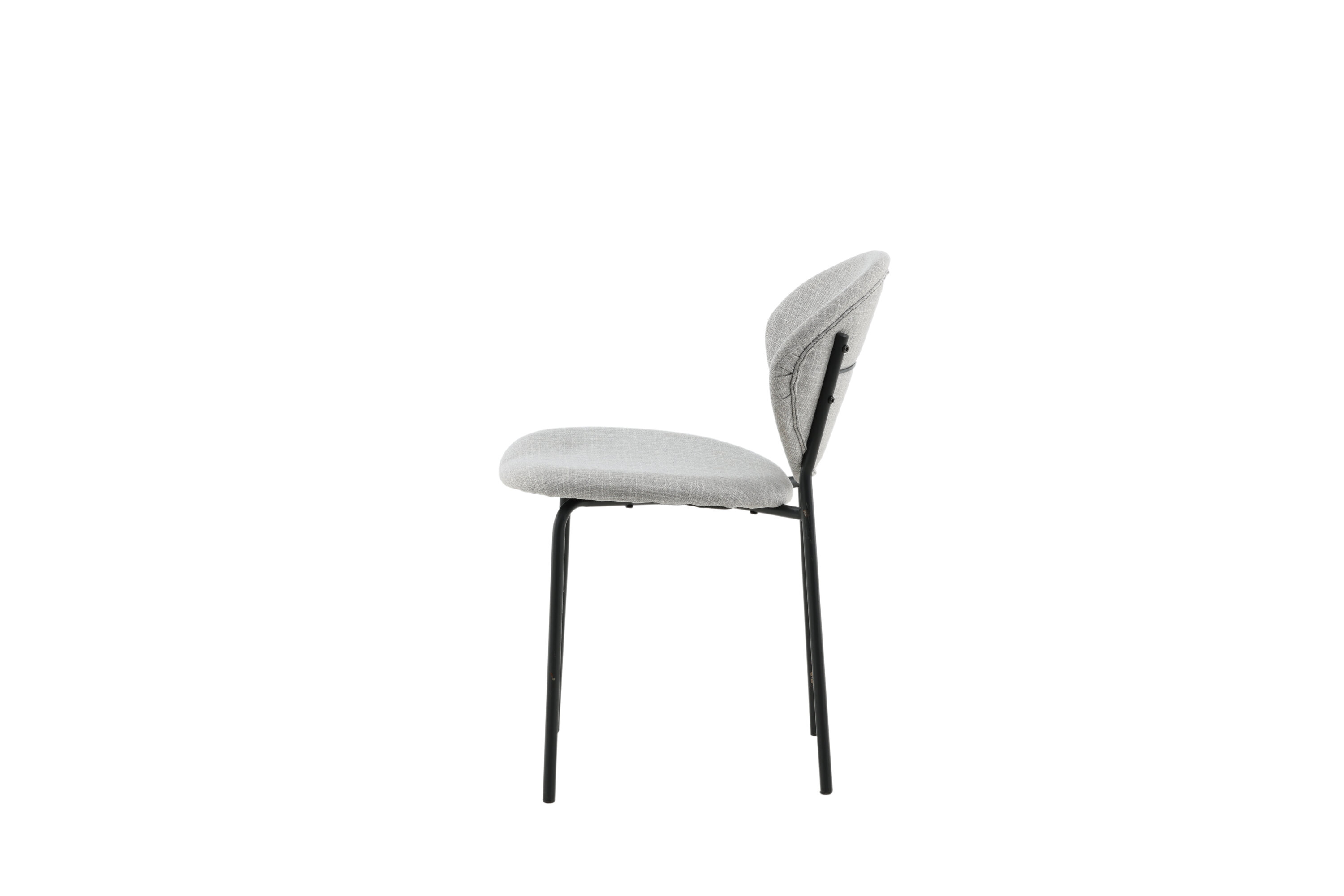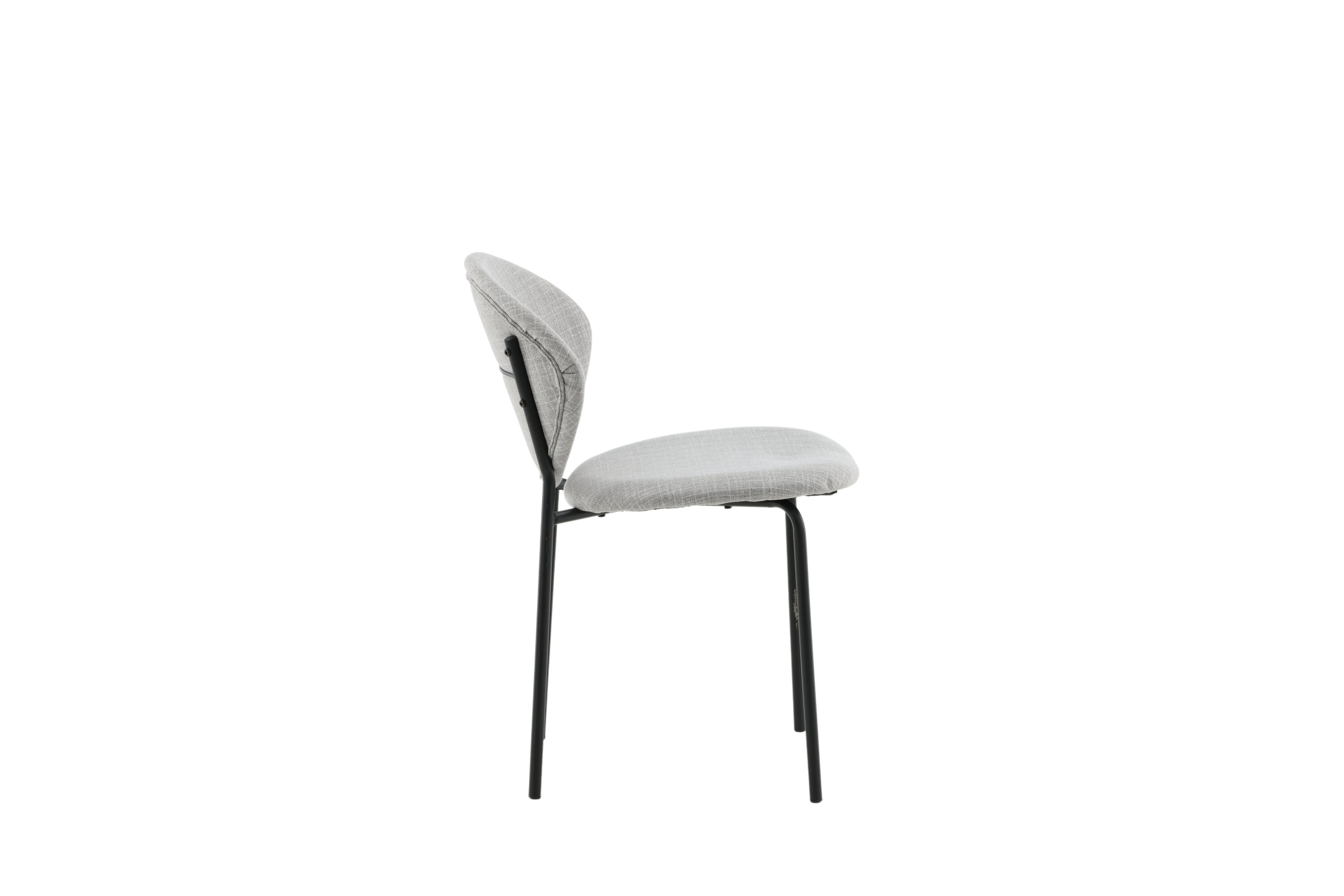Timeless dining chair yesterday color and minimalist design from the series Vault! This delicious dining chair has a frame and legs in black powder coated metal and a rounded back. Back and seat are in upholstered gray polyester fabric. Decorate your home with comfortable chairs that are as stylish as practical with their pretty size! Lighter assembly is required. Care advice: Use textile spray to impregnate the textile before you start using it, it will also make any dirt and stains easier to remove in the future. Remove stains right away, do not rub but tried to suck up gently with a cloth. Should the stains not go away, try a stain remover that you first tried on a less visible part of the fabric.