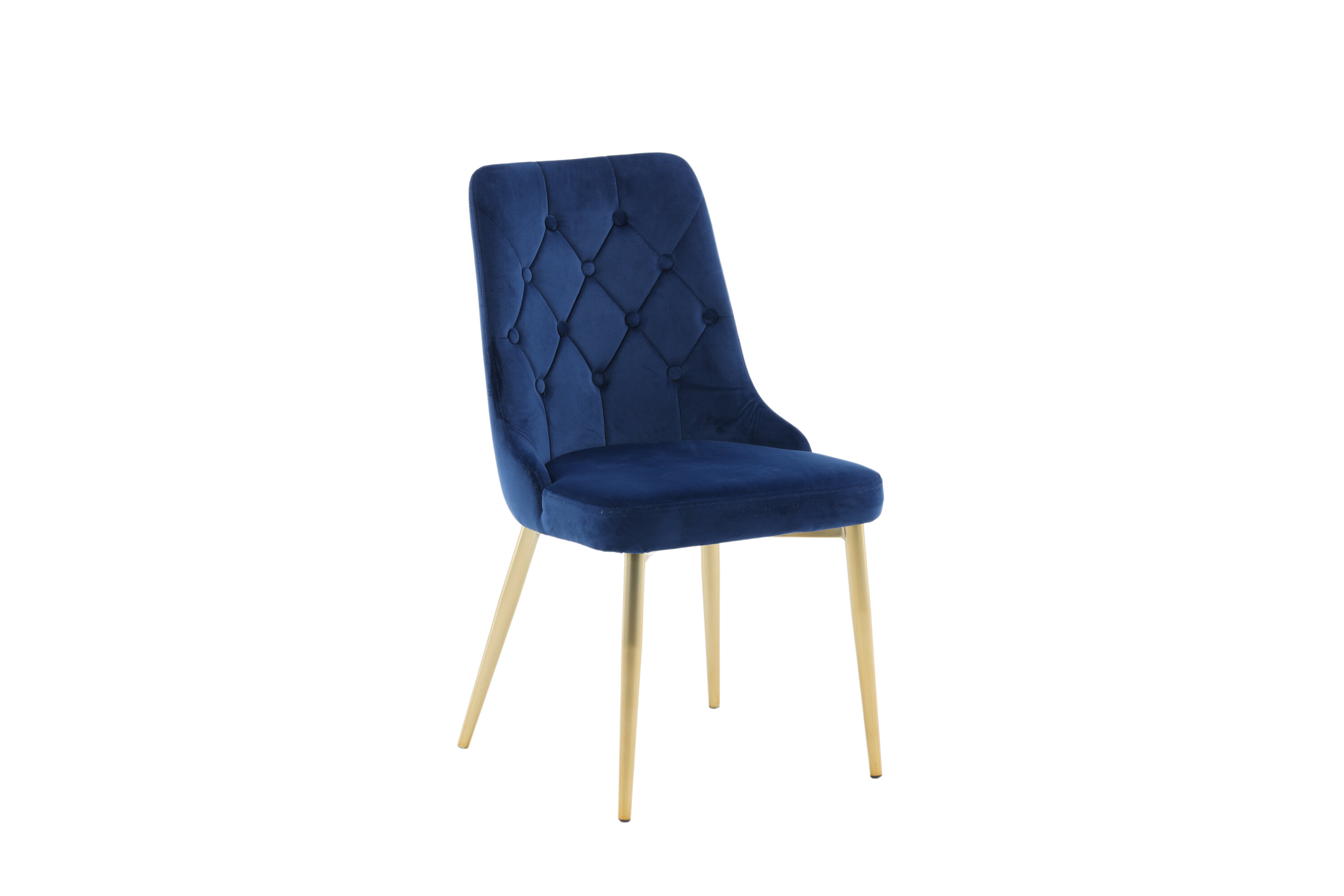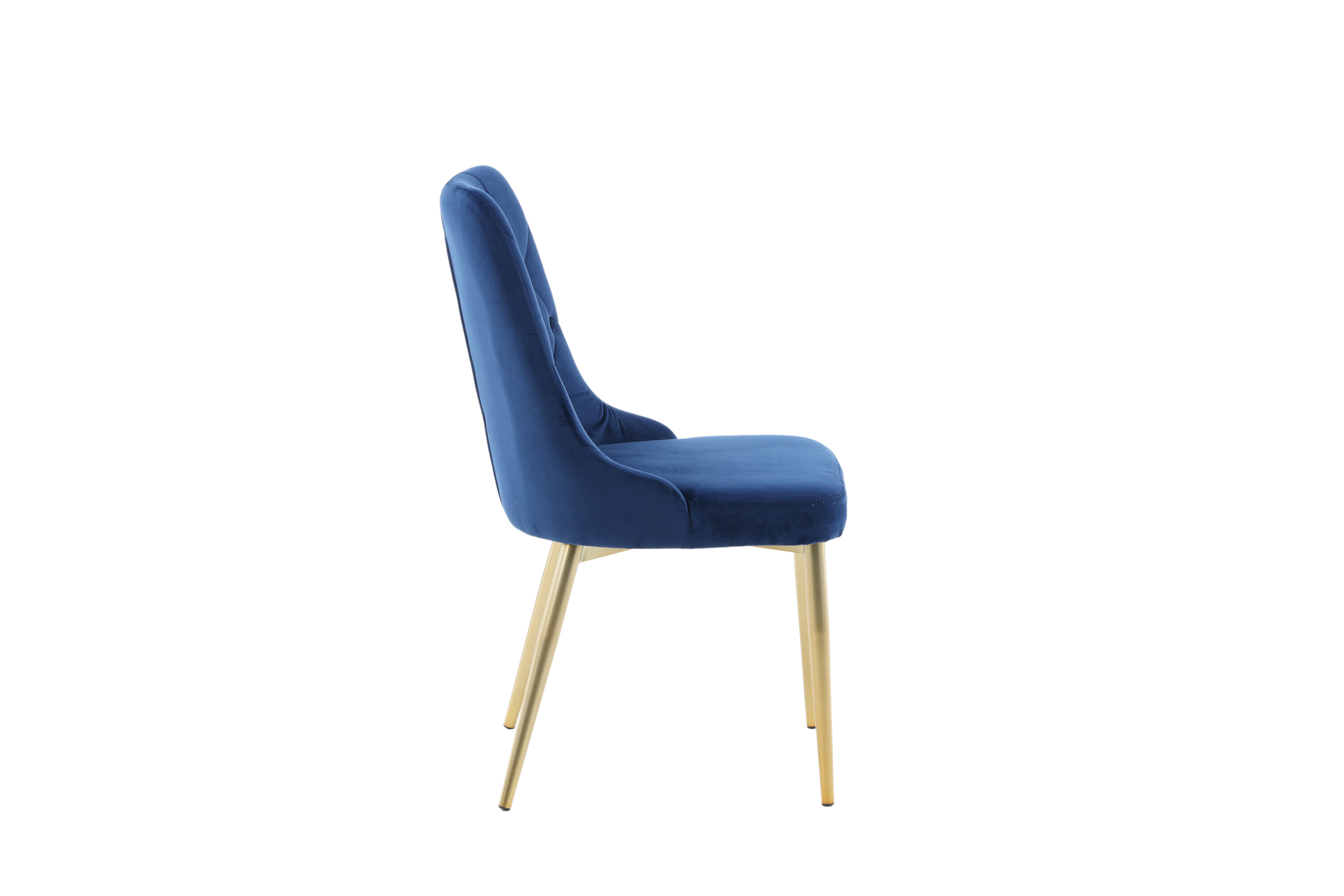 Furnish the heart of your home with dining chairs from the Velvet Luxury series for a more elegant focal point in the living room! The chair features a fully upholstered design in sleek blue velvet fabric with buttons and decorative stitching in the back, which adds a stylish detail. Legs in brass-coated metal and soft padding in the back and seat for extra comfort. Sit comfortably and stylishly! Some assembly required. Care instructions: Velvet tends to develop pressure marks when the pile flattens. The marks may make the fabric look worn, which is normal for this type of material. Depending on how the light falls, the fabric may appear in several different shades.