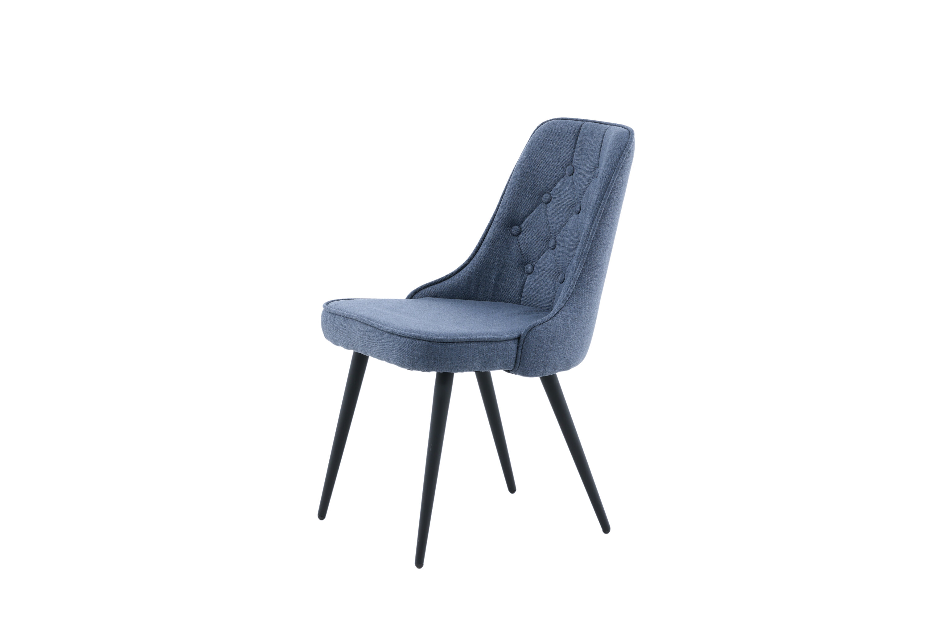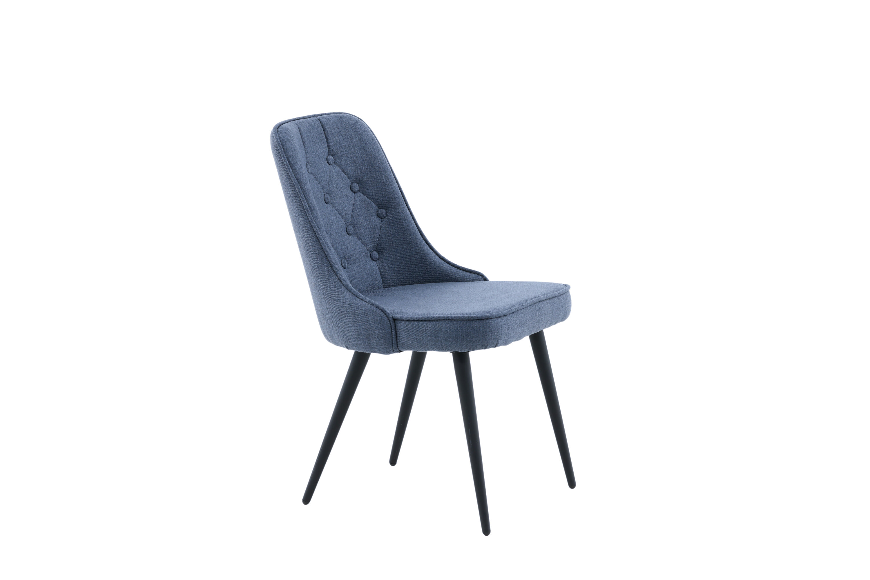 Lift your decor to the next level in a pleasant blue shade with dining chairs from the Velvet Luxury series. The stylish design makes the chairs easy to match with a cozy dining table. Back and seat in upholstered blue polyester fabric with buttons and decorative stitch and legs in black powder coated metal. Lighter assembly is required. Enjoy pleasant meals ahead! Care advice: Use textile spray to impregnate the textile before you start using it, it will also make any dirt and stains easier to remove in the future. Remove stains right away, do not rub but tried to suck up gently with a cloth.