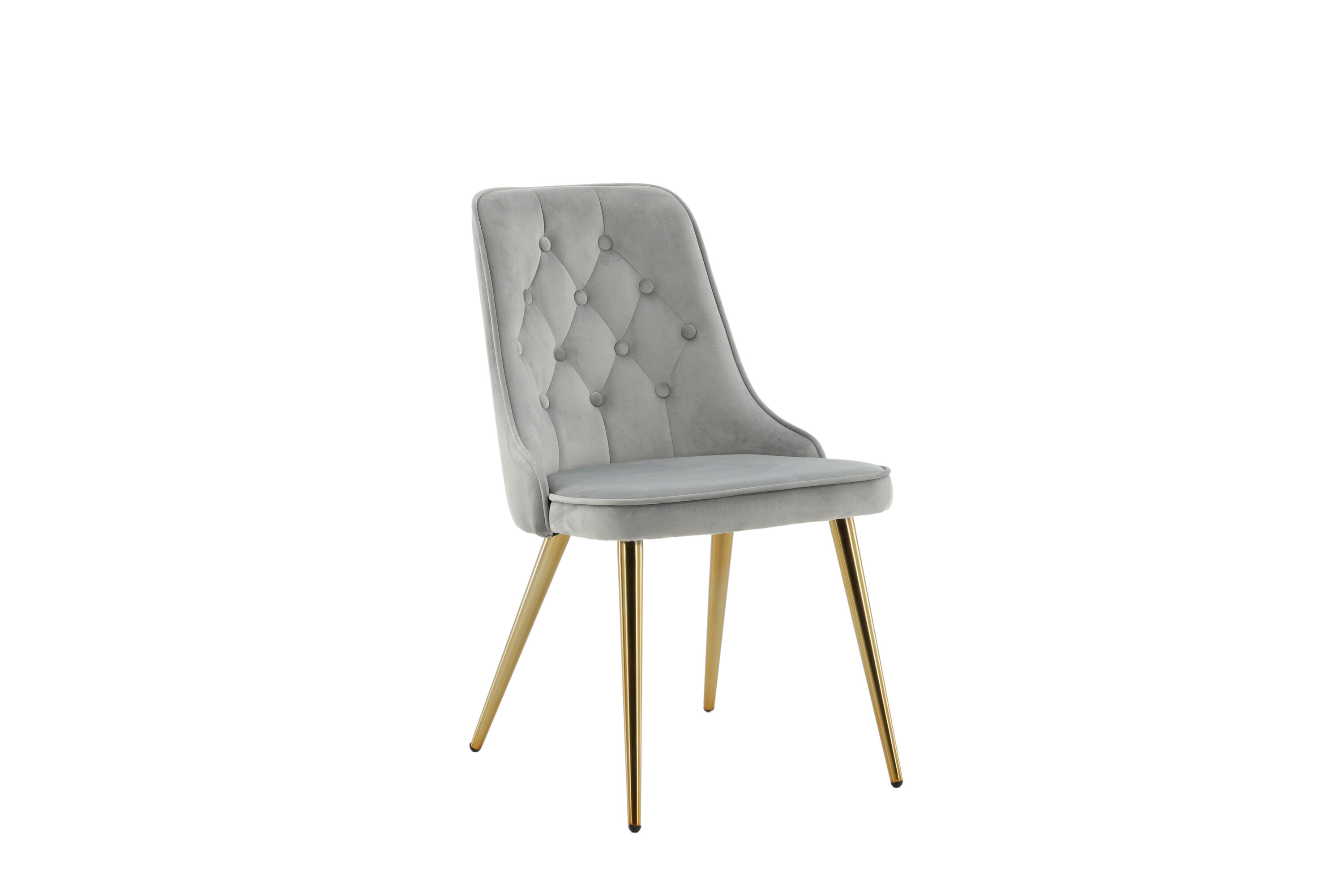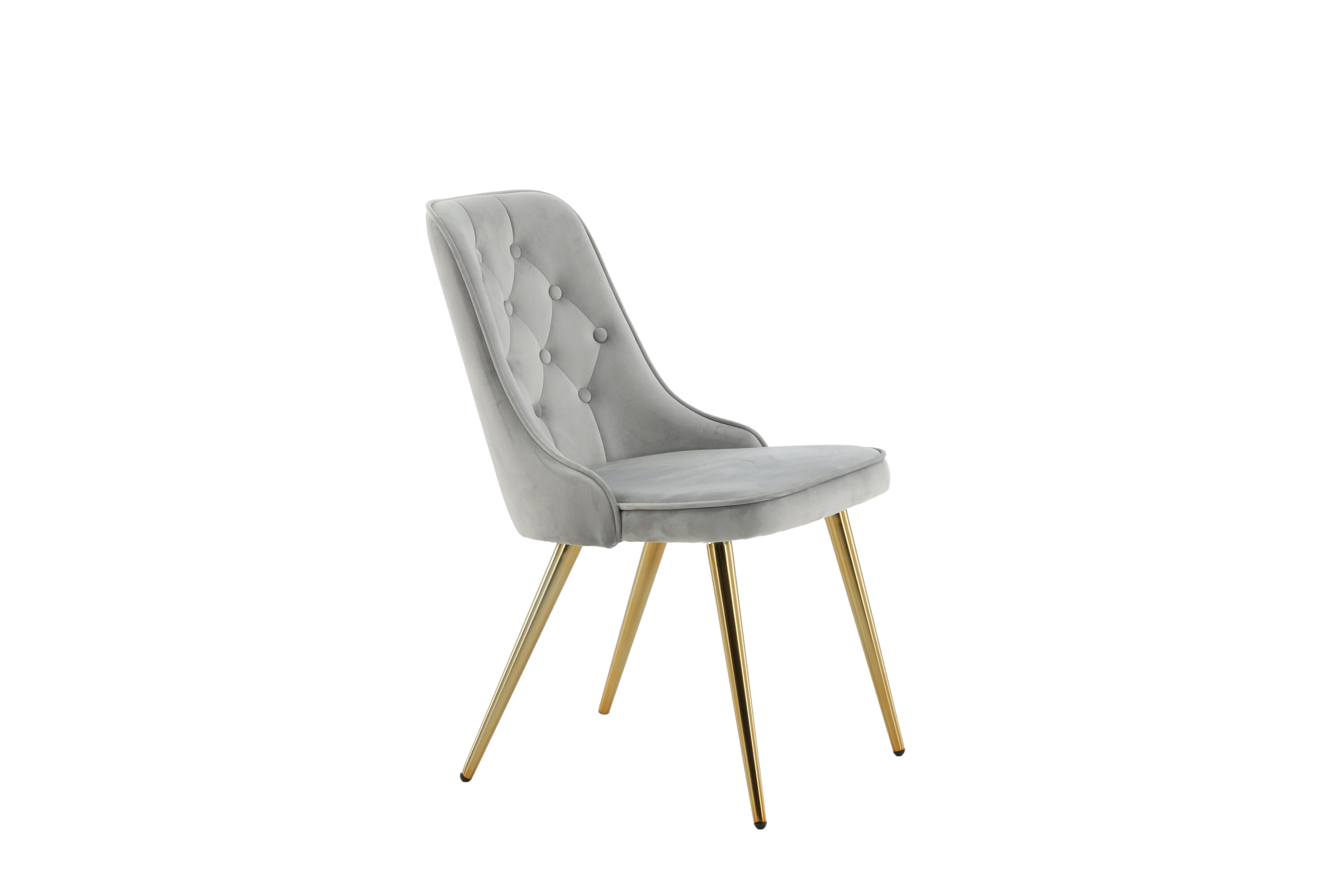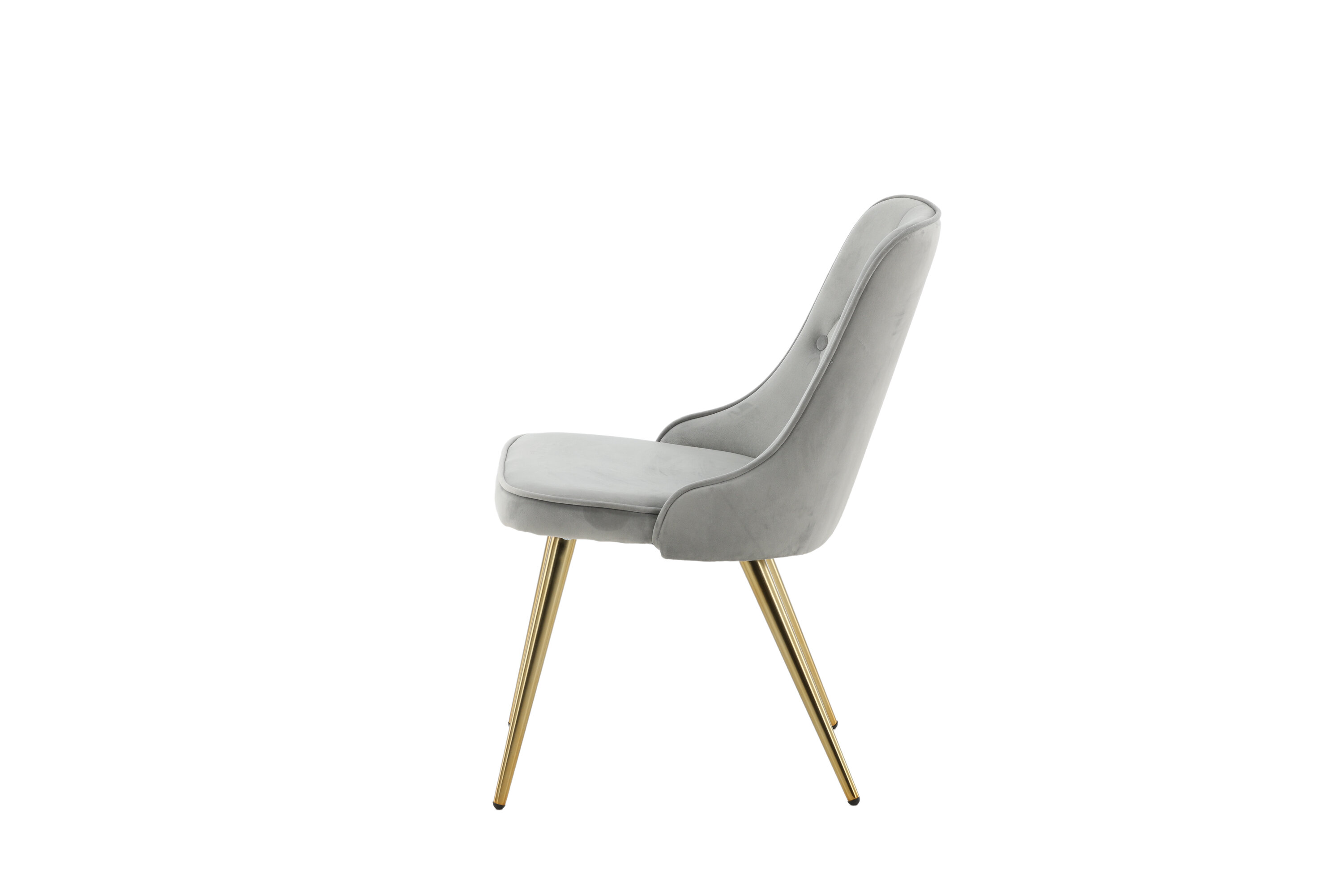 Furnish the heart of your home with dining chairs from the Velvet Luxe series for a more elegant focal point in the living room! The chair features a fully upholstered design in sleek gray velvet fabric with buttons and decorative stitching in the back, adding a stylish detail. Legs in brass-finished metal and soft padding in the back and seat for extra comfort. Some assembly required. Create a modern focal point