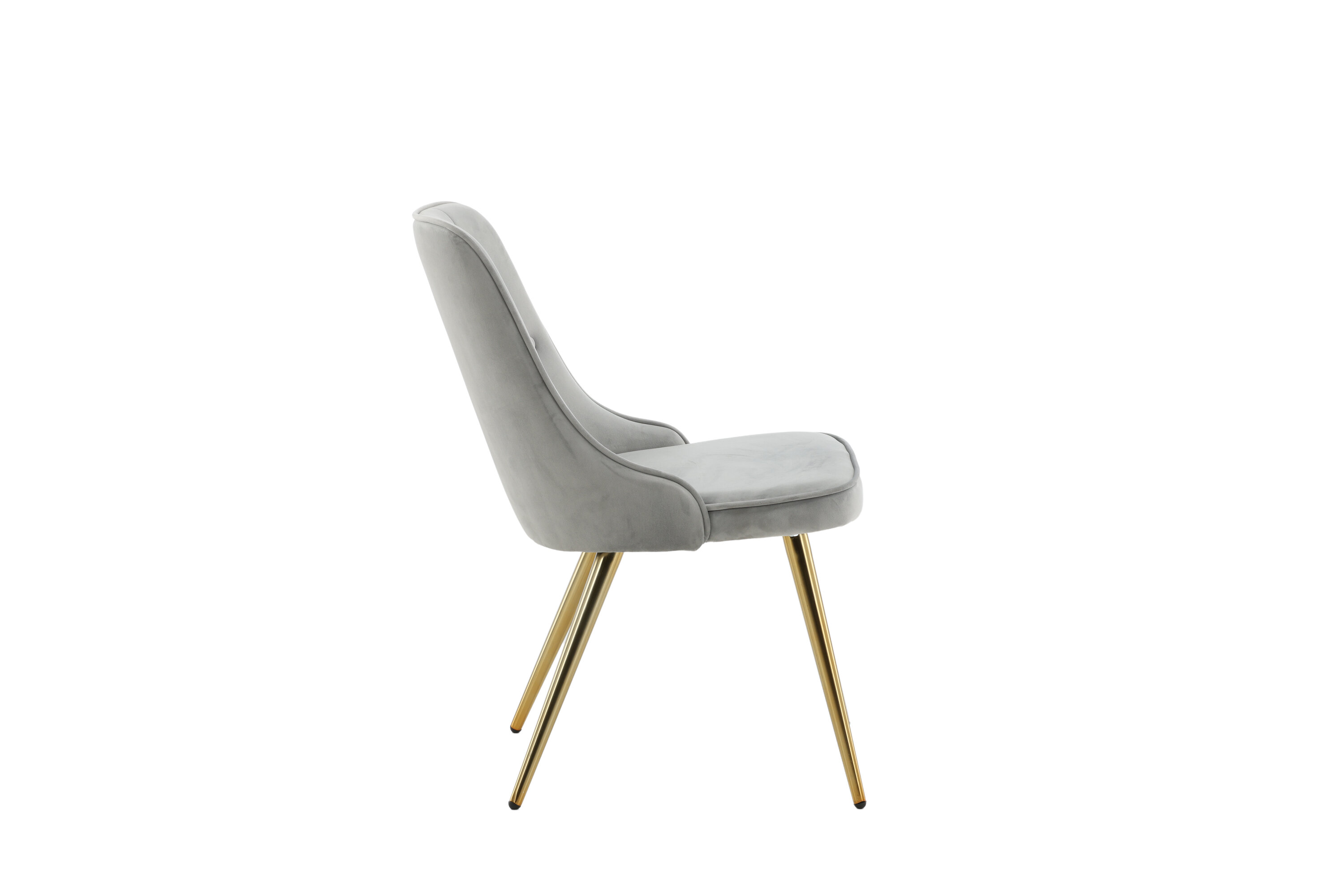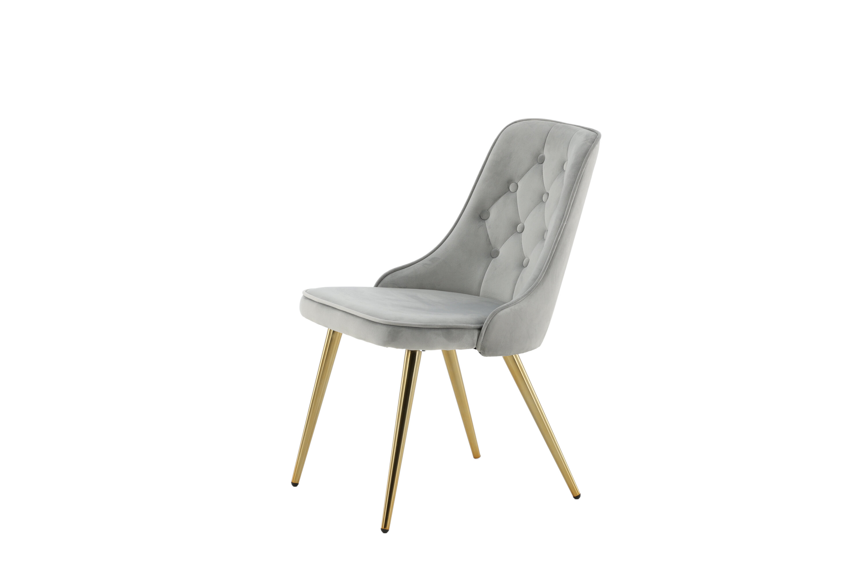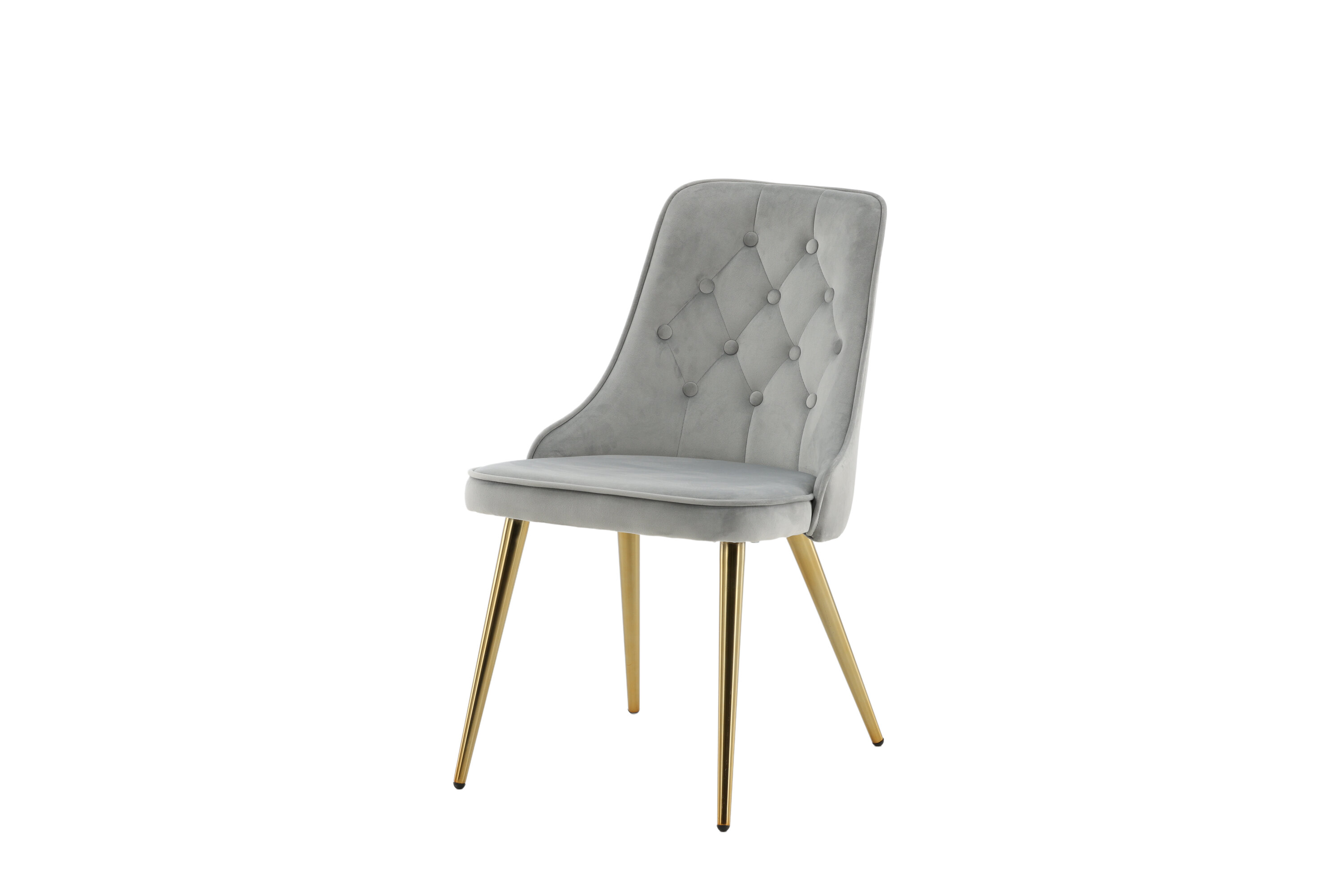 Furnish the heart of your home with dining chairs from the Velvet Luxe series for a more elegant focal point in the living room! The chair features a fully upholstered design in sleek gray velvet fabric with buttons and decorative stitching in the back, adding a stylish detail. Legs in brass-finished metal and soft padding in the back and seat for extra comfort. Some assembly required. Create a modern focal point