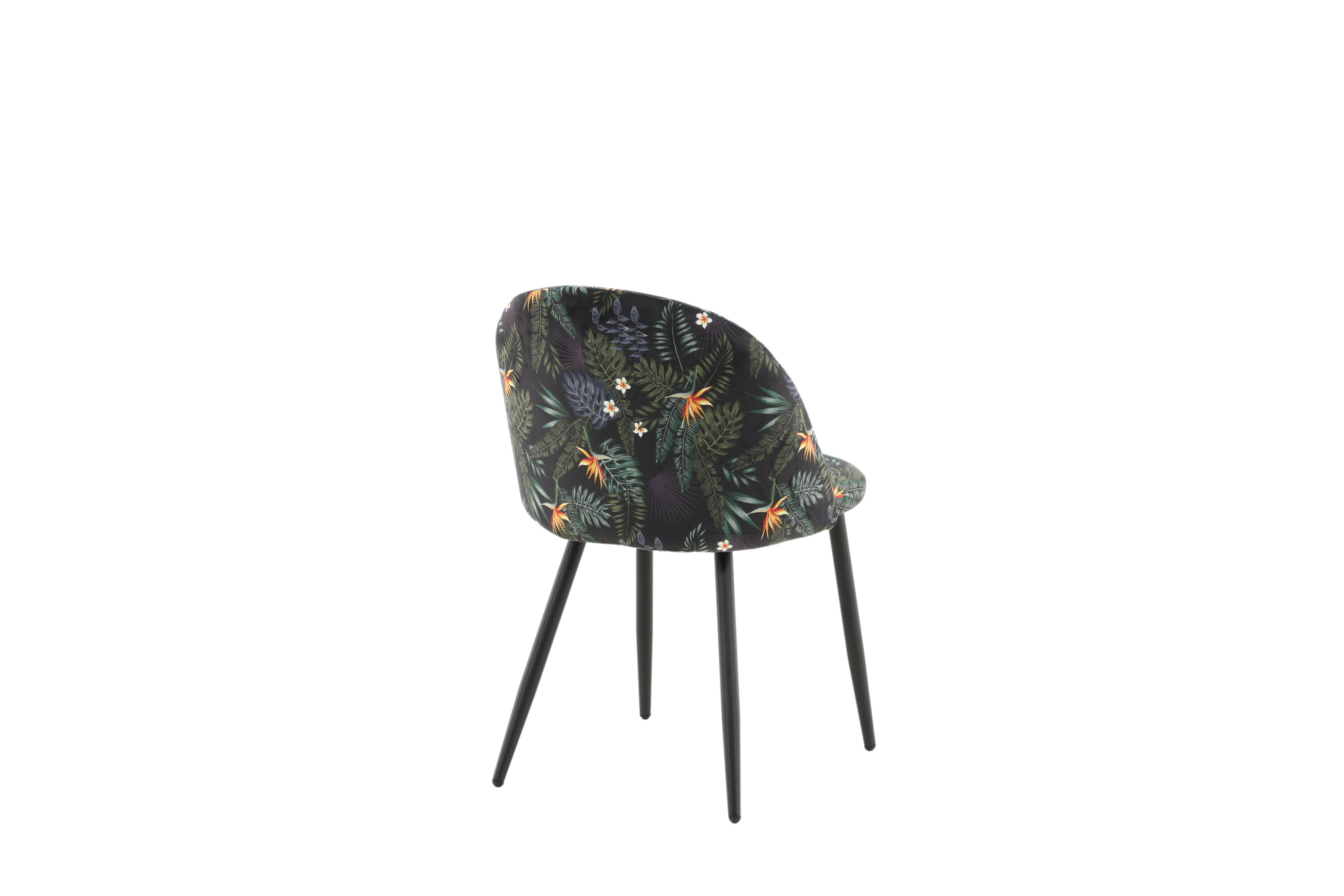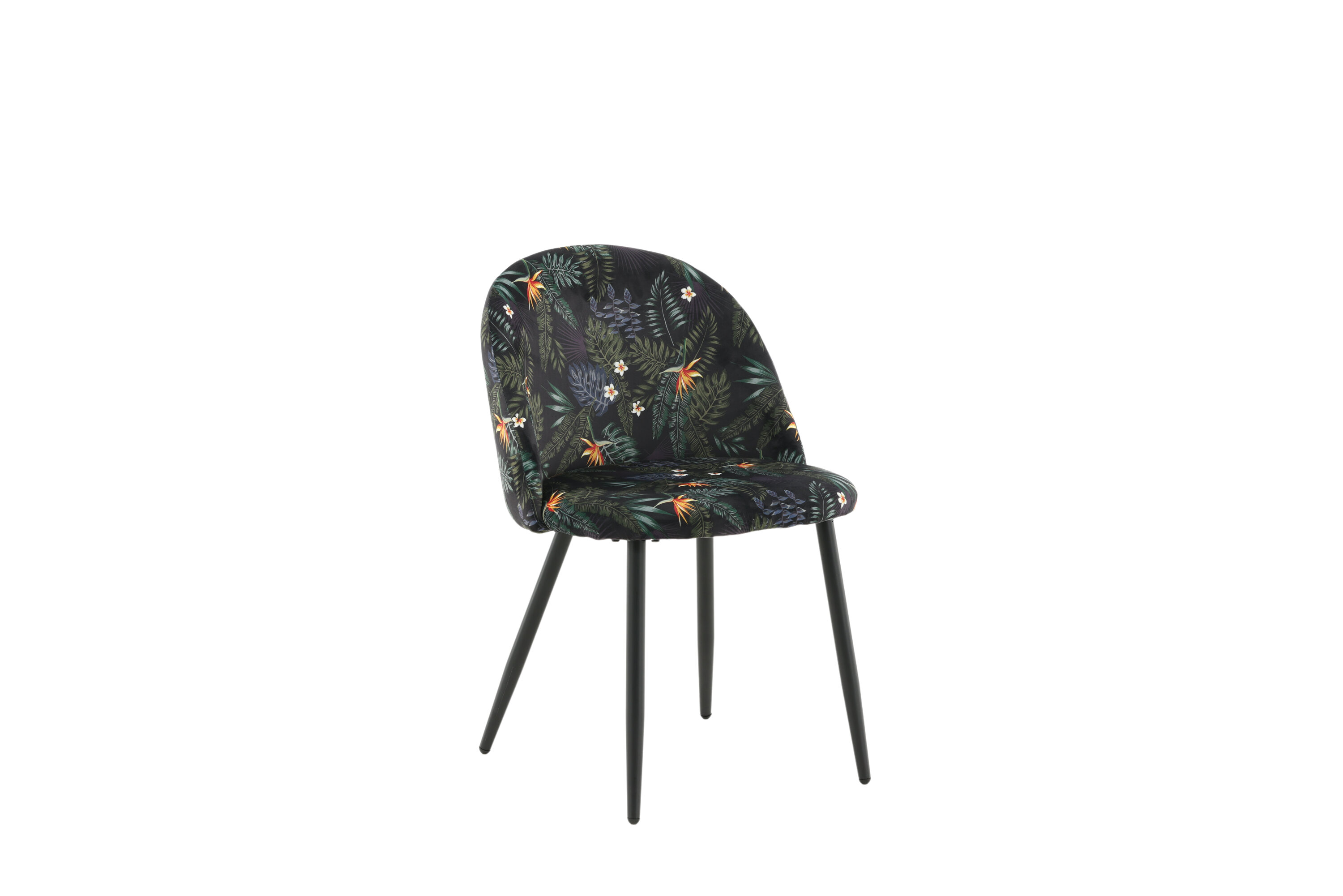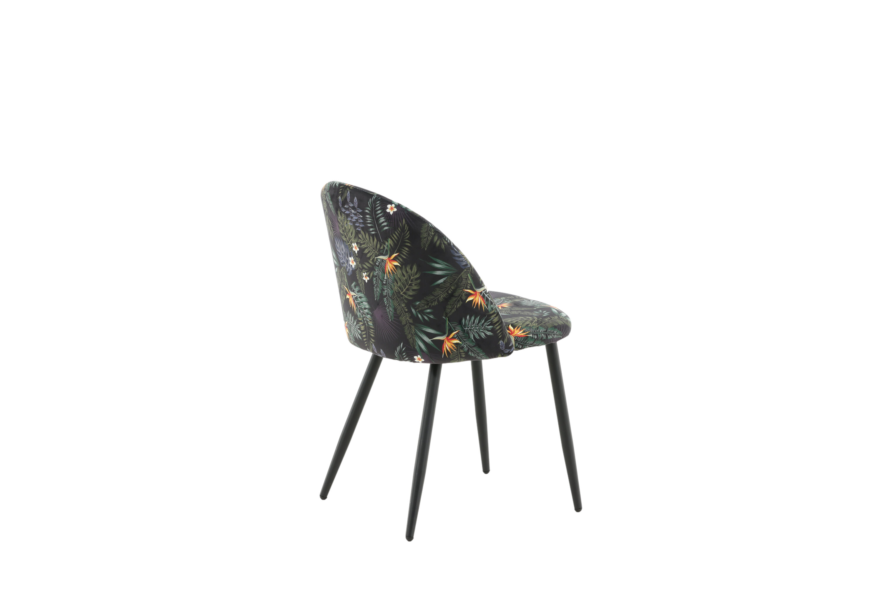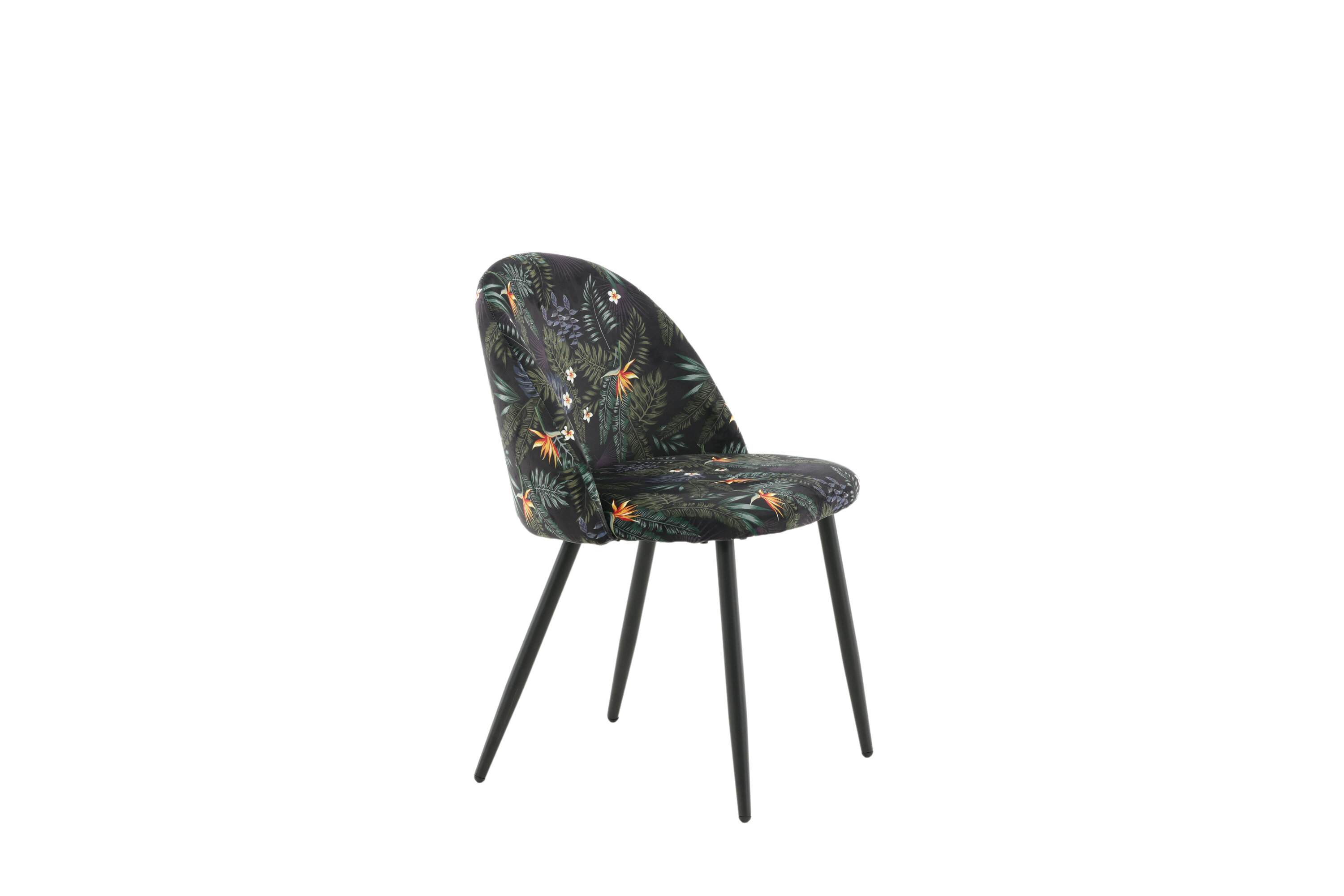 Create an eye -catcher that stands out with multicolored dining chairs from the Velvet series! This dining chair has a frame and legs in black powder coated metal and a stylish design with a round back. Back and seat in upholstered black floral patterned polyester fabric that creates a personal impression in the interior. Lighter assembly is required. Care advice: Remove stains right away, do not rub but tried to suck up gently with a cloth. Should the stains not go away, try a stain remover that you first tried on a less visible part of the fabric. We recommend that larger furniture be foamed at least three times a year.