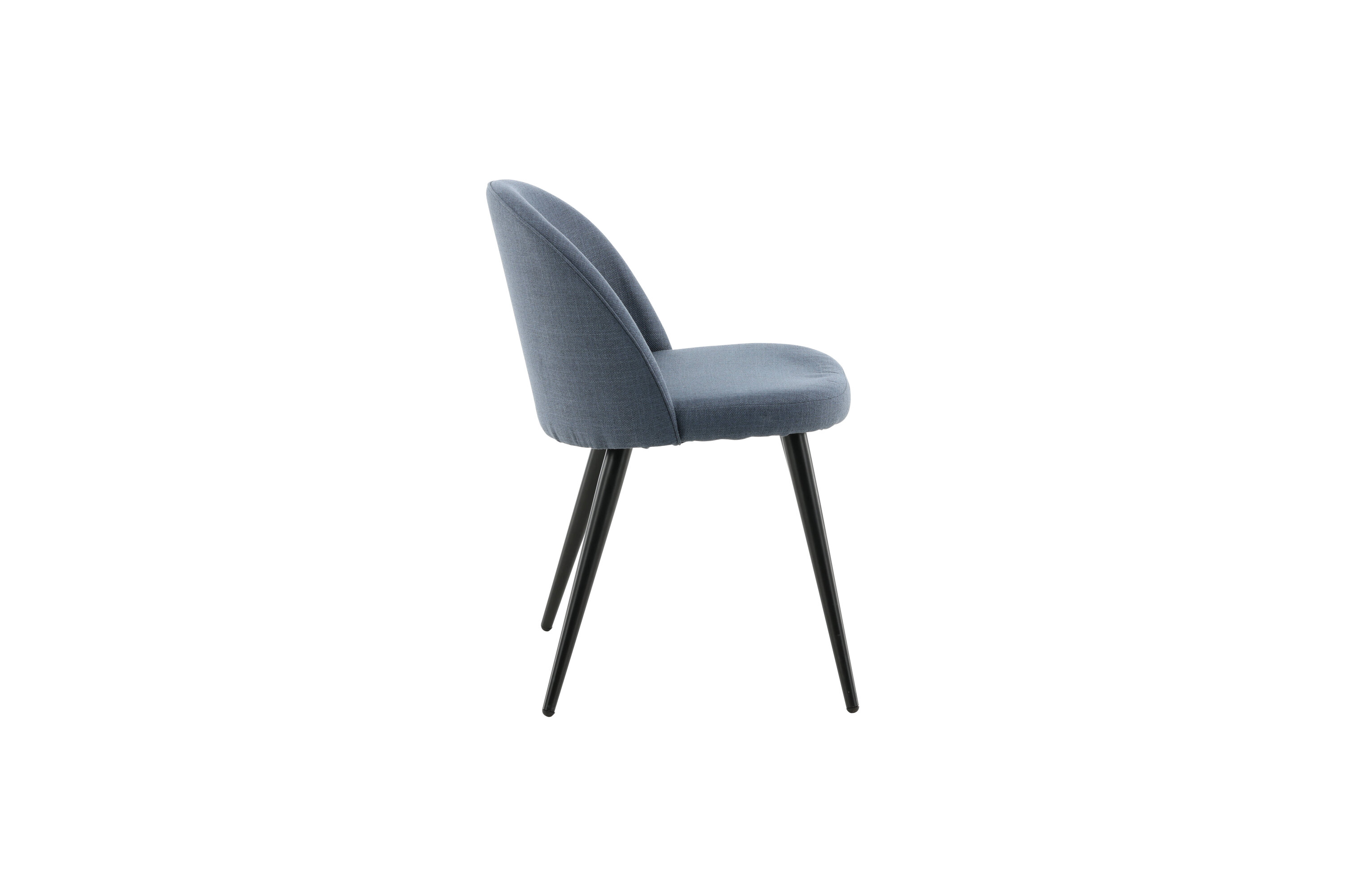 Furnish the heart of your home in a pleasant blue shade with dining chairs from the Velvet series. The stylish design makes the chairs easy to match with a cozy dining table. Back and seat upholstered in padded blue polyester fabric and legs in black powder-coated metal. Some assembly required. Enjoy pleasant meals ahead! Care instructions: Use fabric spray to impregnate the fabric before use, which will also make any dirt and stains easier to remove in the future. Remove stains immediately, do not rub, but try to gently absorb them with a cloth.