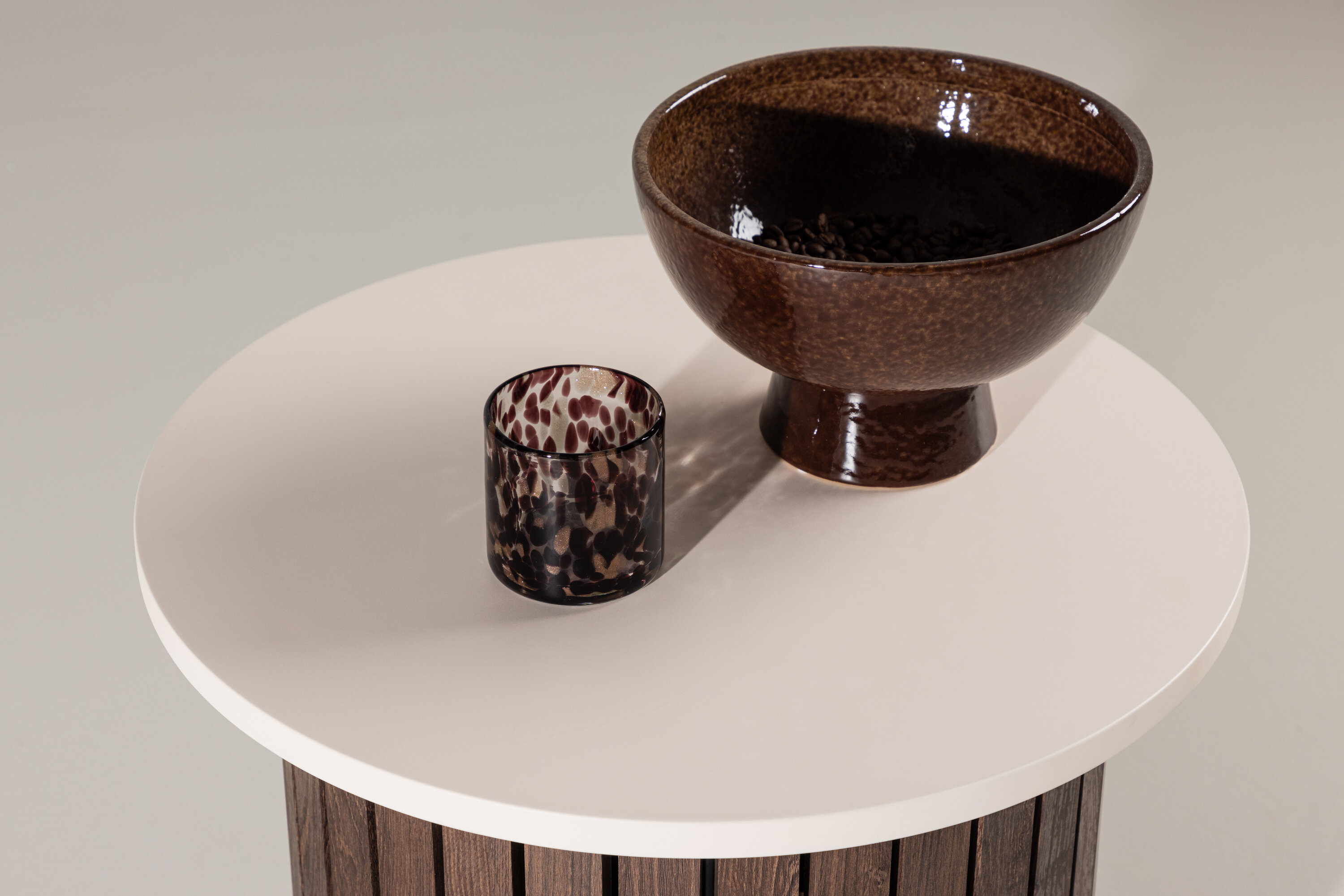 The product is FSC®-certified (FSC®C177288), which means that it is made of wood from responsible forestry, a forestry that takes into account people and the environment. Create a warm and inviting atmosphere in your home with the Visingsö side table. With its round shape and generous dimensions of 52 cm in diameter and 44 cm in height, the Visingsö side table is a versatile piece of furniture that fits perfectly next to your sofa or favorite armchair. The beige MDF tabletop gives an earthy feel, while the dark brown steel frame provides a modern contrast. The Visingsö side table is more than just a practical piece of furniture – it is an interior detail that enhances the room's atmosphere and creates a cozy feeling. Whether used to place a book, a cup of tea, or as a place for your favorite decorations, Visingsö will add a warm and welcoming touch to your home.